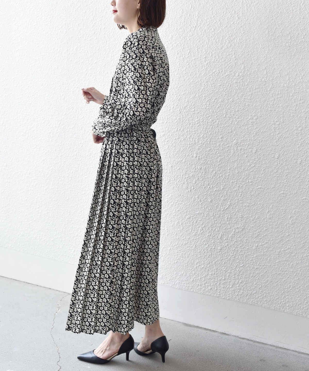 34. 【WEB限定】〈手洗い可能〉ドット / 花柄 バンドカラー サイド プリーツ ワンピース