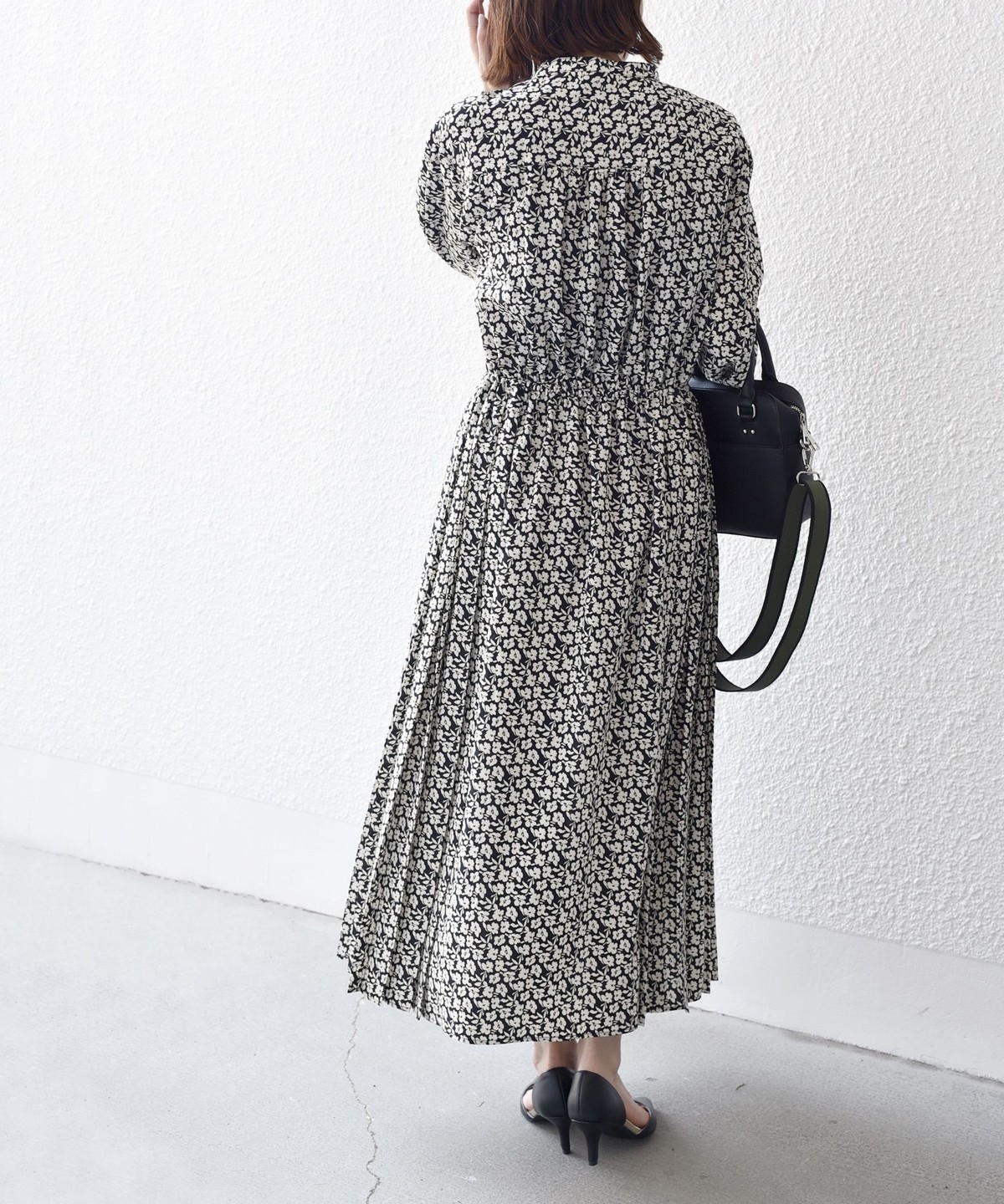 11. 【WEB限定】〈手洗い可能〉ドット / 花柄 バンドカラー サイド プリーツ ワンピース