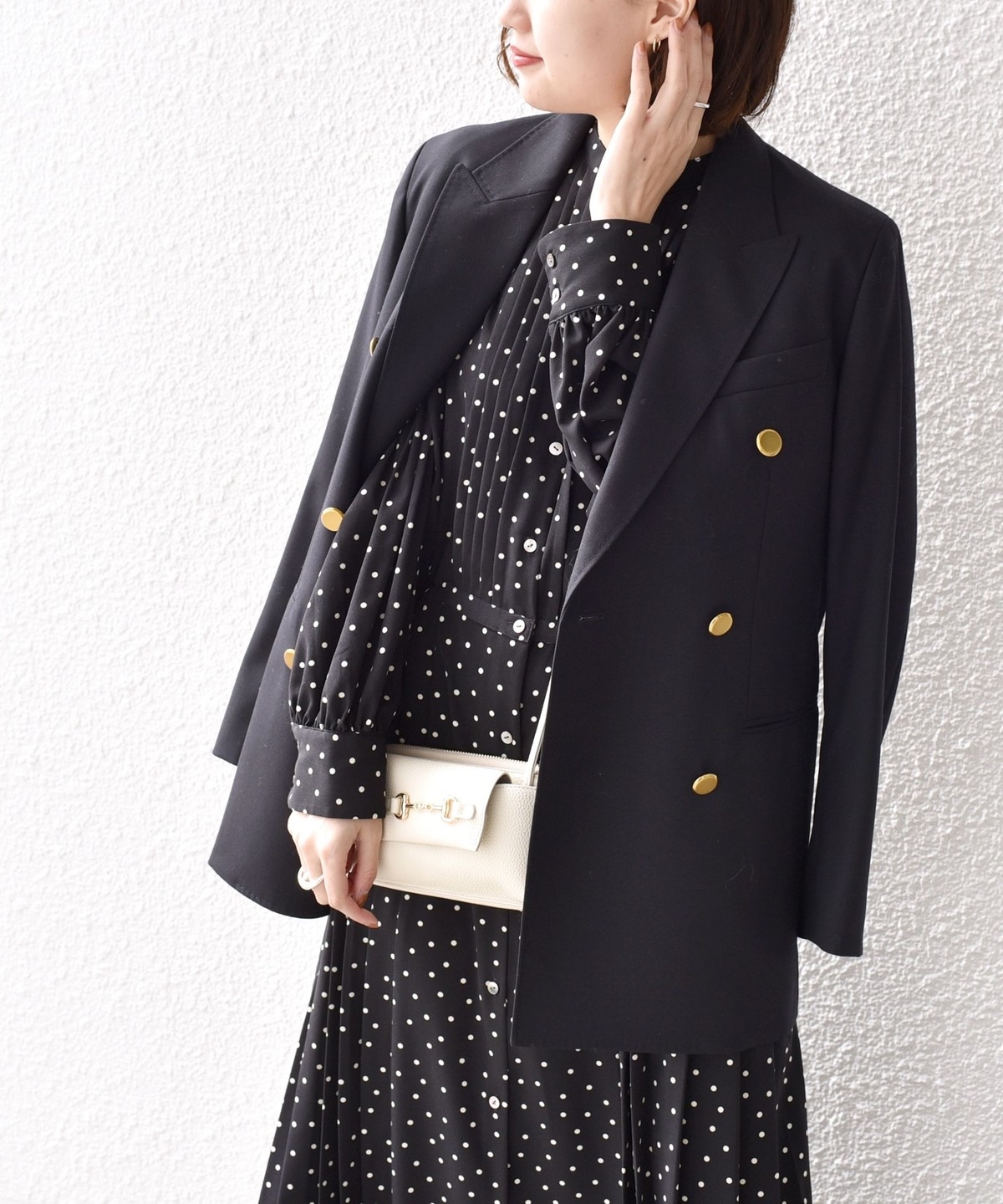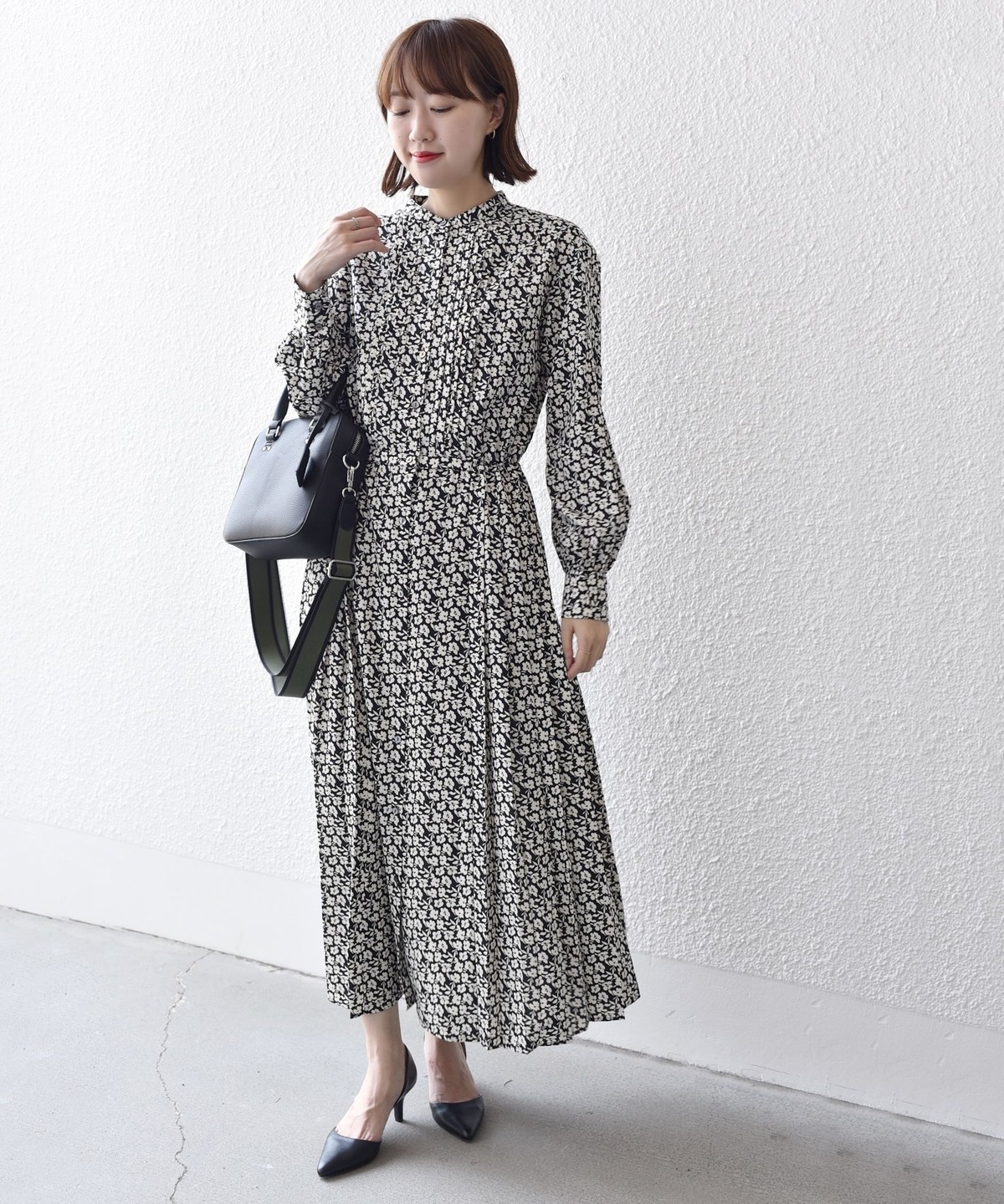 43. 【WEB限定】〈手洗い可能〉ドット / 花柄 バンドカラー サイド プリーツ ワンピース