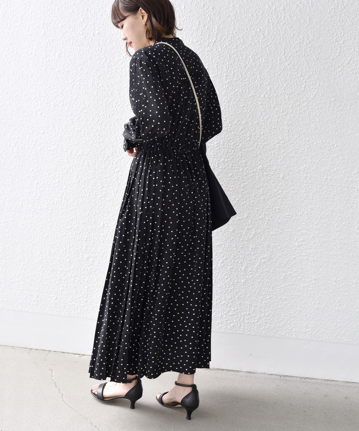29. 【WEB限定】〈手洗い可能〉ドット / 花柄 バンドカラー サイド プリーツ ワンピース