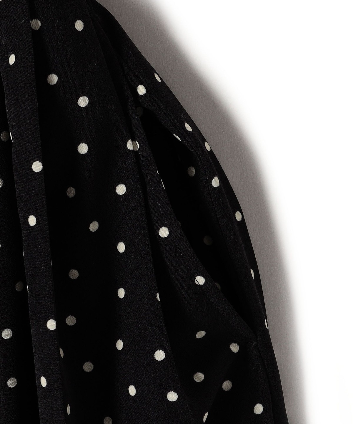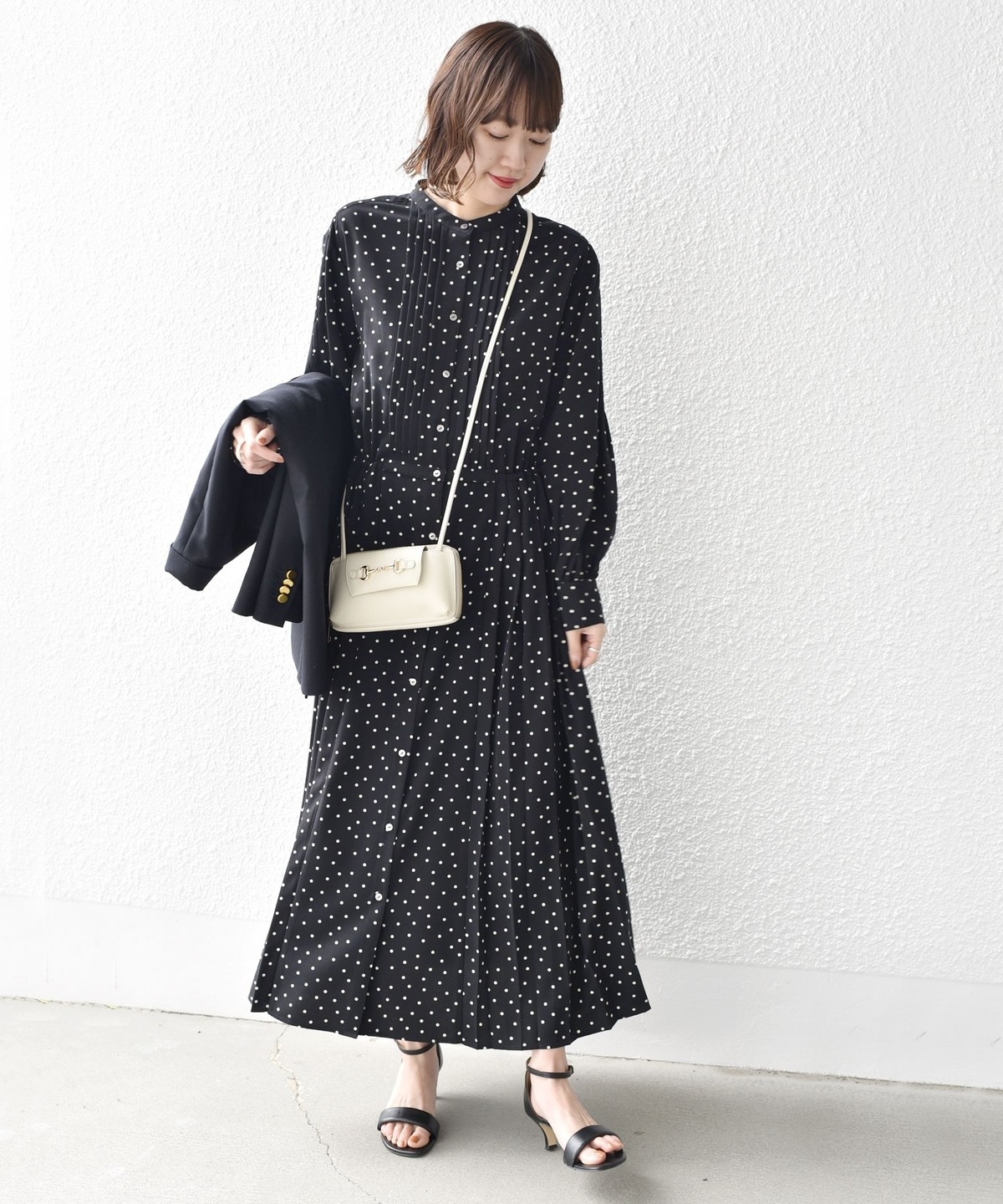 3. 【WEB限定】〈手洗い可能〉ドット / 花柄 バンドカラー サイド プリーツ ワンピース ブラック系
