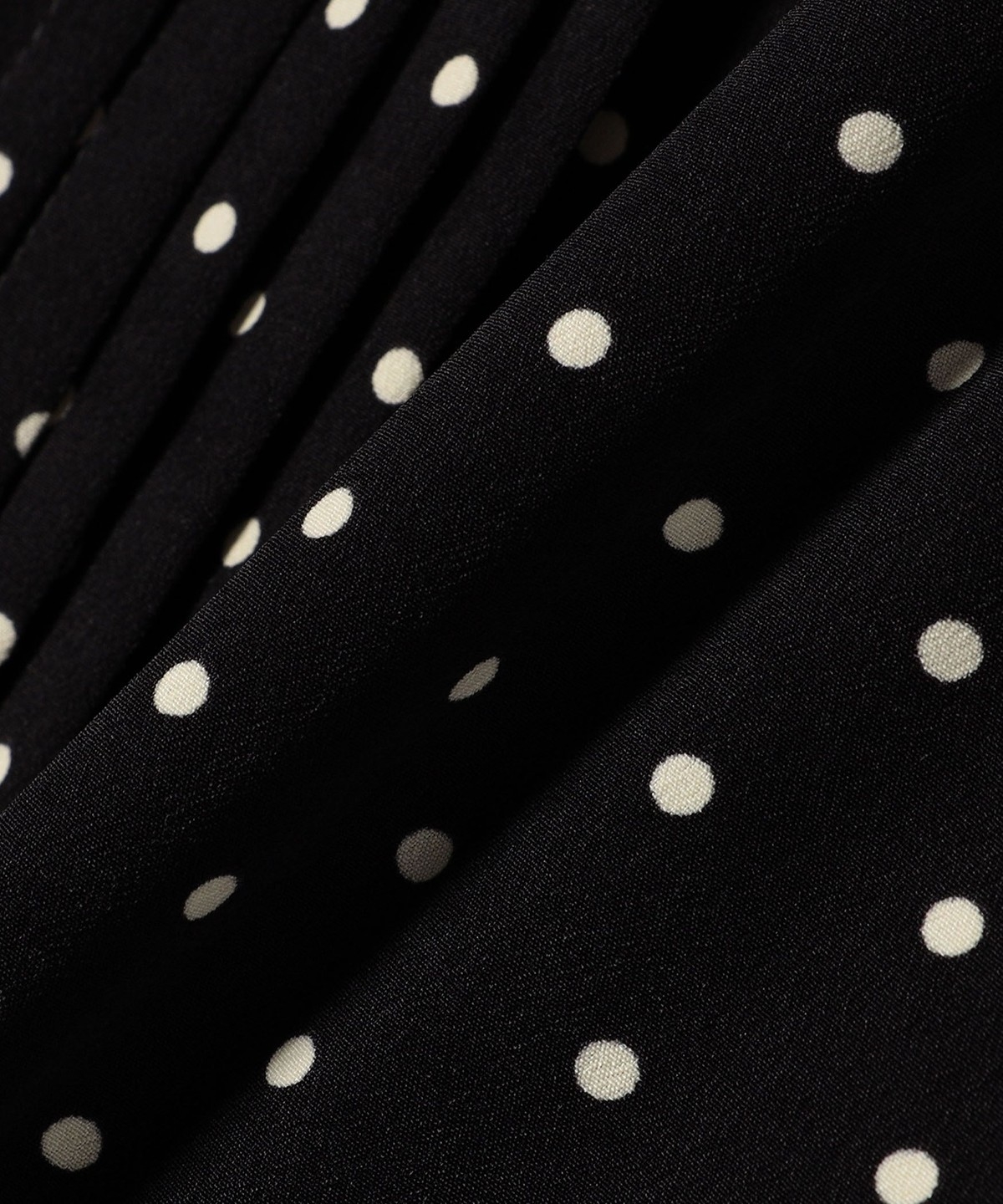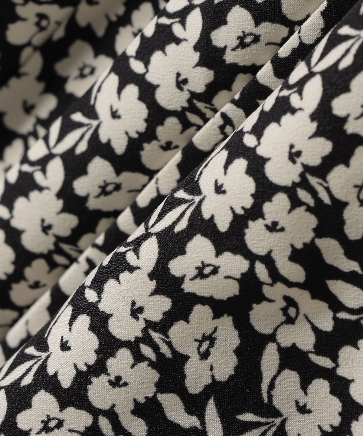 4. 【WEB限定】〈手洗い可能〉ドット / 花柄 バンドカラー サイド プリーツ ワンピース ブラック