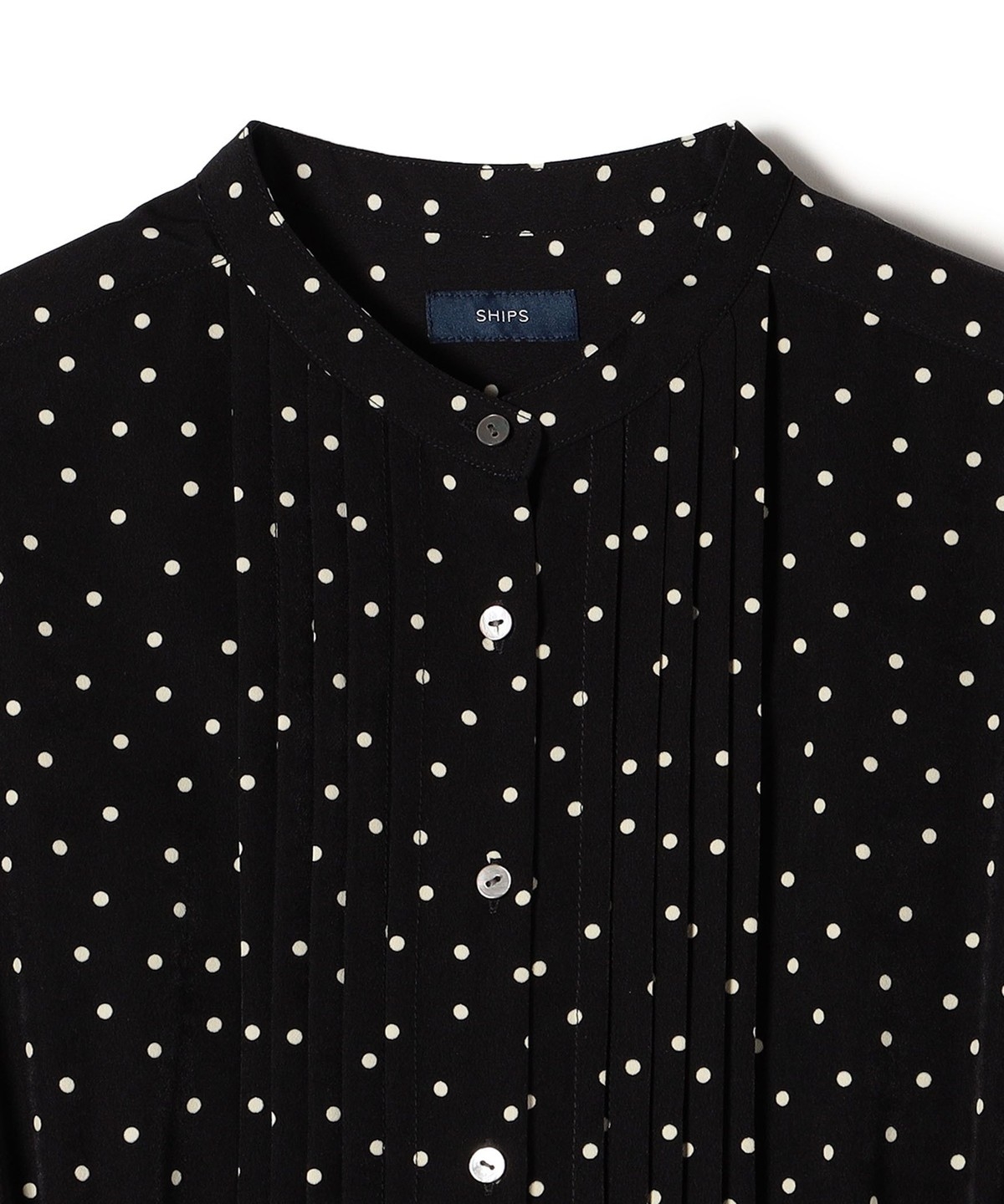 10. 【WEB限定】〈手洗い可能〉ドット / 花柄 バンドカラー サイド プリーツ ワンピース