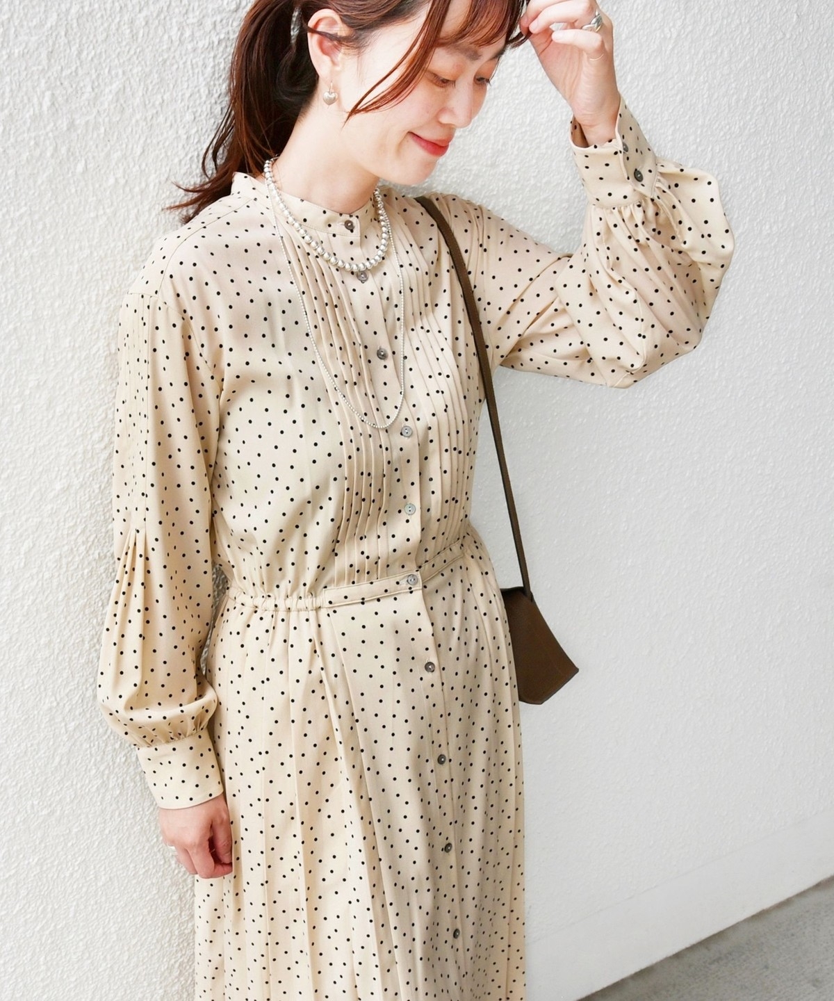 35. 【WEB限定】〈手洗い可能〉ドット / 花柄 バンドカラー サイド プリーツ ワンピース