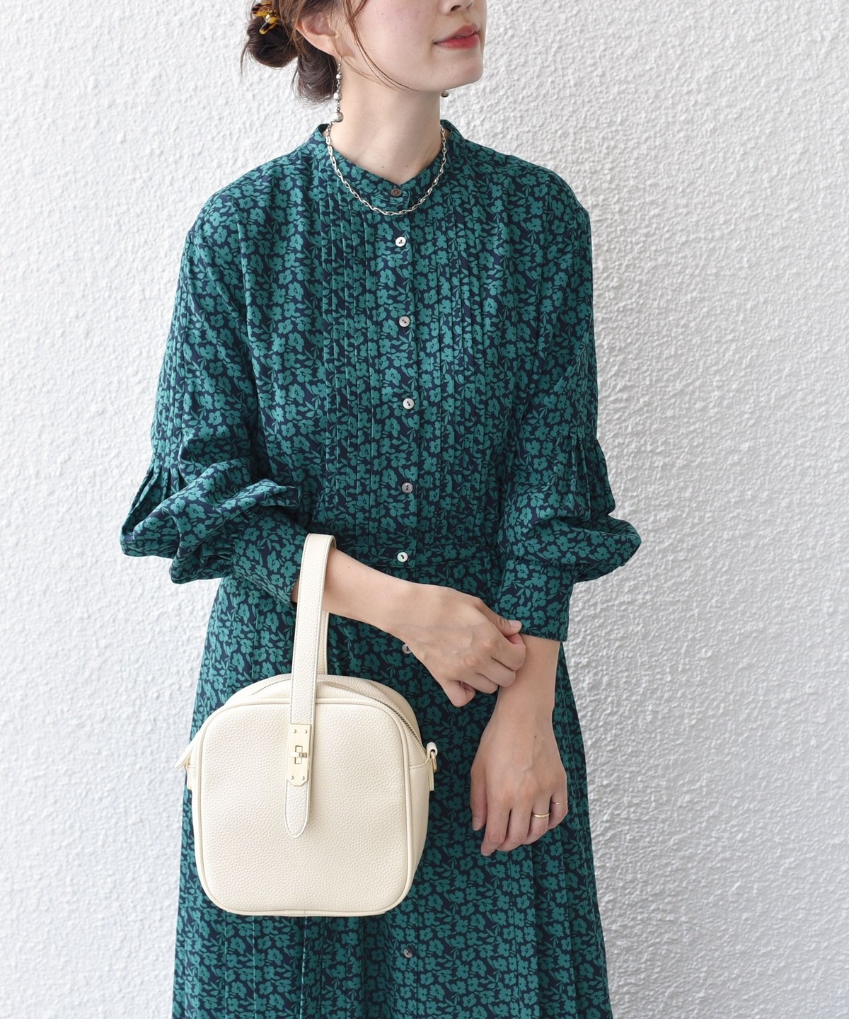 43. 《一部追加予約》【WEB限定】〈手洗い可能〉ドット / 花柄 バンドカラー サイド プリーツ ワンピース