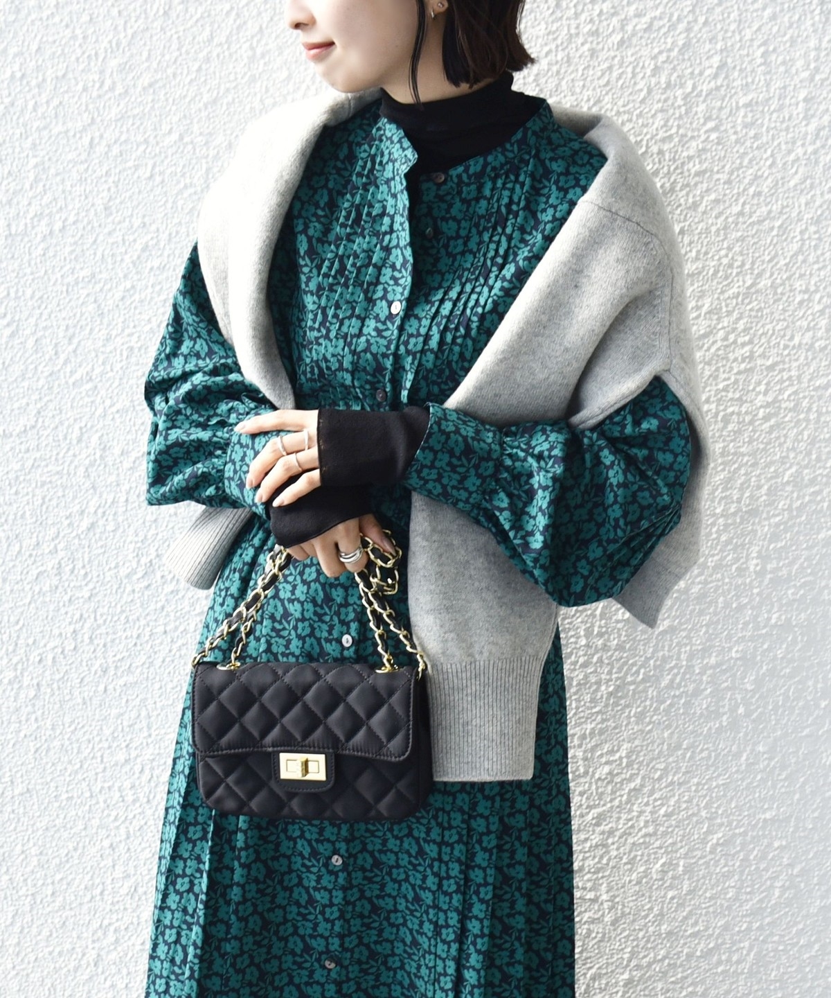 69. 《一部追加予約》【WEB限定】〈手洗い可能〉ドット / 花柄 バンドカラー サイド プリーツ ワンピース