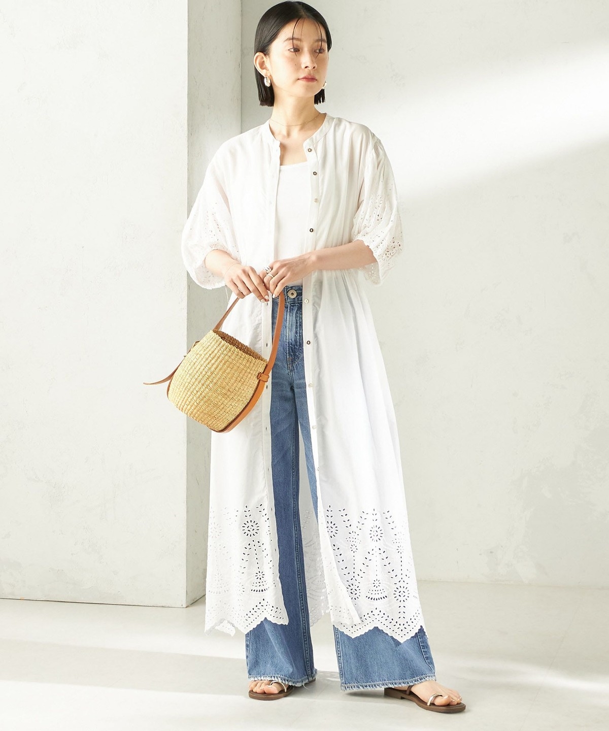 前開き仕様なので、ワンピースとしてはもちろん、Tシャツやタンクトップの上に軽やかな羽織りとしても活躍する、万能な一着です。
