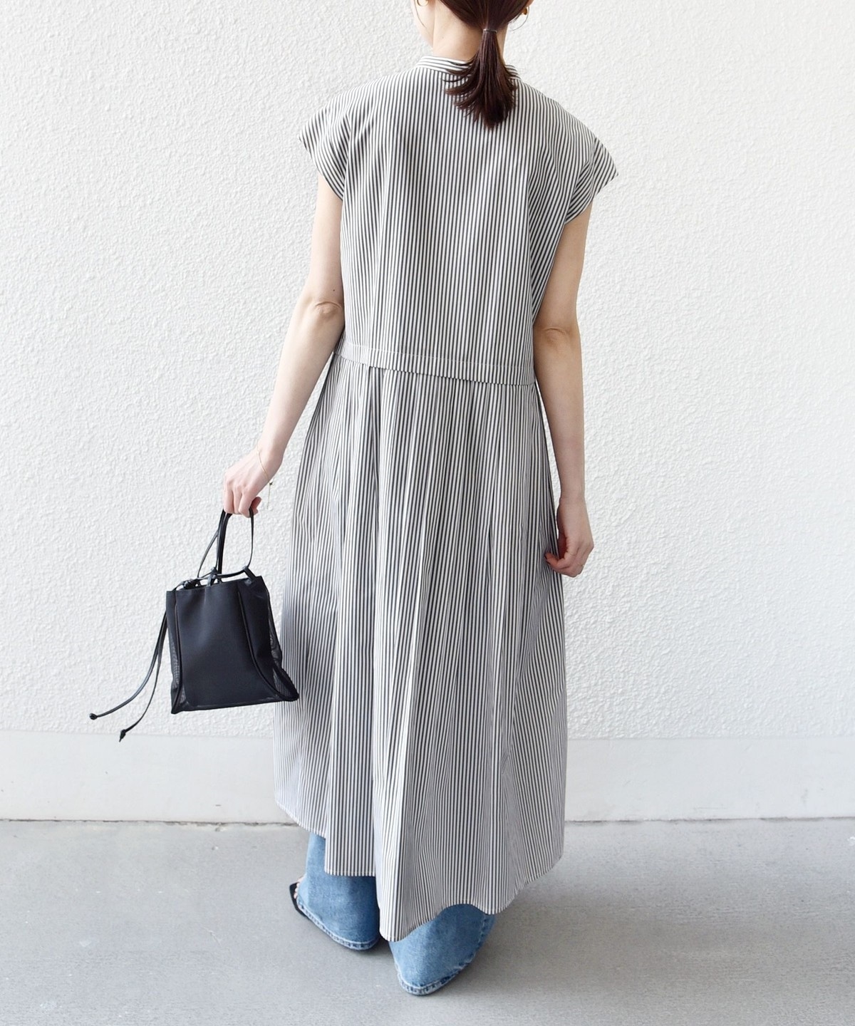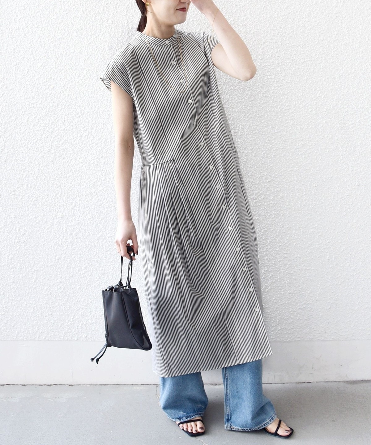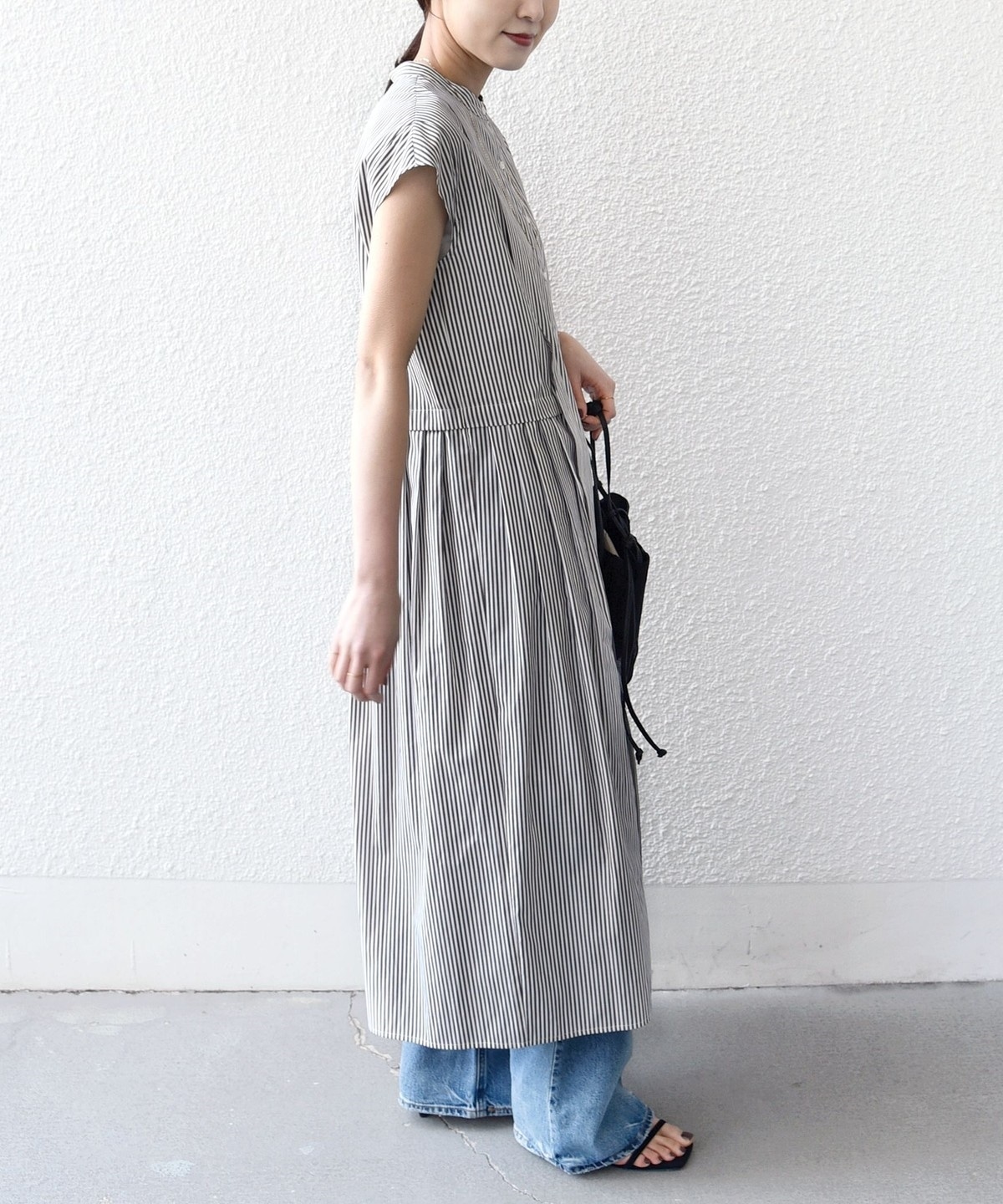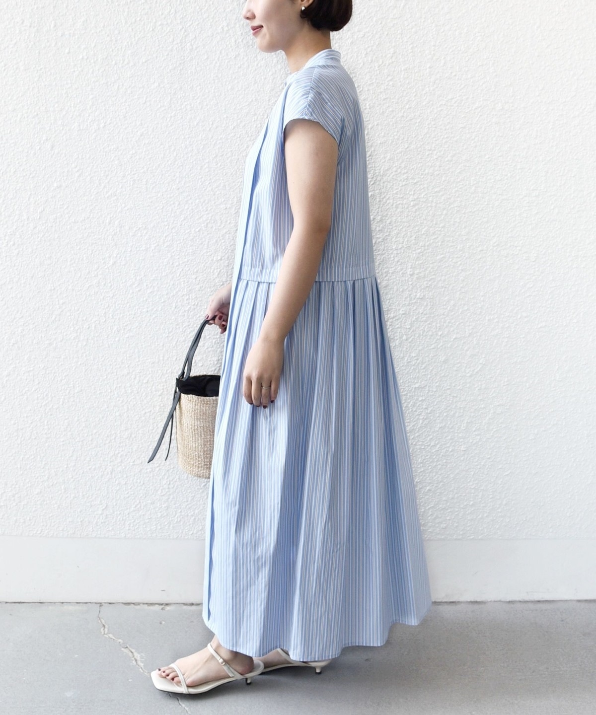 《予約》【WEB限定】〈手洗い可能〉ストライプ サイド タック ワンピース