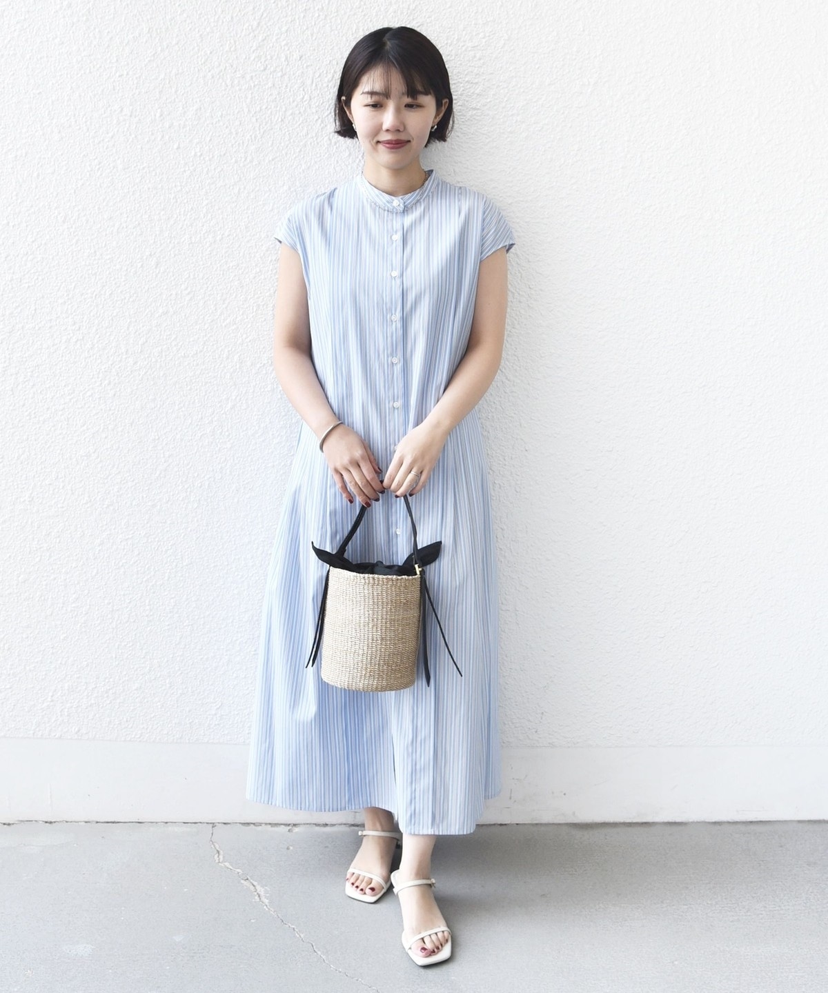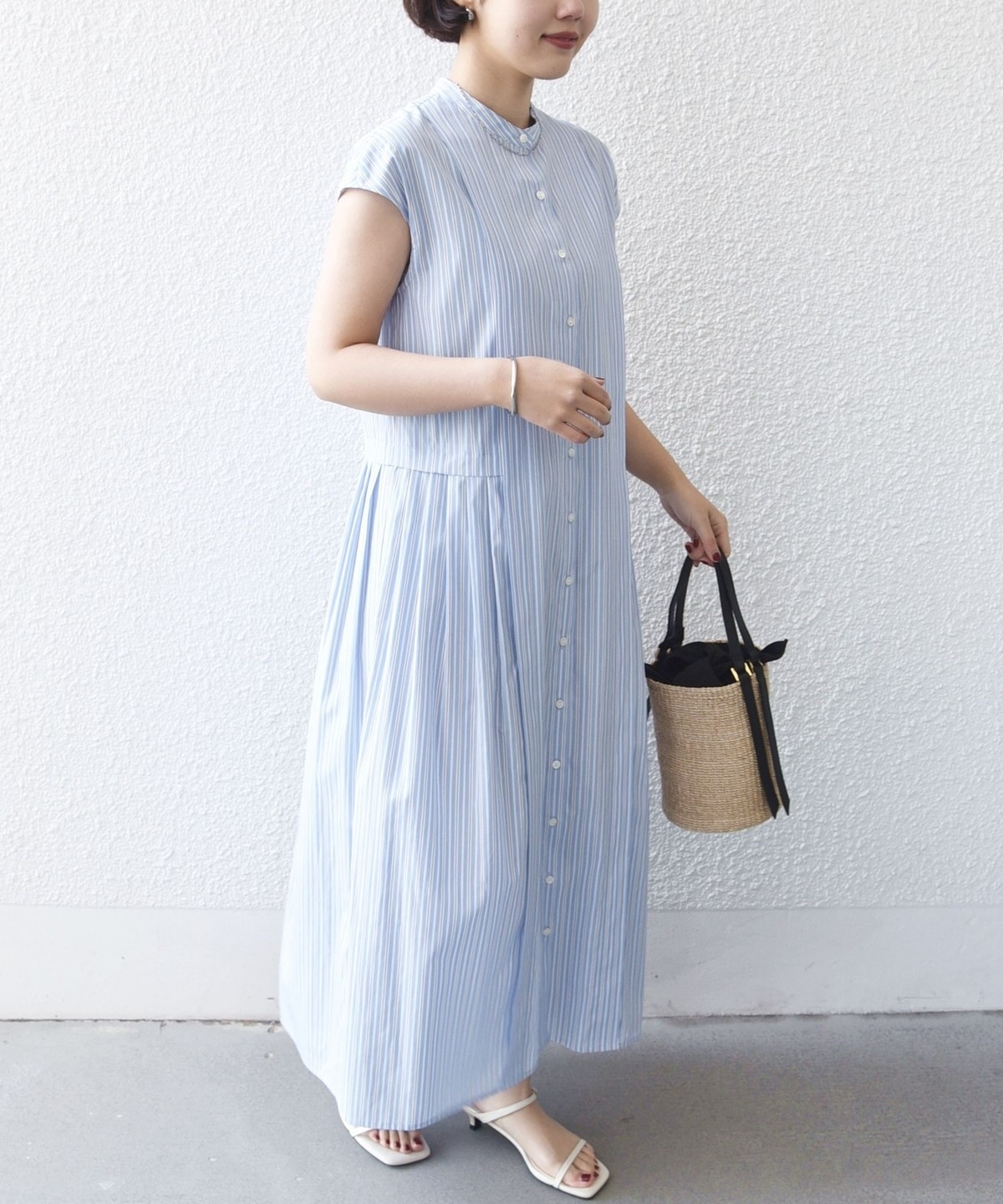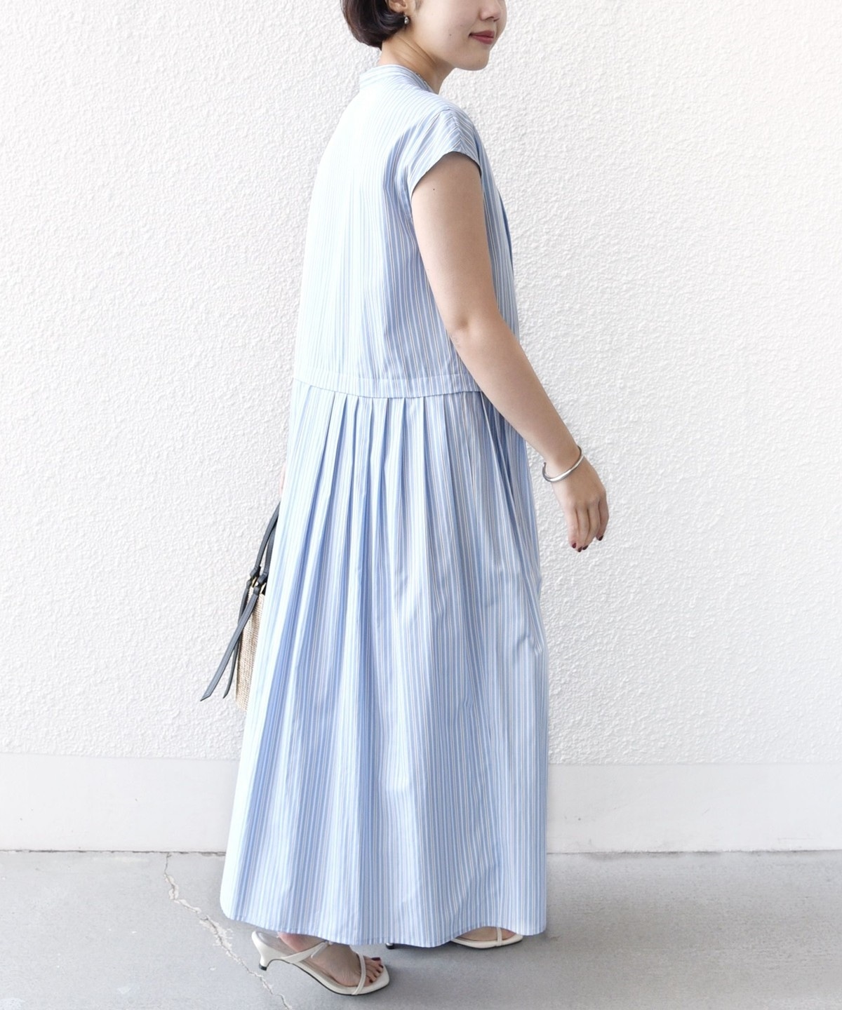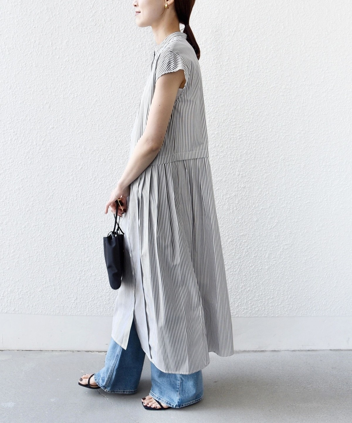 《予約》【WEB限定】〈手洗い可能〉ストライプ サイド タック ワンピース
