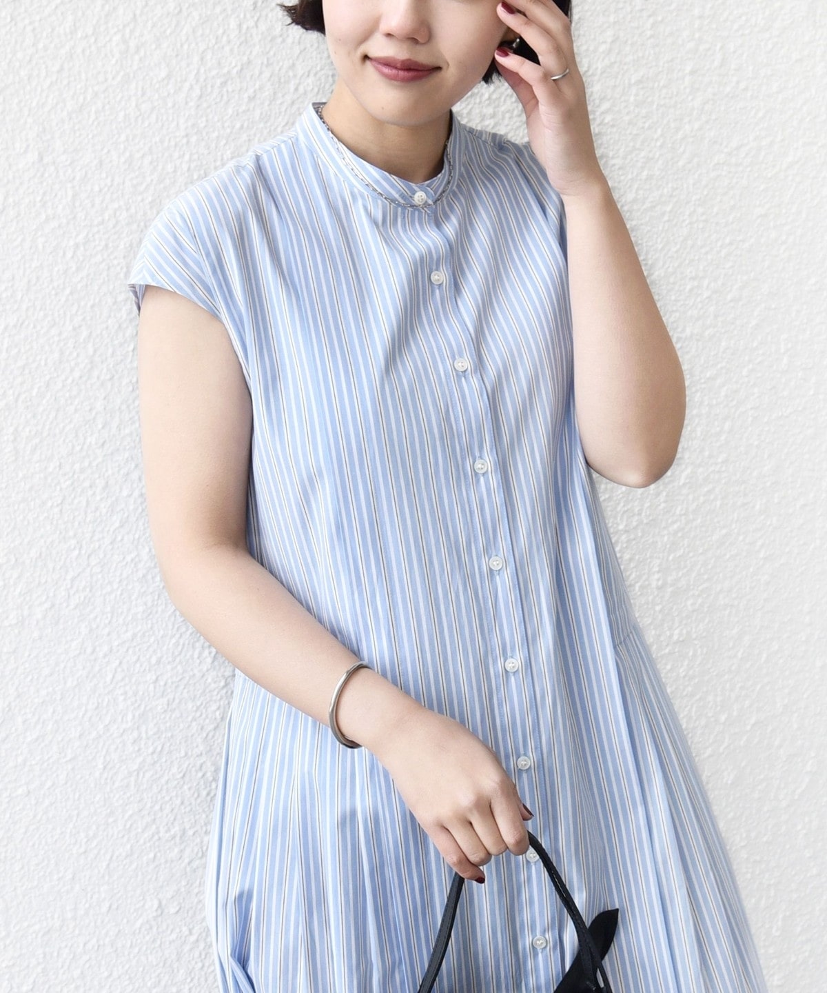 コットン混のストライプ素材を使用。