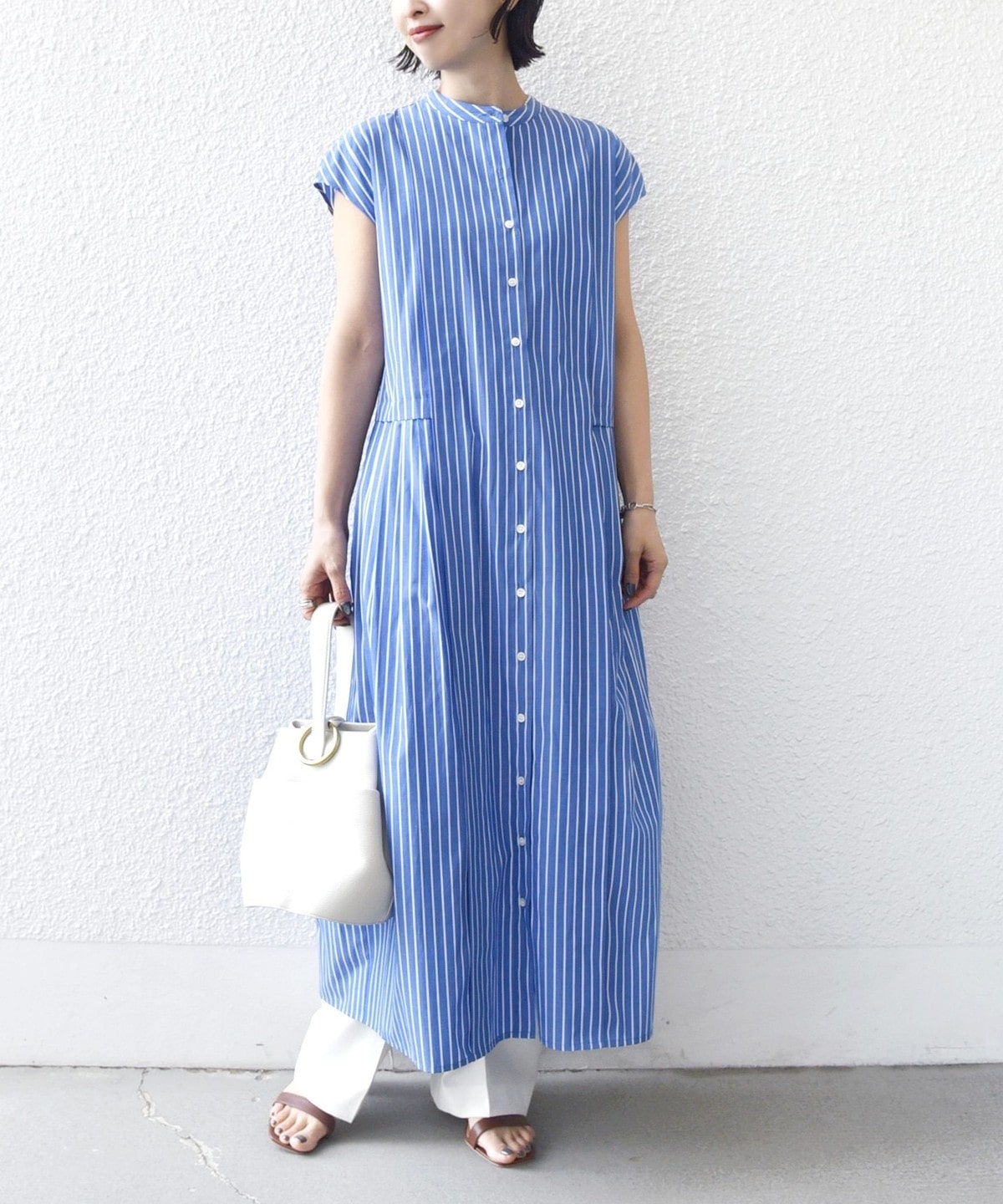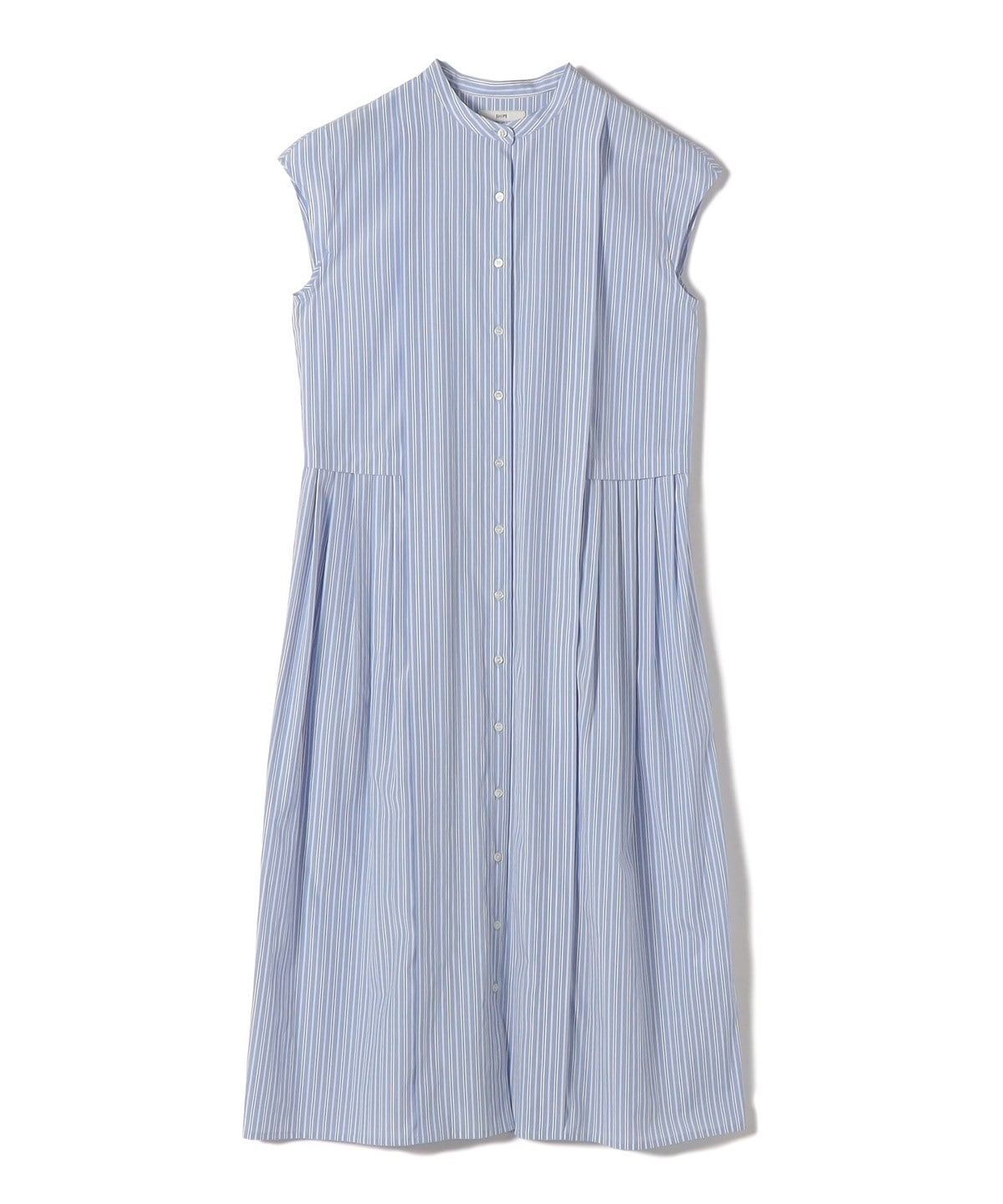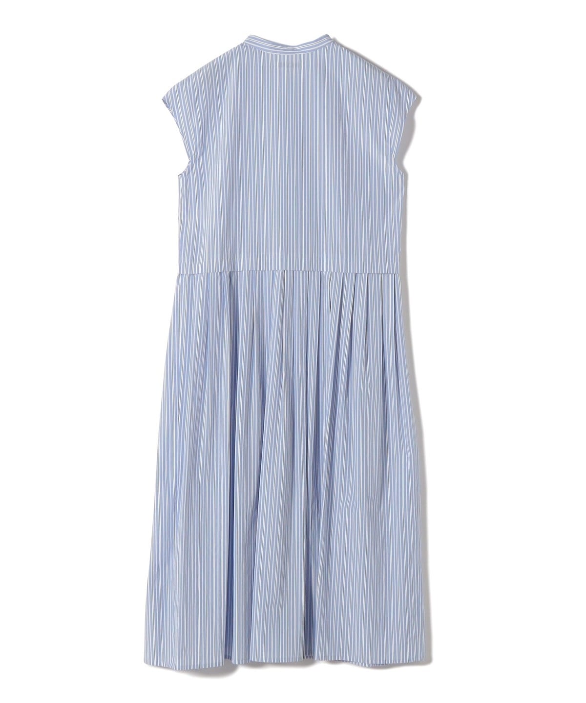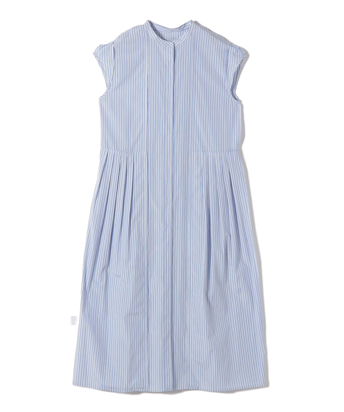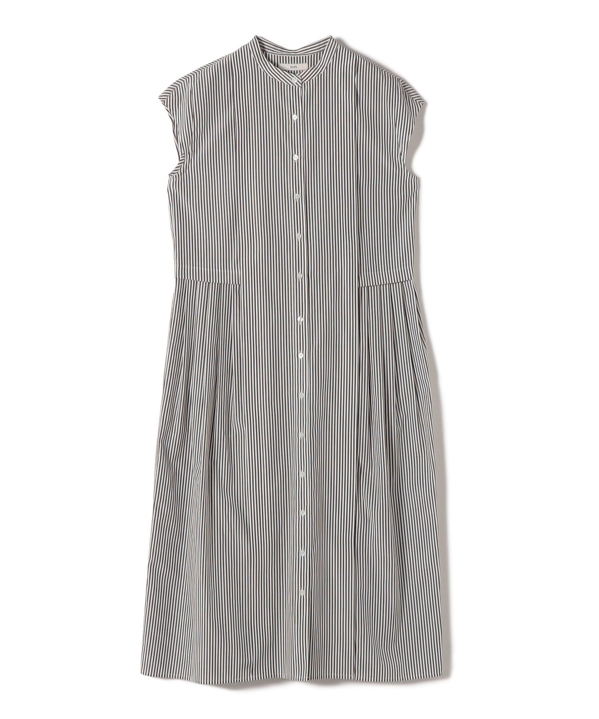 サイドに入れたタックがポイントのストライプシャツワンピース。