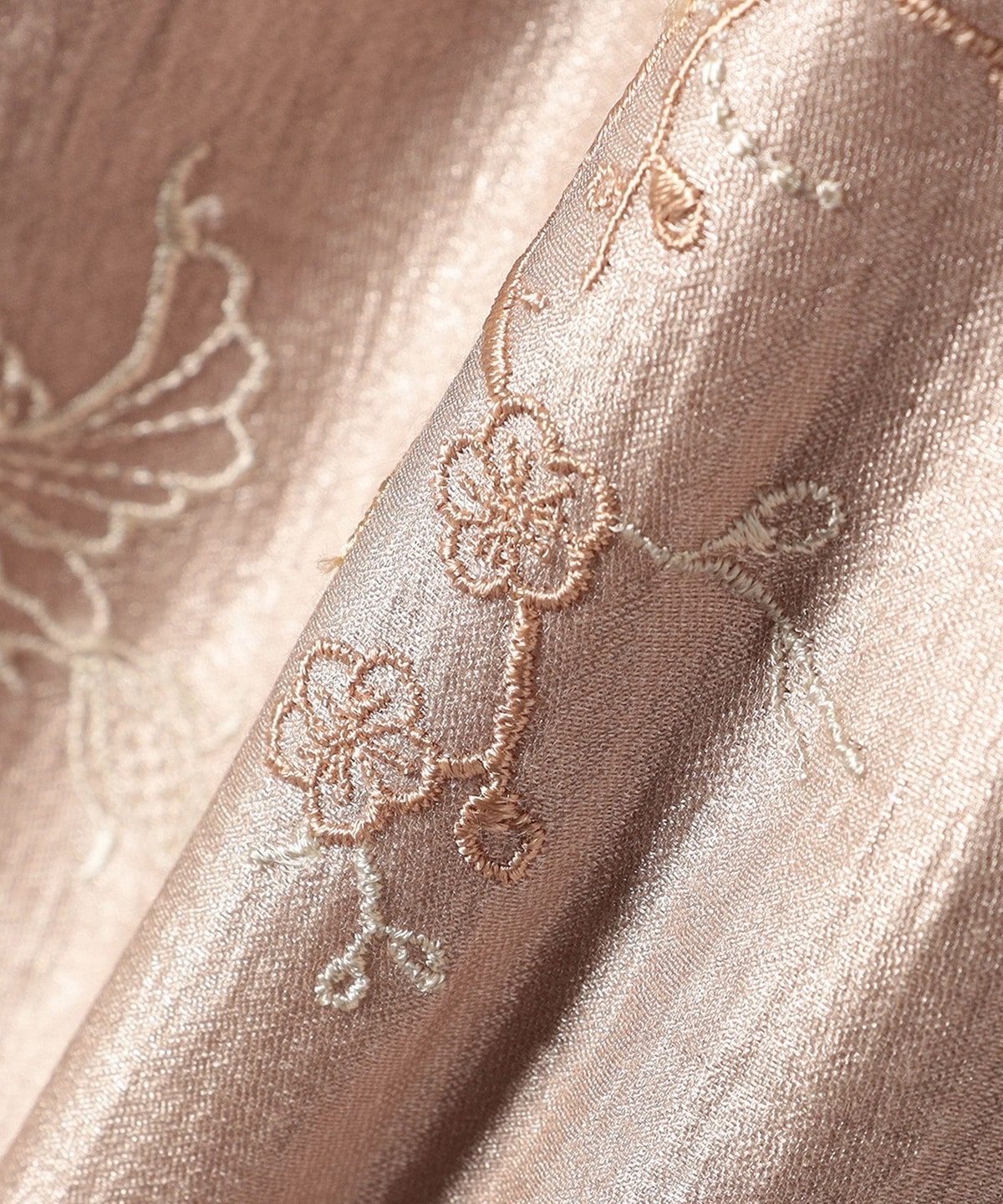 素材:表地(レーヨン70%、ポリエステル20%、ナイロン10%)刺繍糸(レーヨン100%)別布(レーヨン70%、ポリエステル20%、ナイロン10%)裏地(ポリエステル100%)