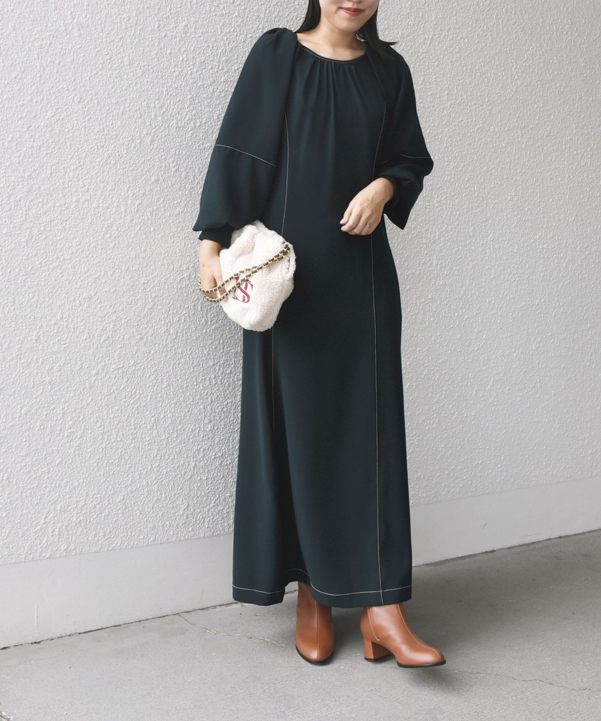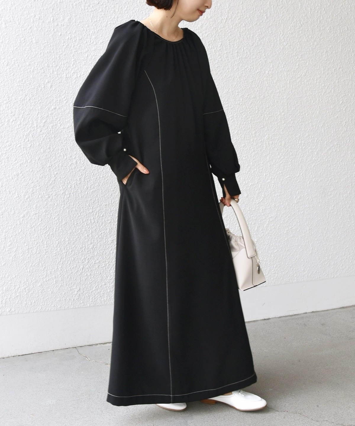 【SHIPS別注】kaene:2WAY ボウタイ ロング ワンピース(セレモニー対応可)