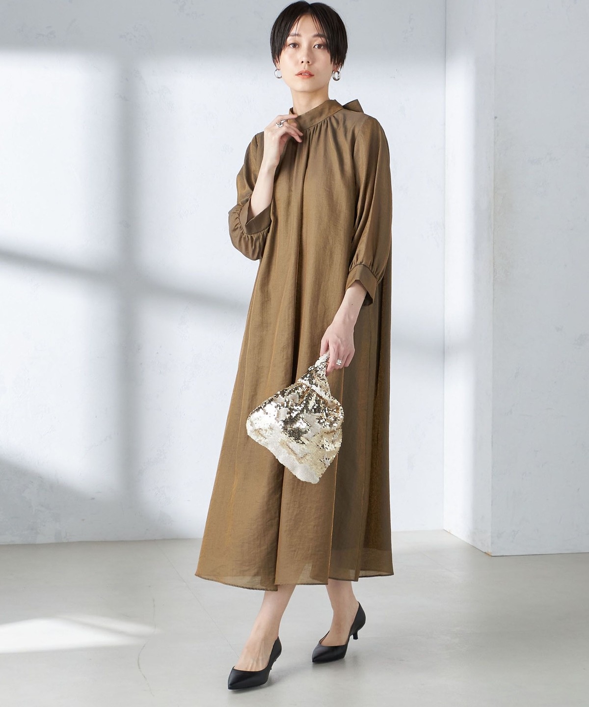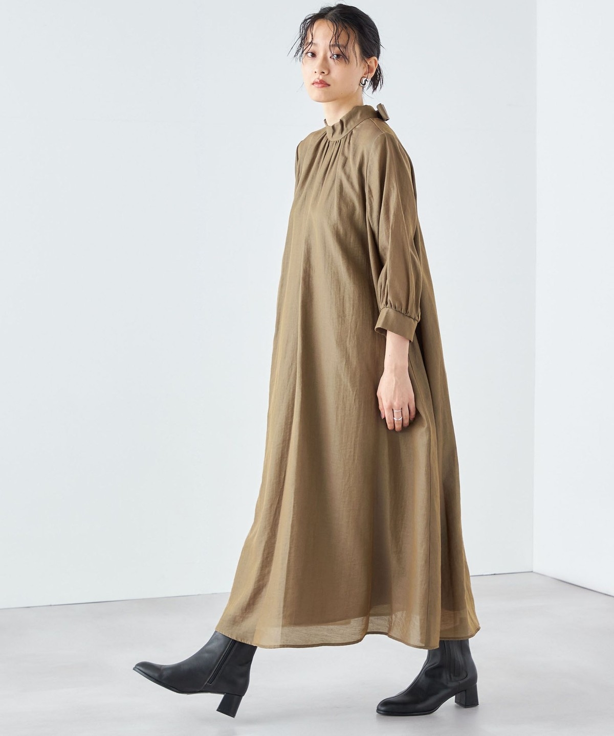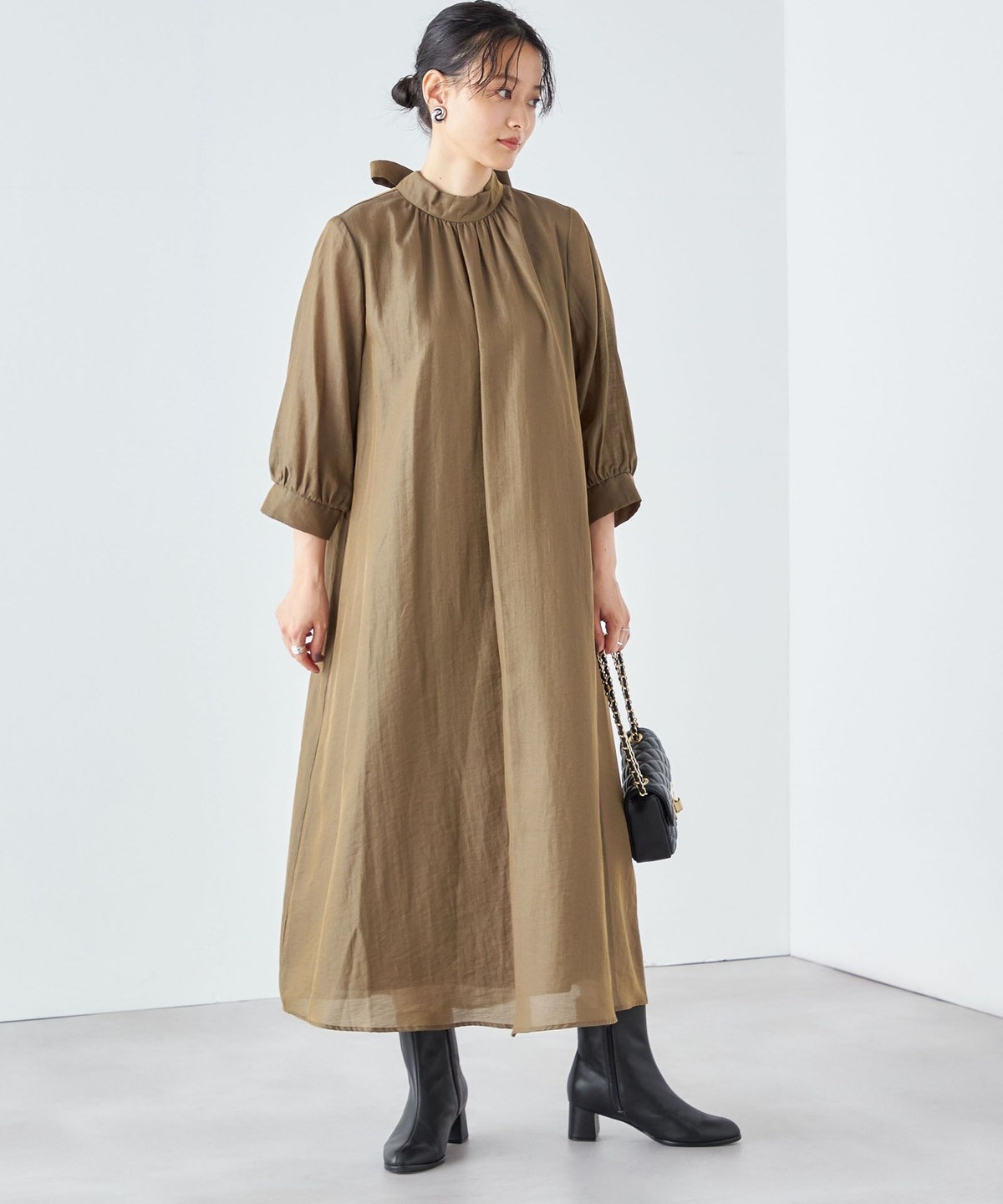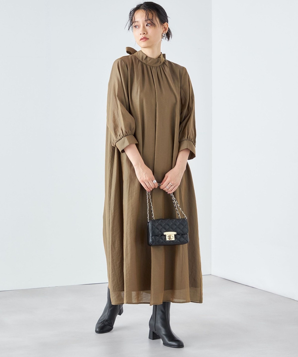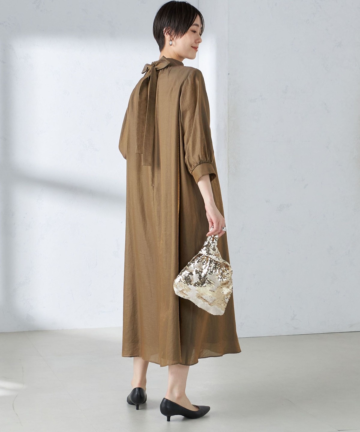 2. 【SHIPS別注】kaene:2WAY ボウタイ ロング ワンピース(セレモニー対応可) オリーブ