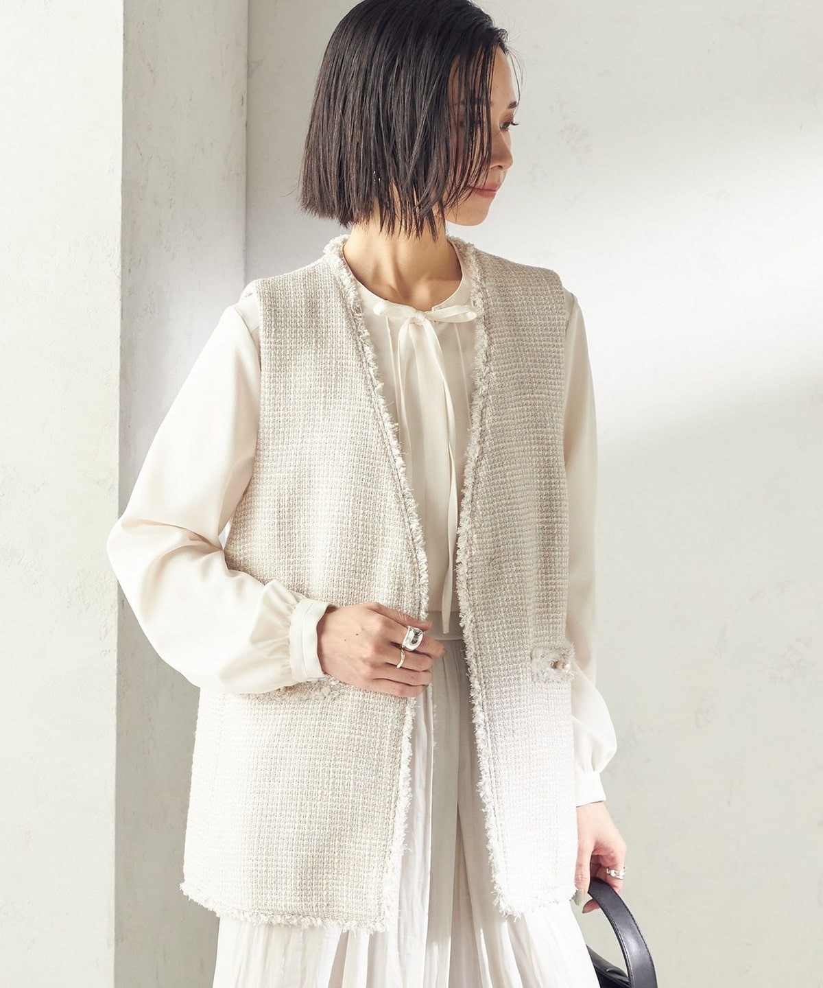 トライスピン 杢 ツイード カラーレス ジレ(セレモニー対応可)