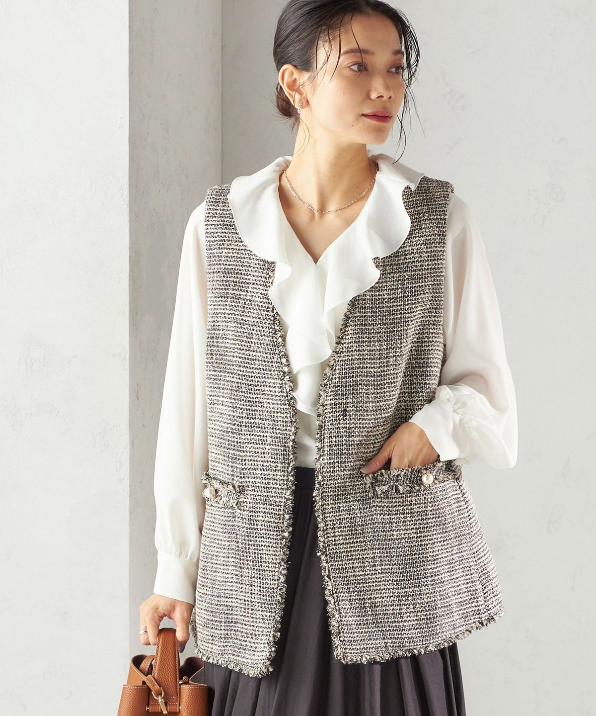 《予約》トライスピン 杢 ツイード カラーレス ジレ(セレモニー対応可)