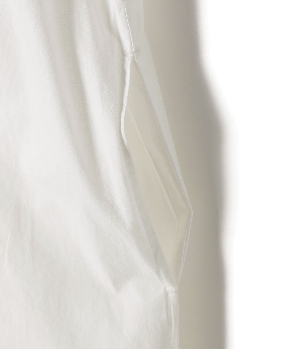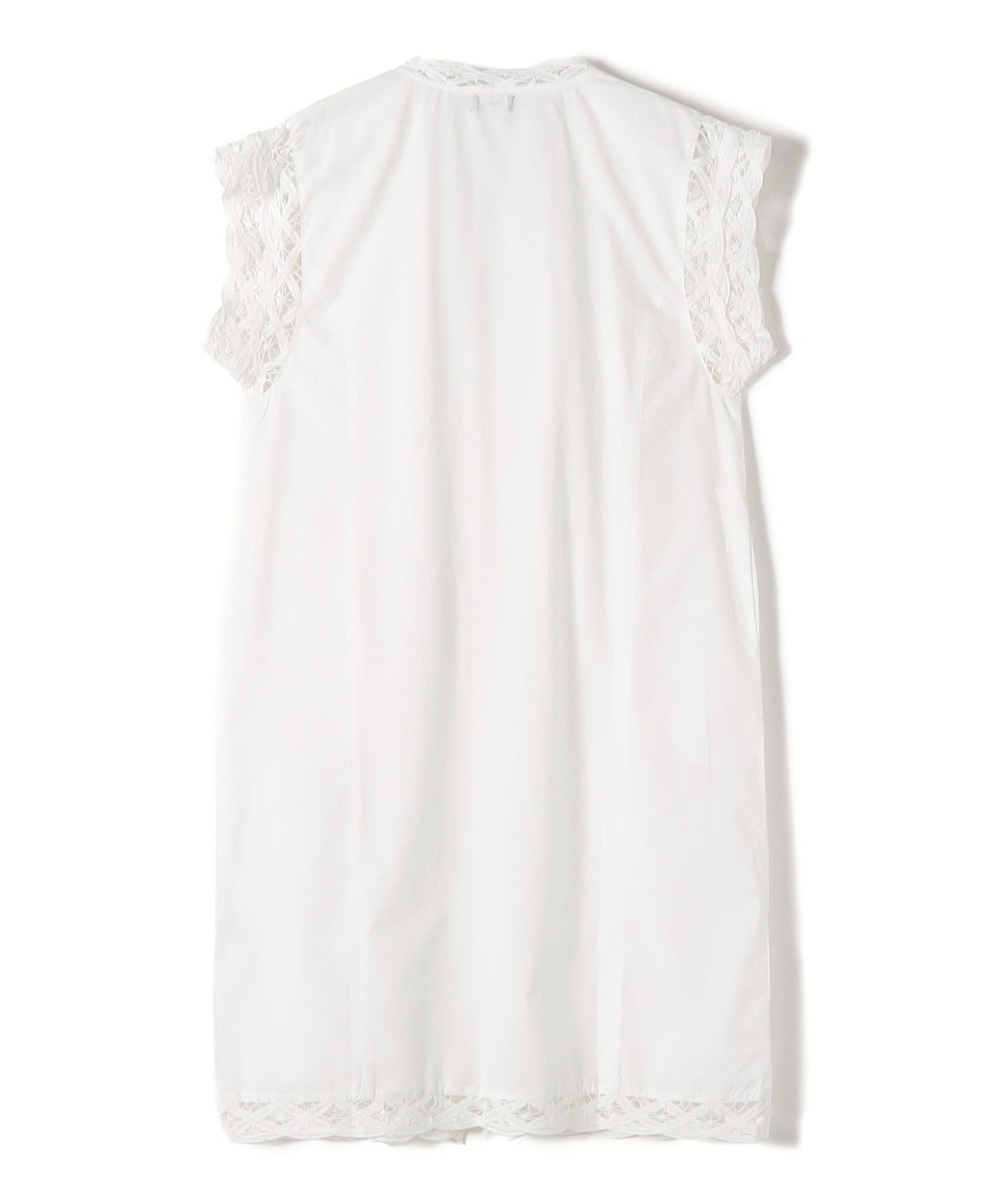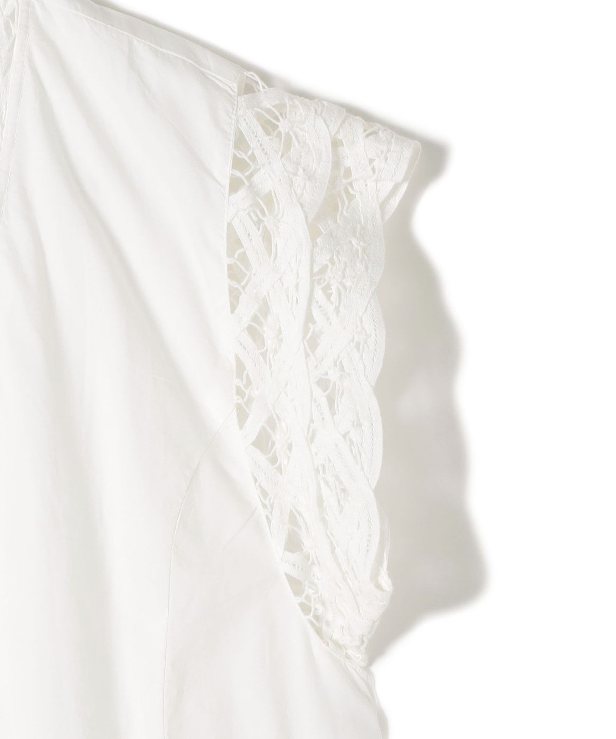 張りのあるポプリン生地に、アームから裾まで贅沢にバテンレースをあしらったロングジレ。
