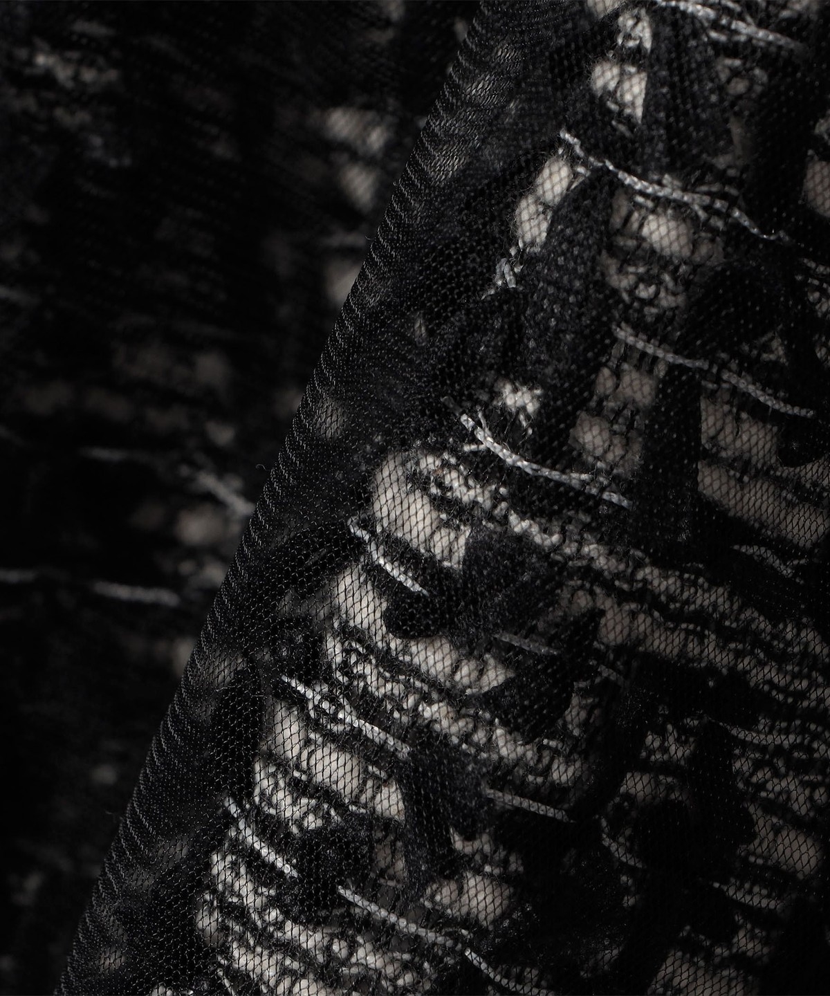 その上にチュールを重ねることで、異素材ならではの奥行きと新鮮な表情を楽しめる一着に仕上げています。