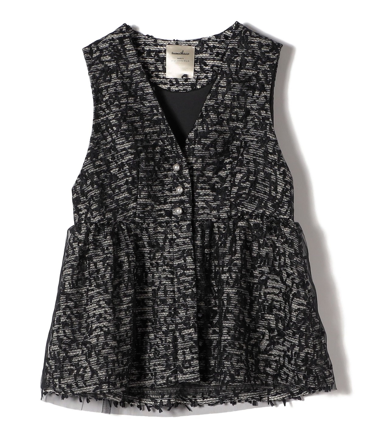 意匠感のあるツイードに繊細なチュールを重ねたジレ。