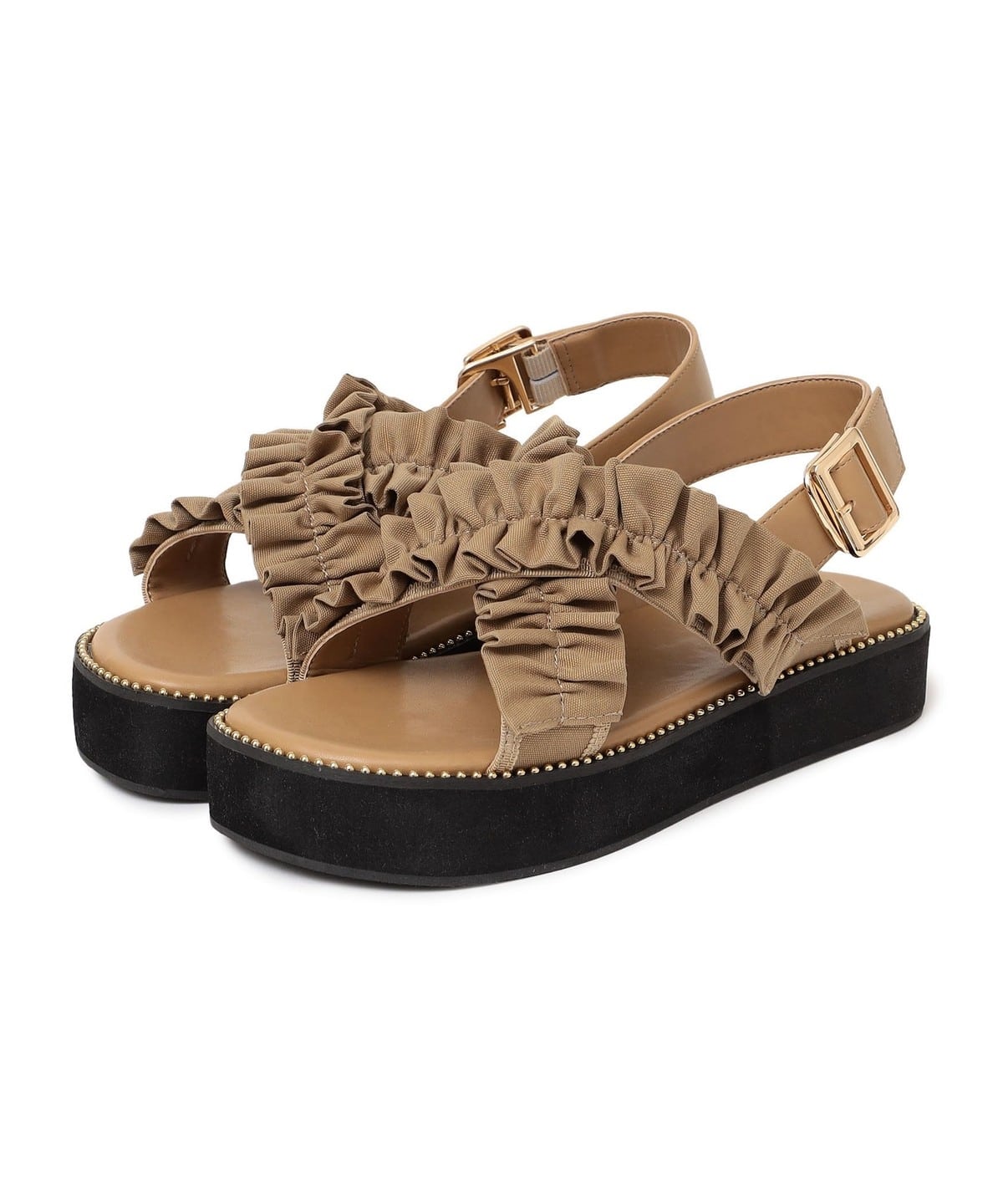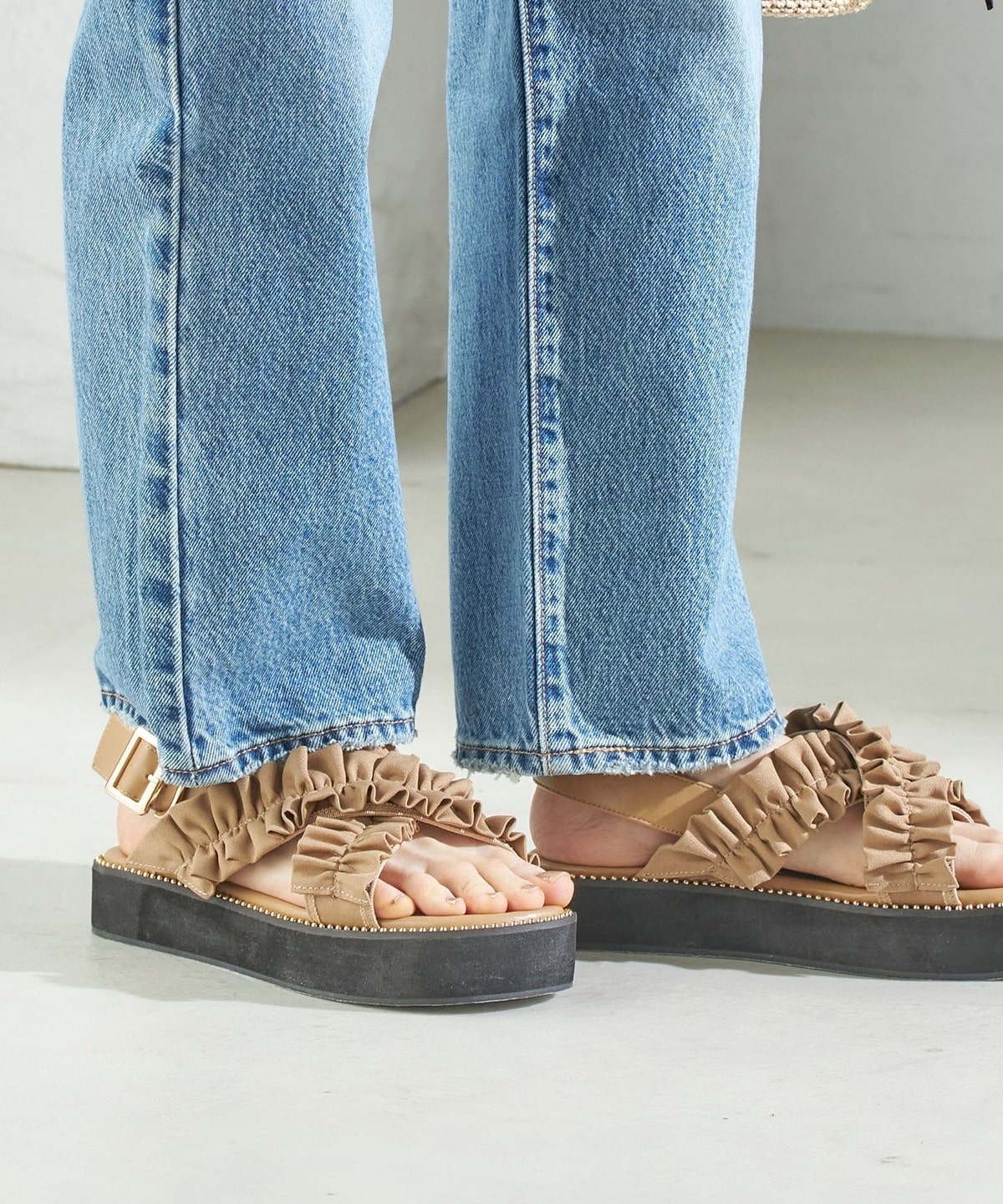 1. 【WEB限定】クロス フリル プラット フォーム サンダル ベージュ