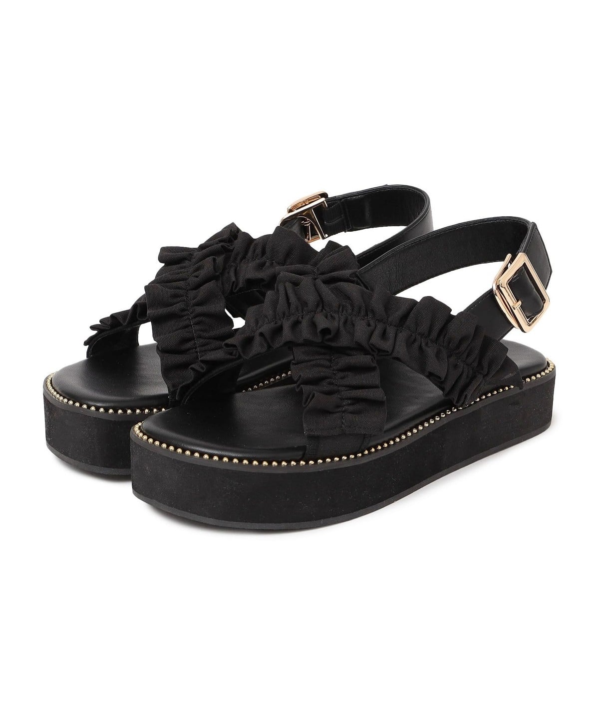 2. 【WEB限定】クロス フリル プラット フォーム サンダル ブラック