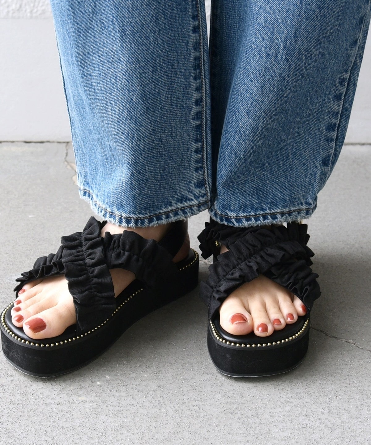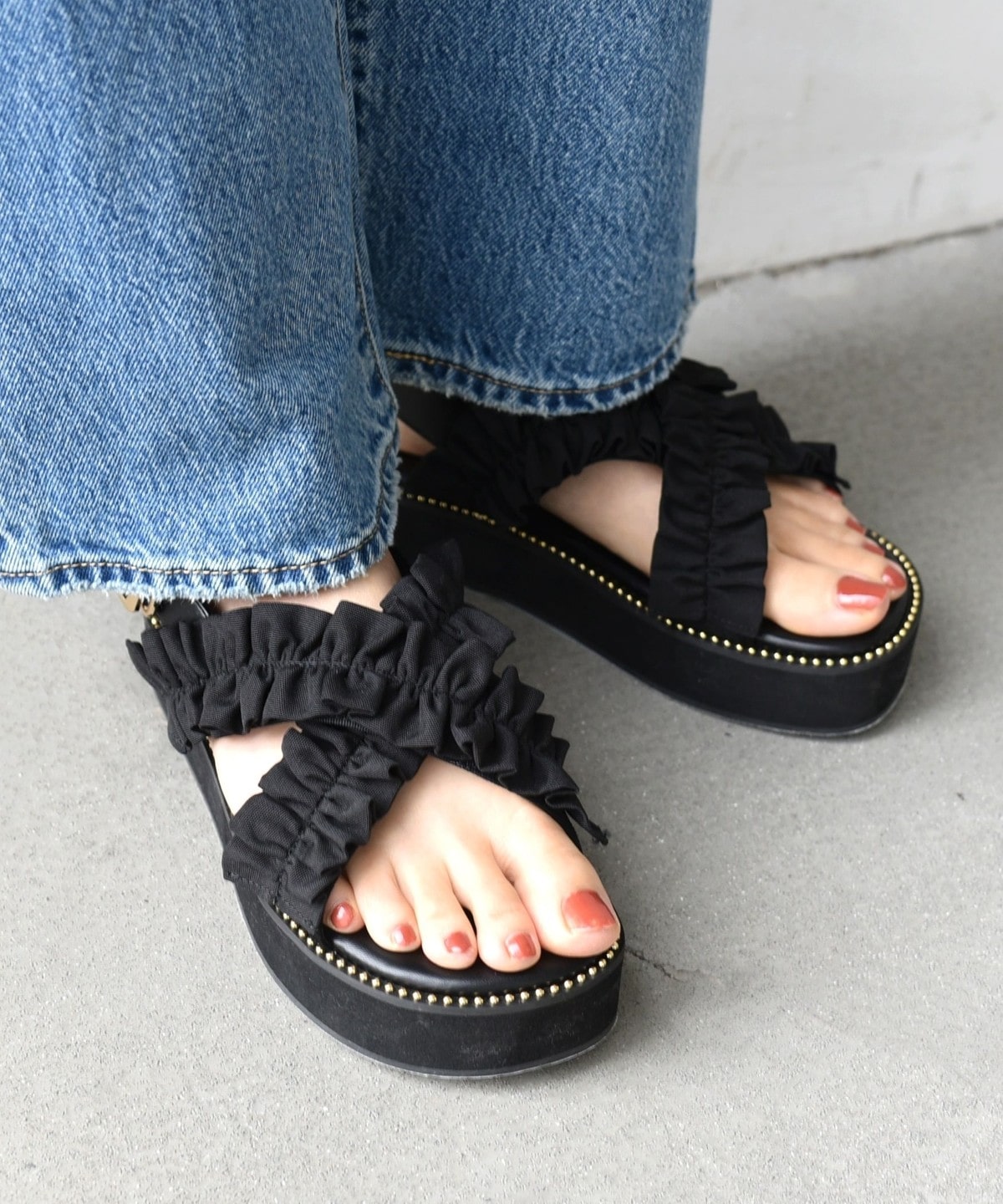 フリル×スタッズがポイントのサンダル