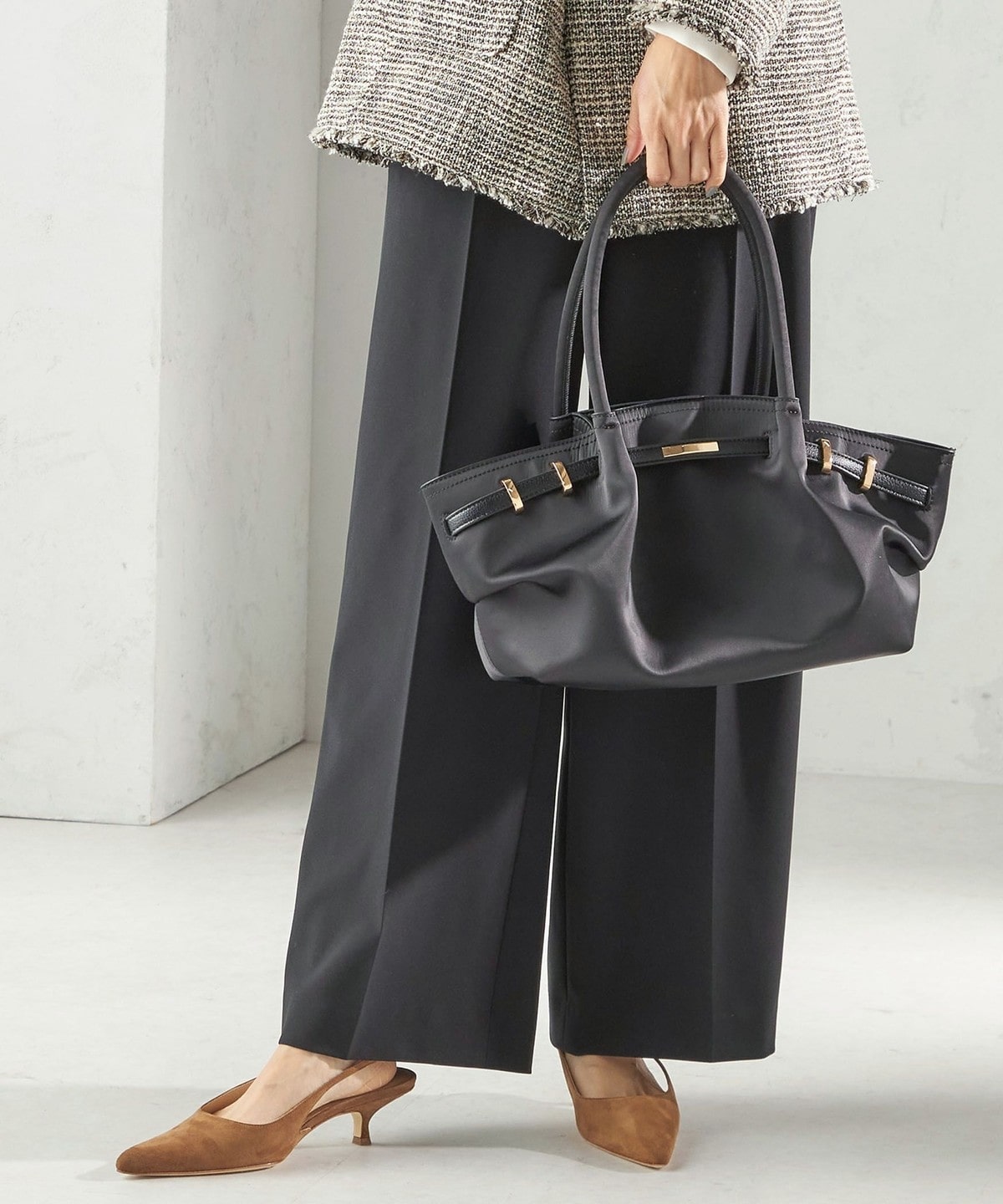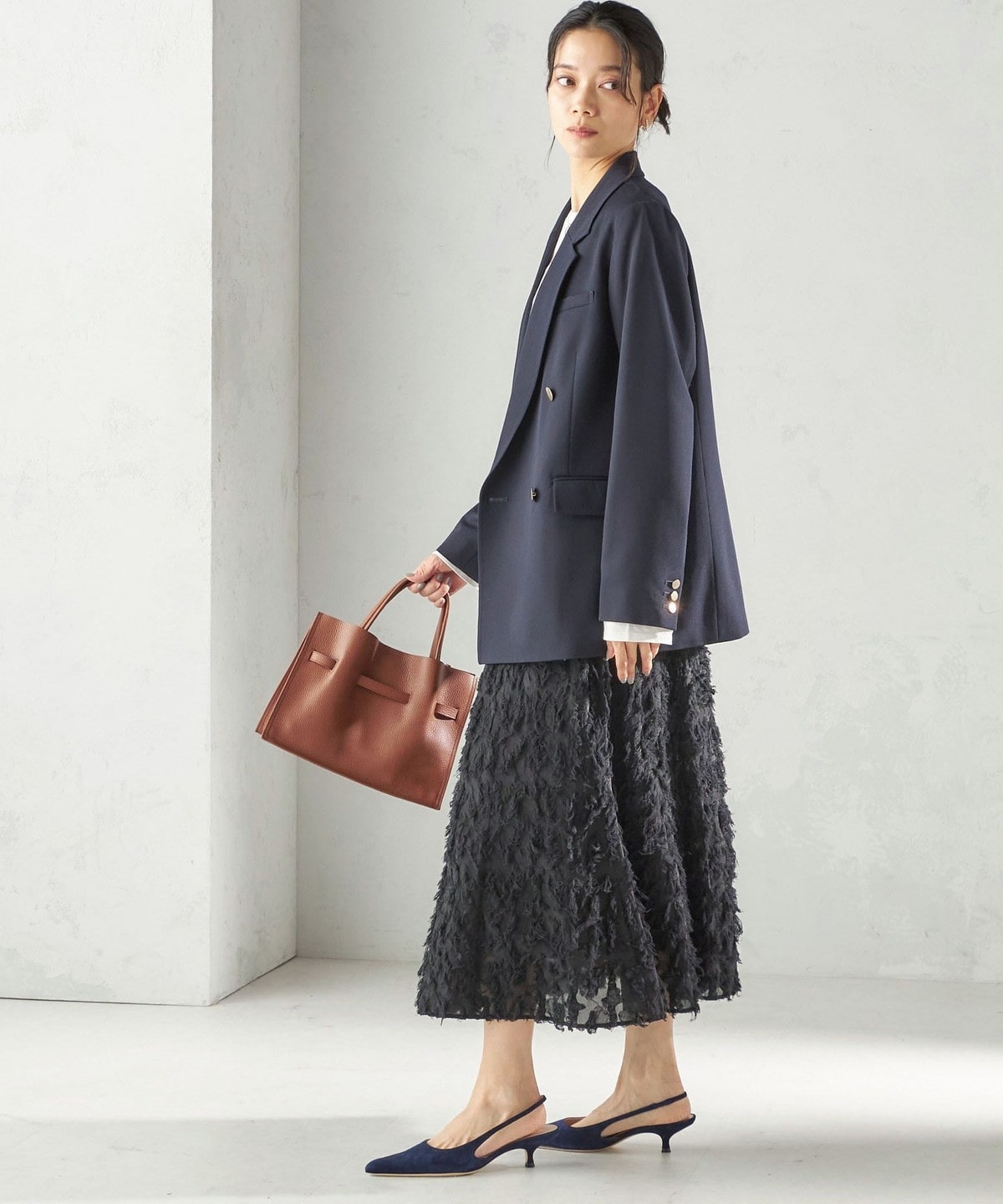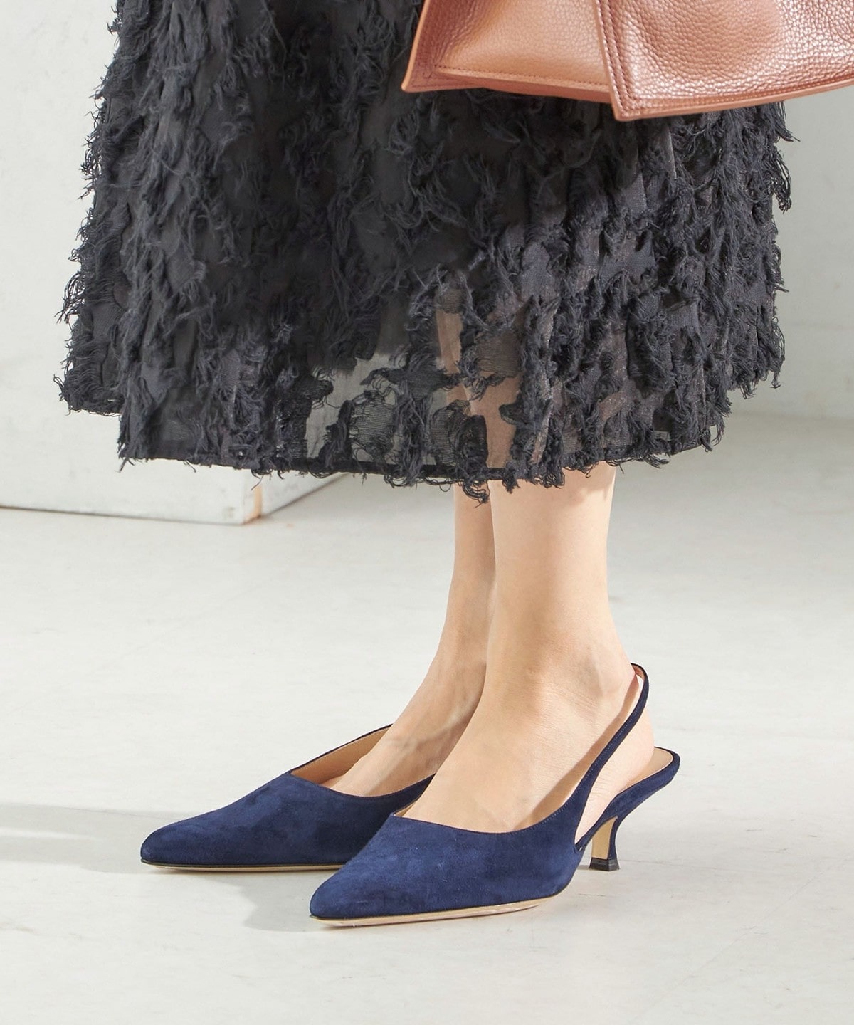 素材はトレンドのスエードで柔らかい雰囲気を演出しています。