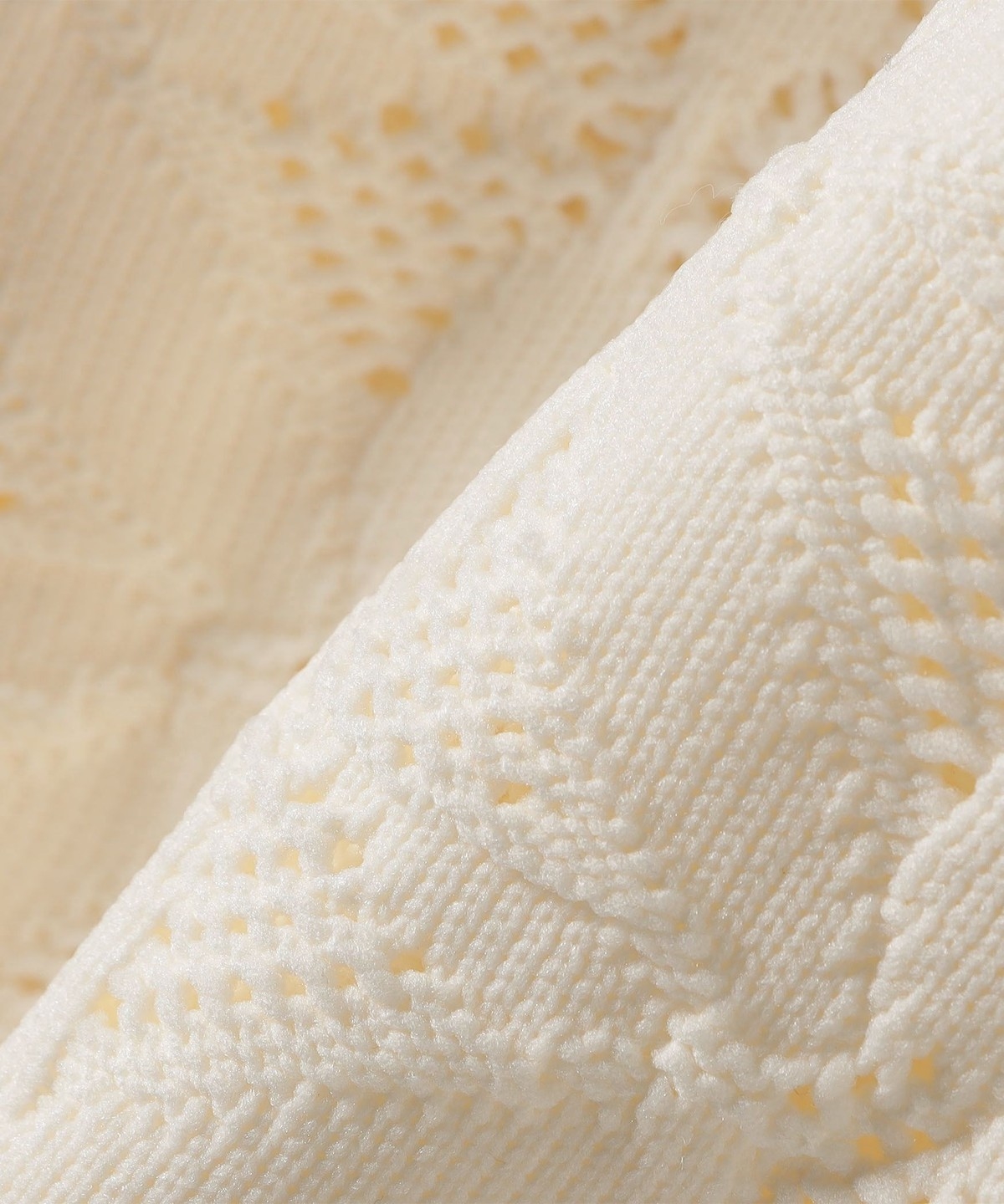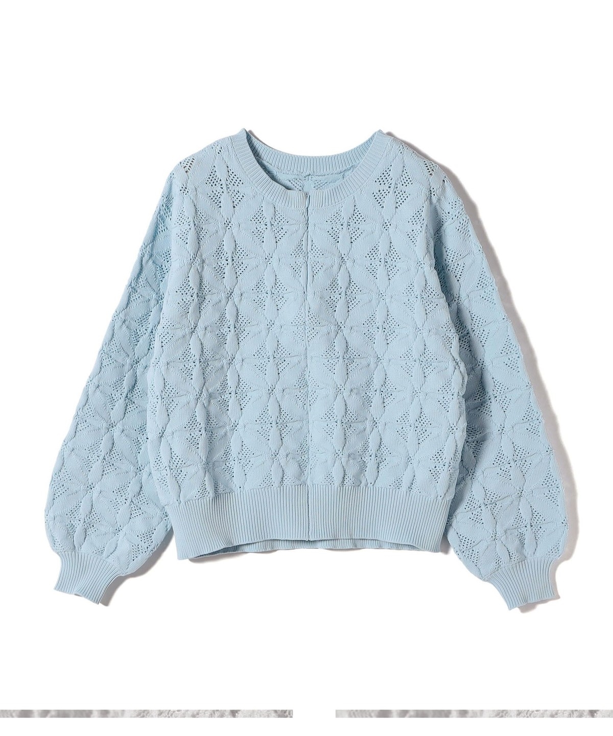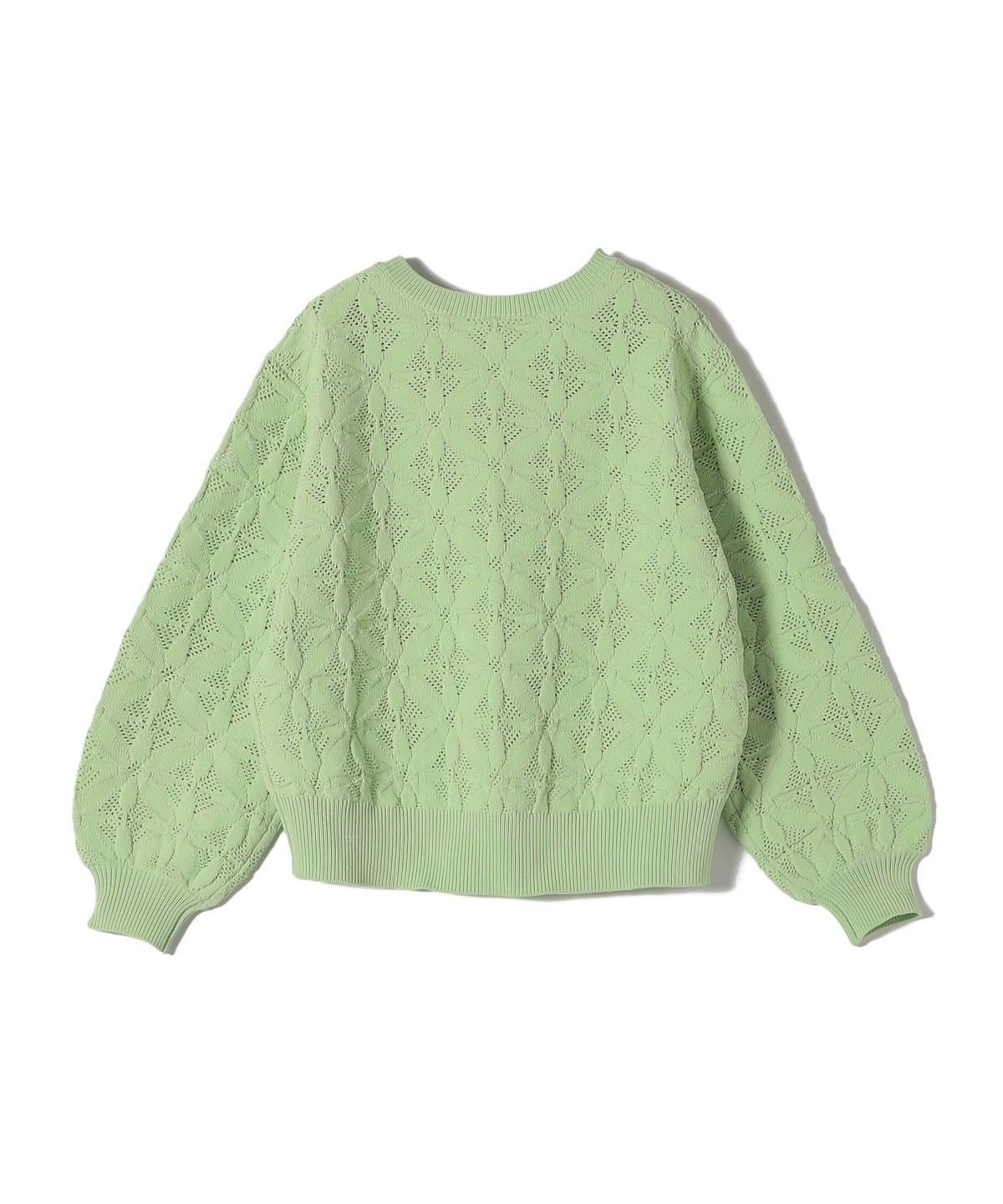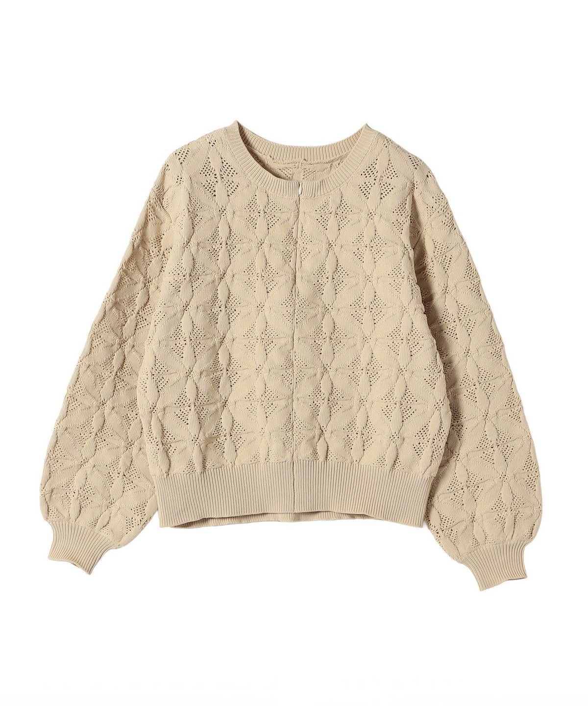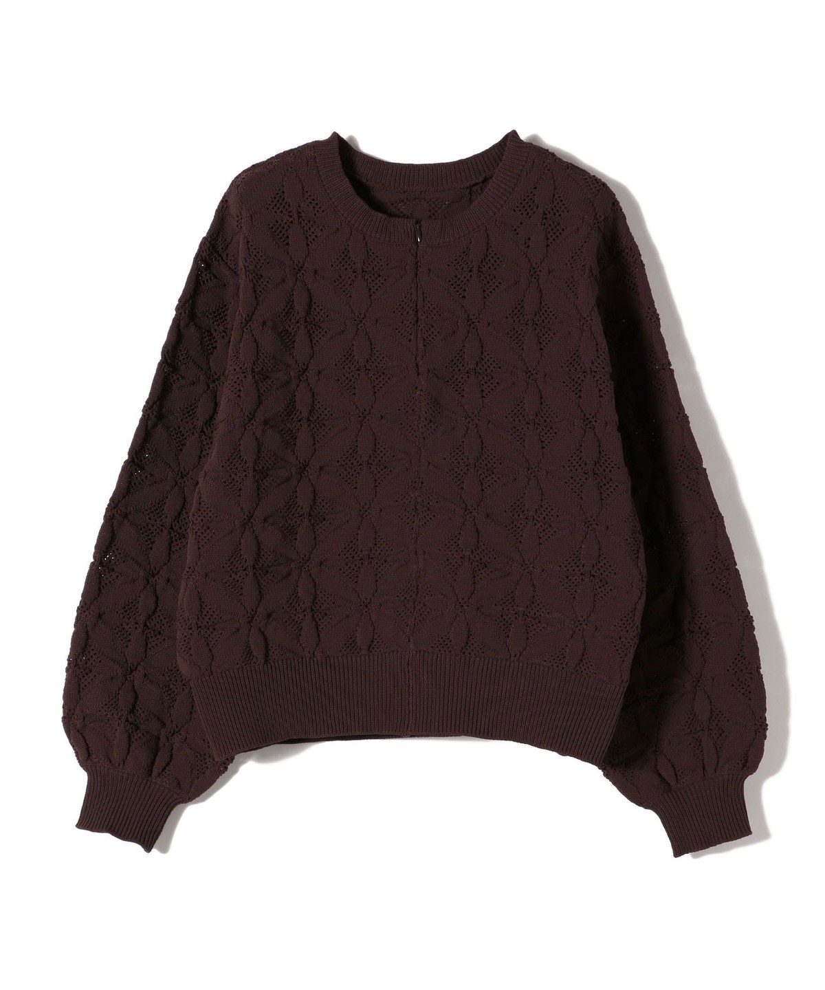 お花モチーフが春らしく、ニットならではの表面感で大人っぽい雰囲気に仕上がっています。