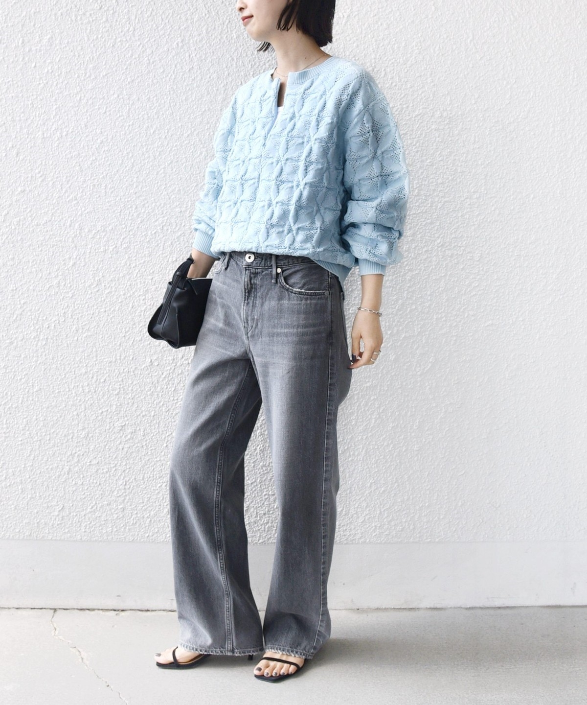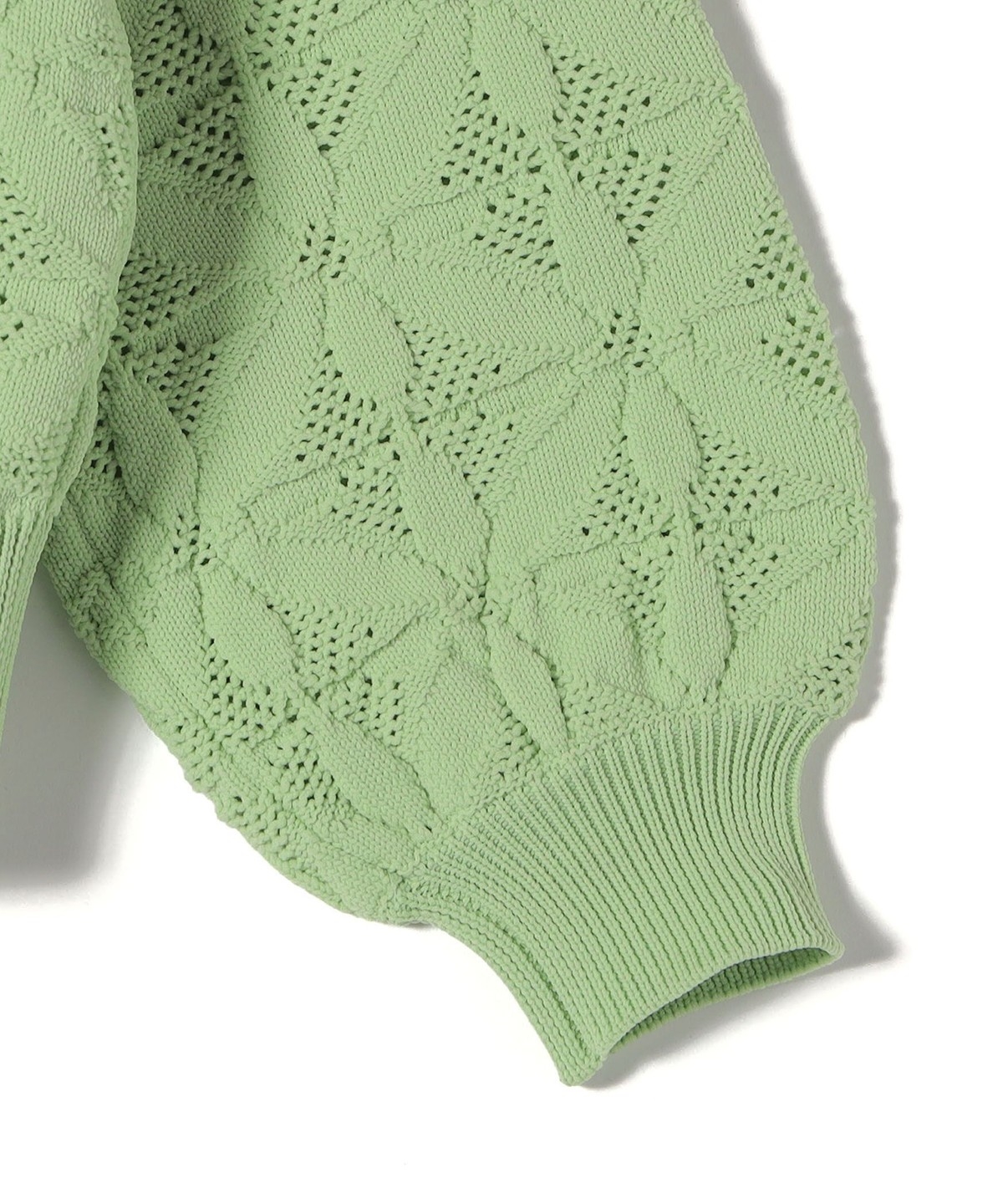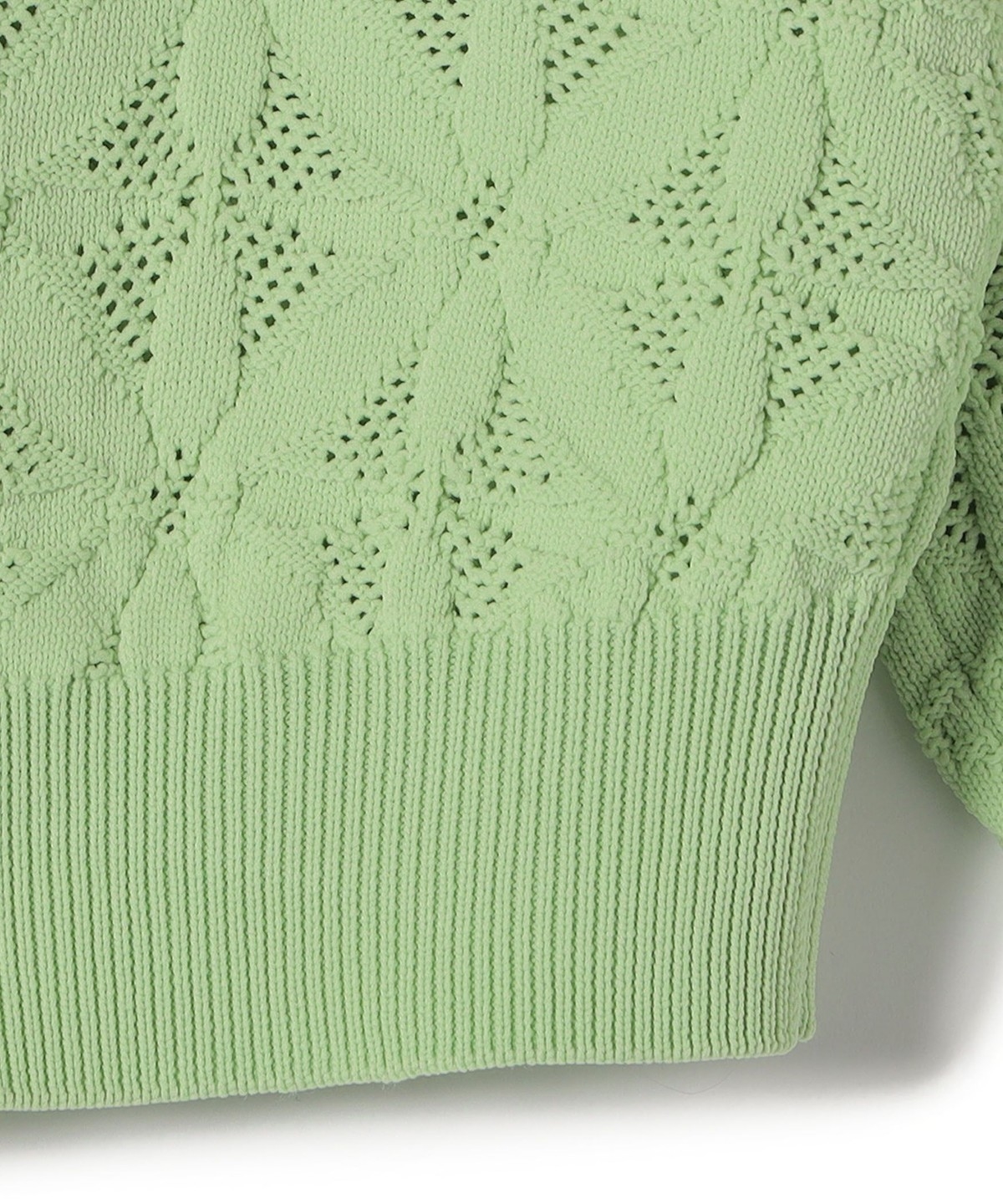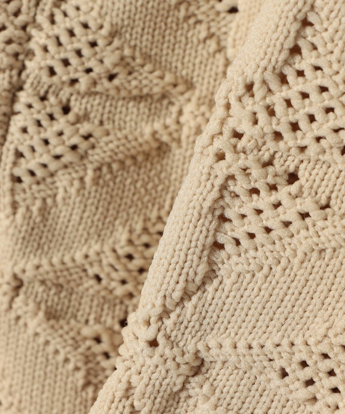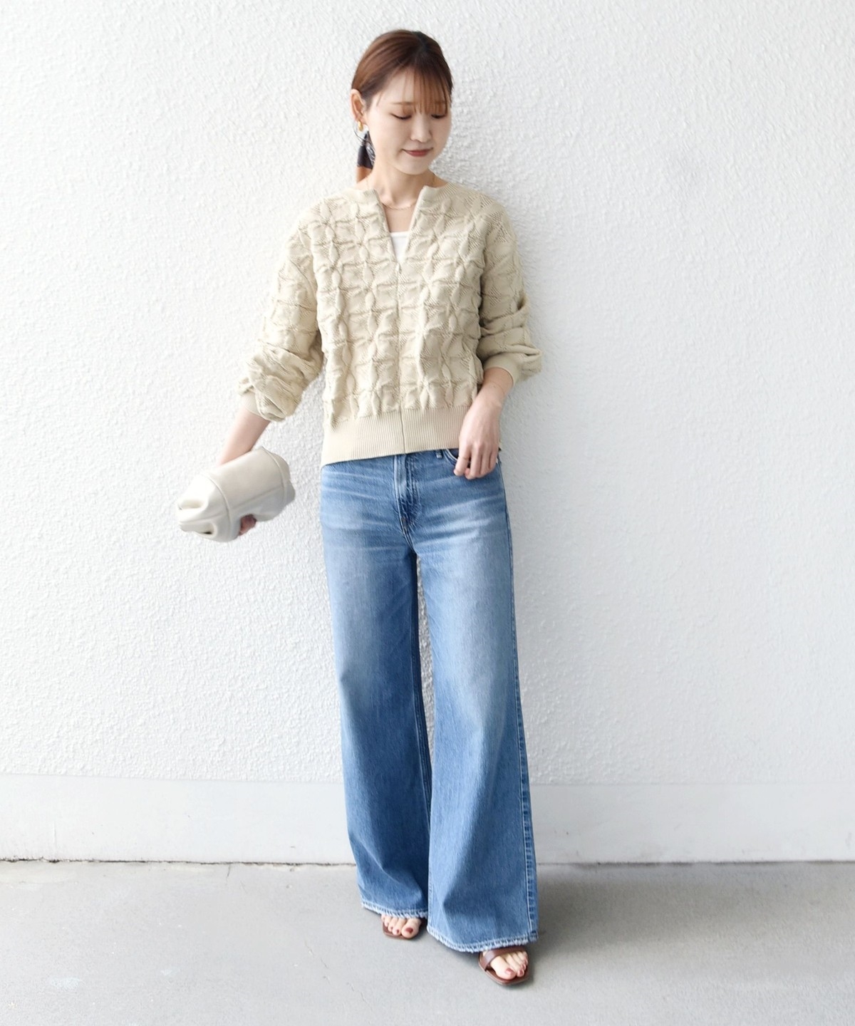お花モチーフが春らしく、ニットならではの表面感で大人っぽい雰囲気に仕上がっています。