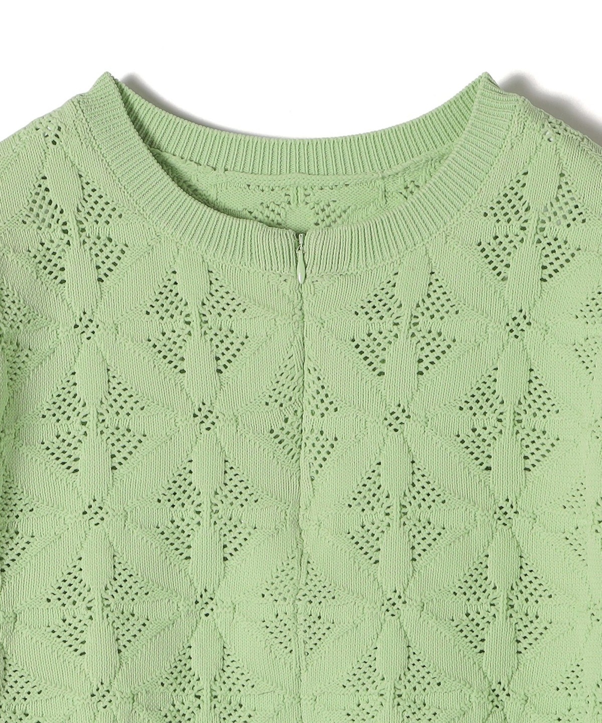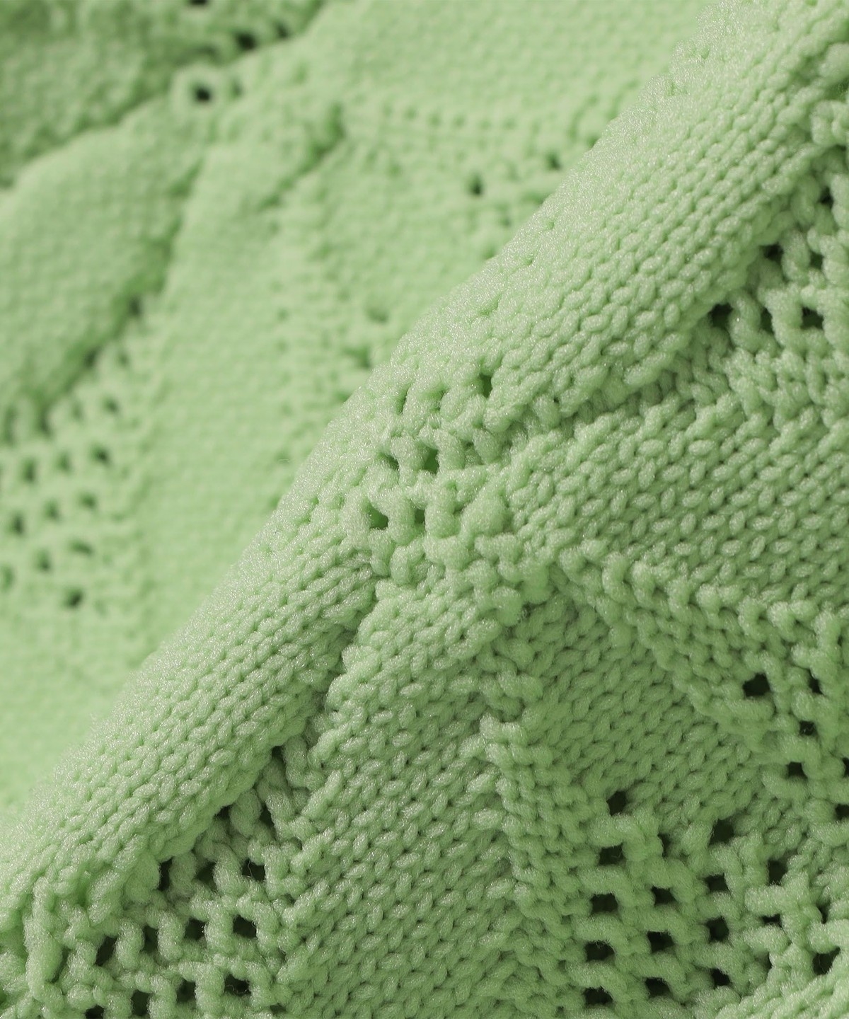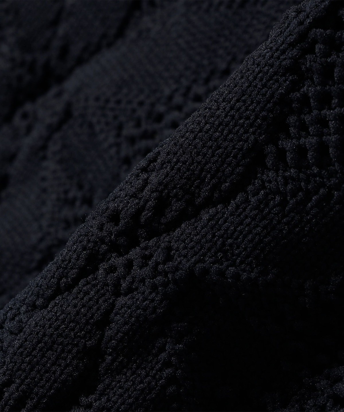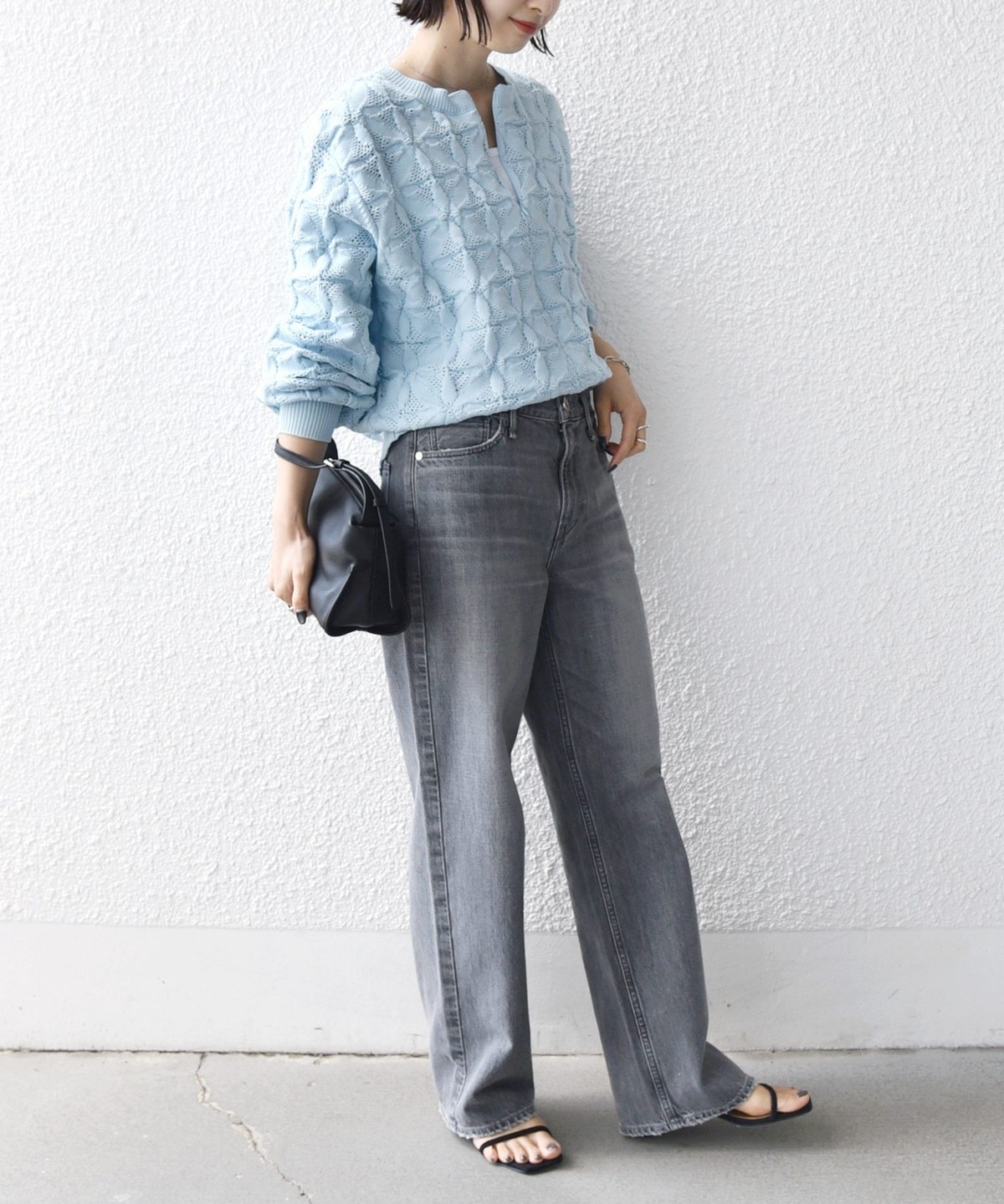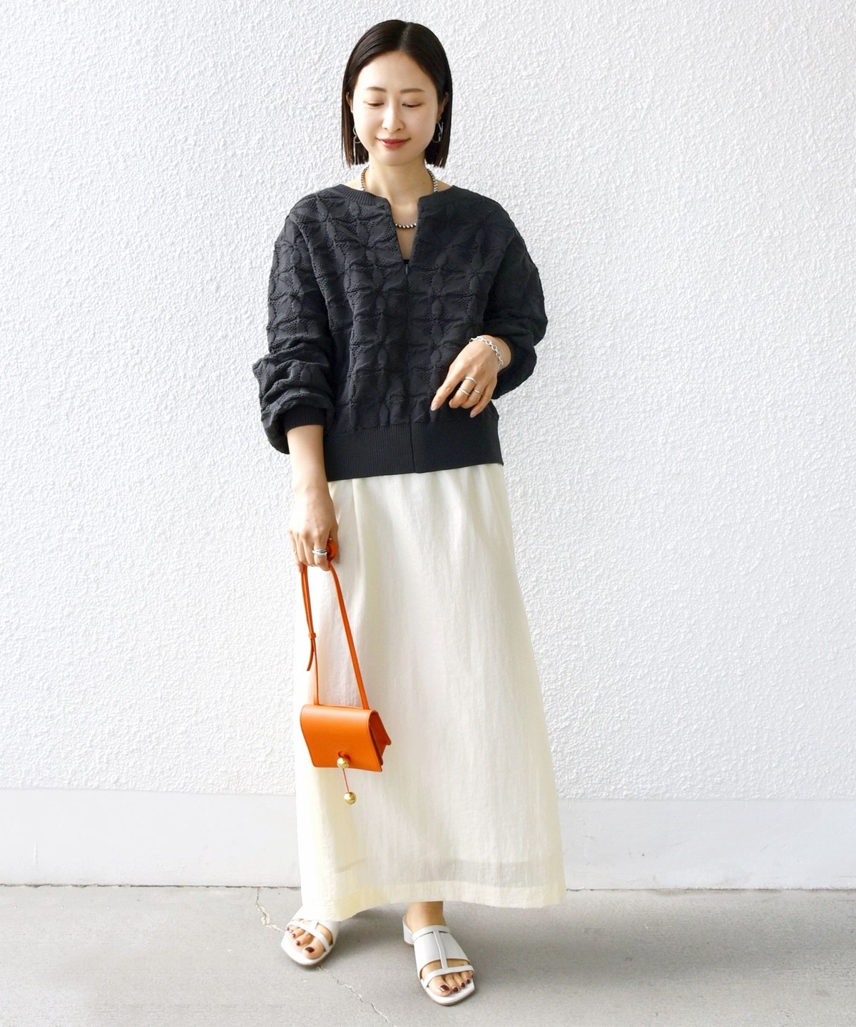 お花モチーフが春らしく、ニットならではの表面感で大人っぽい雰囲気に仕上がっています。