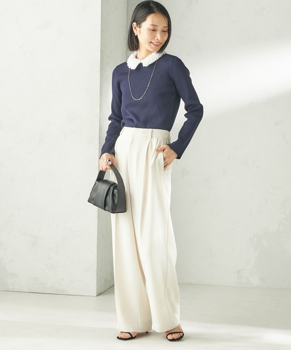 また、衿を外しせばシンプルなクルーリブニットにもなるため、着回しの幅が広がります。