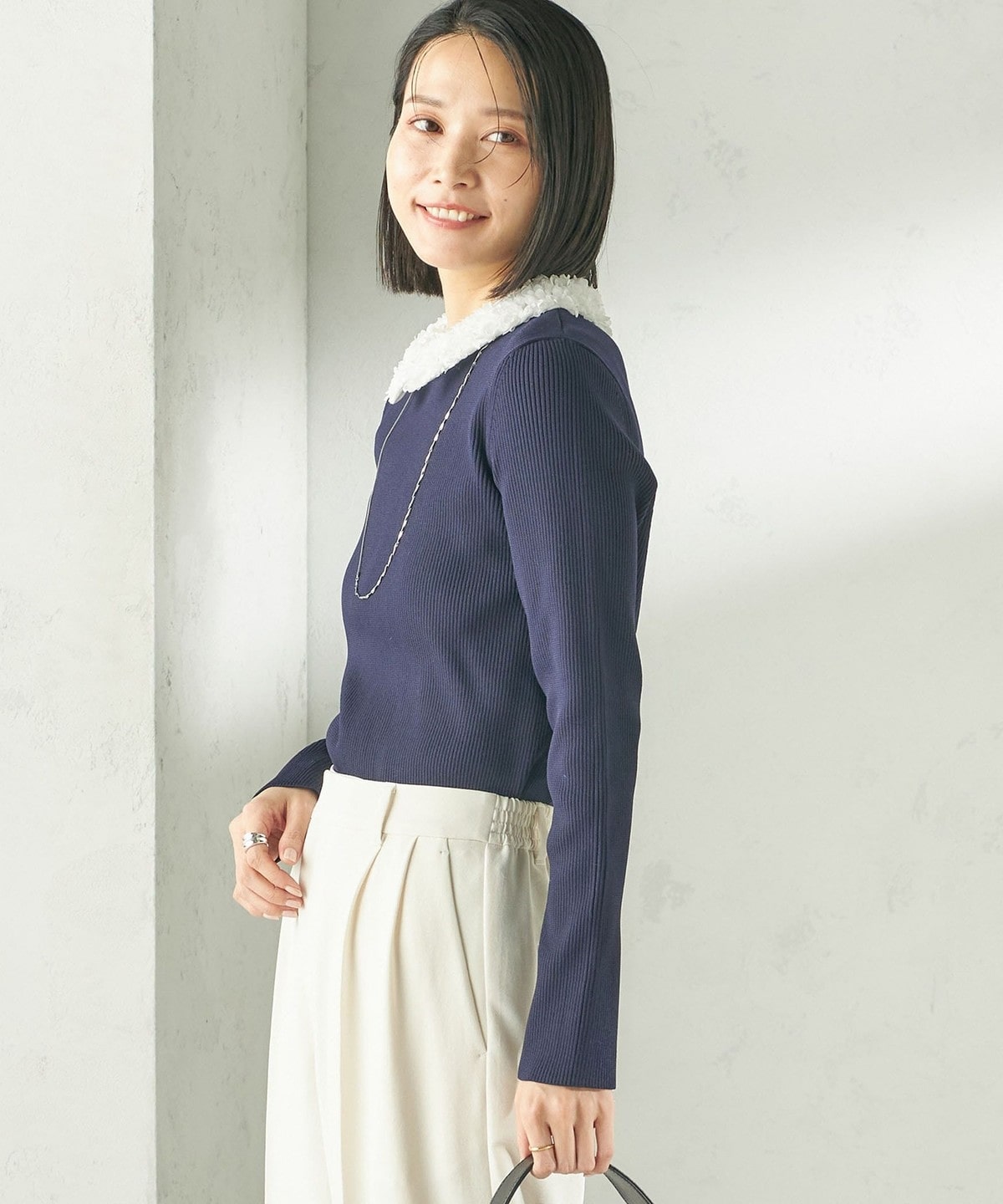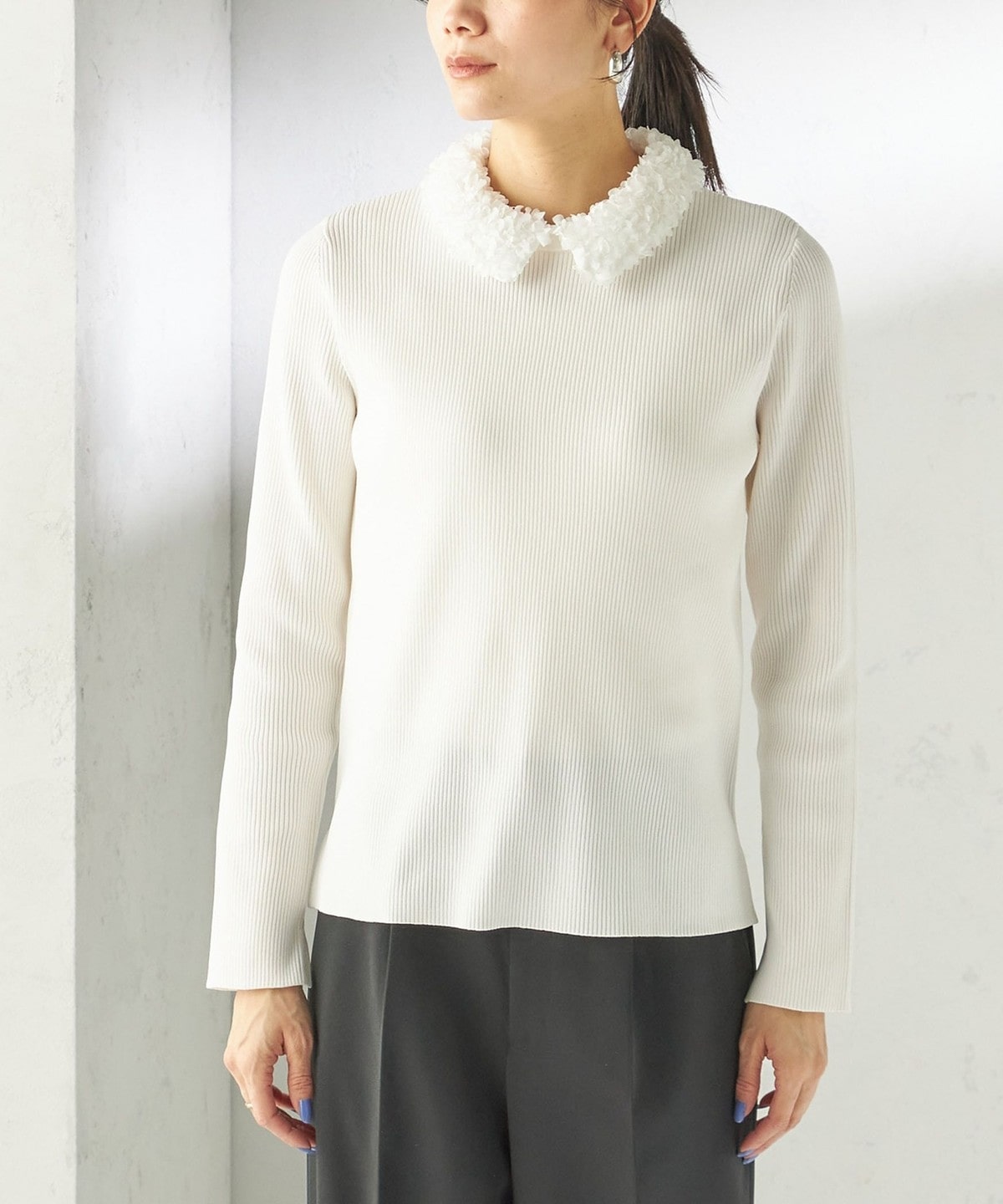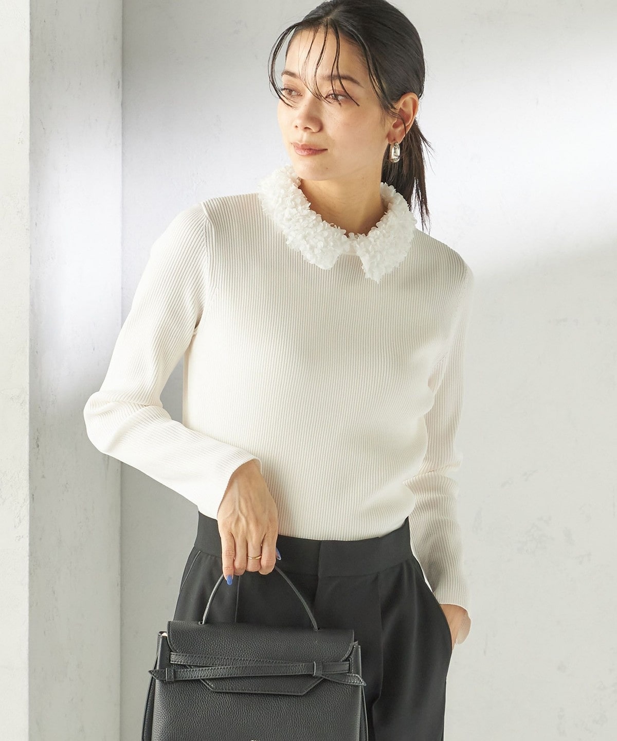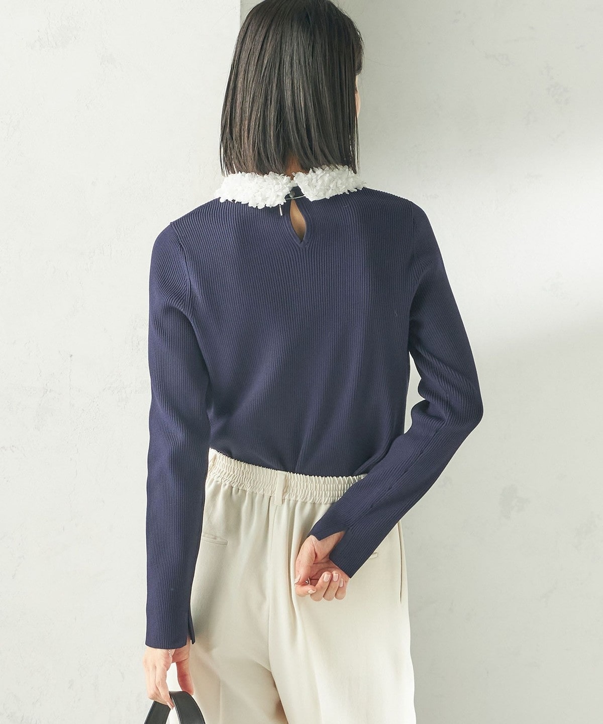 また衿は取り外しが可能で、シンプルなリブニットとして着られるデザインです。