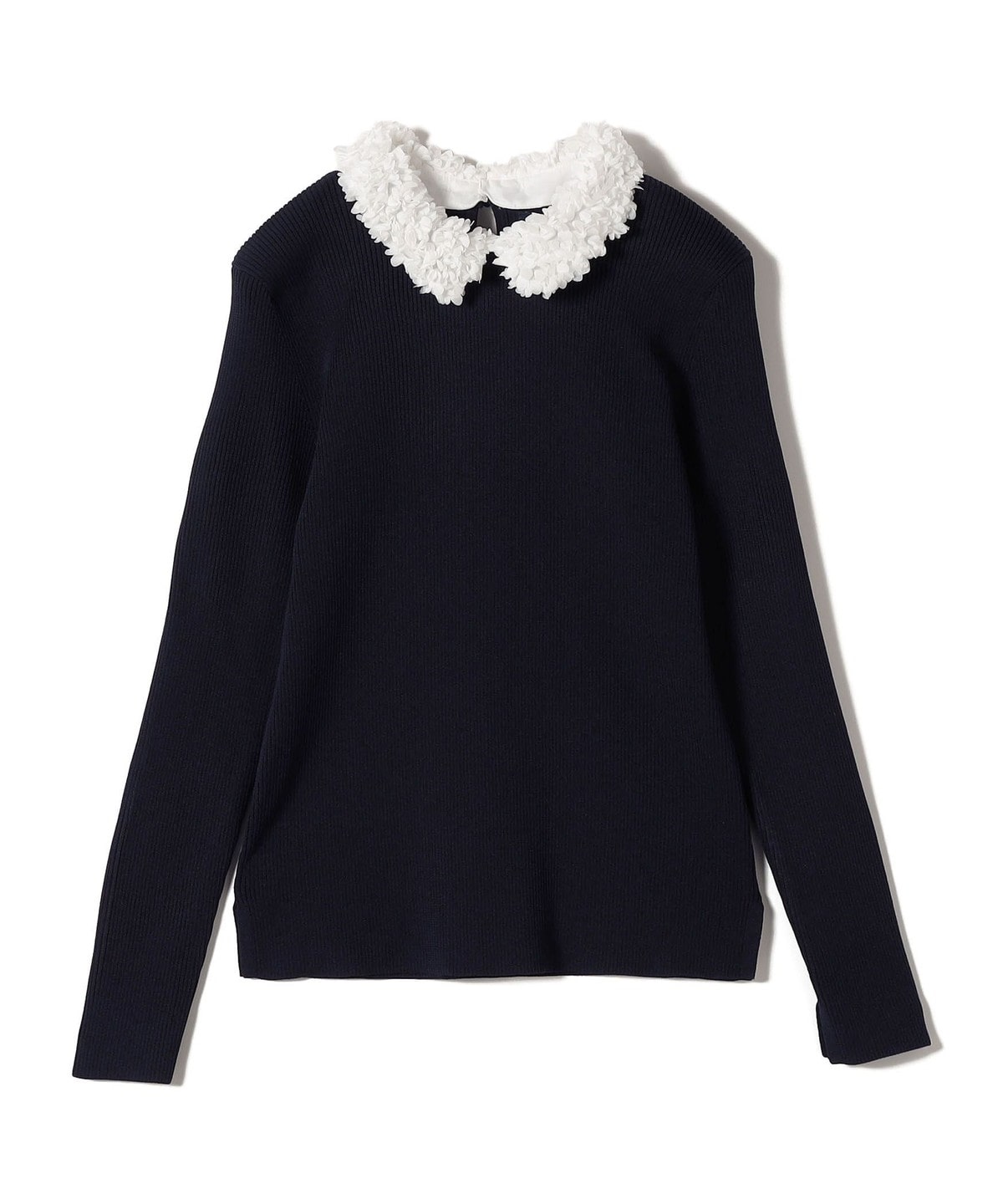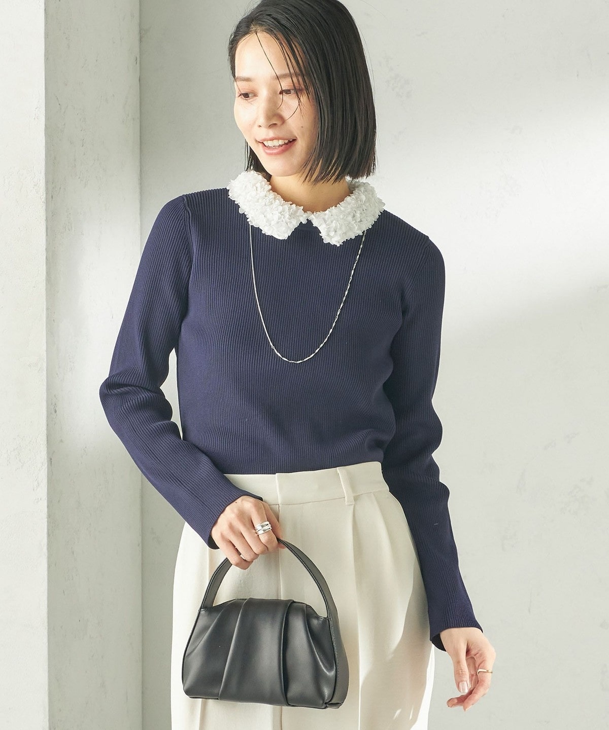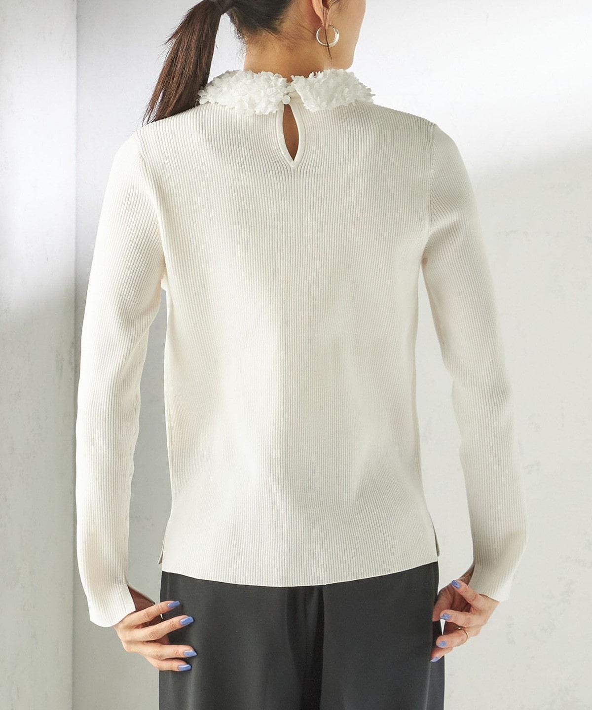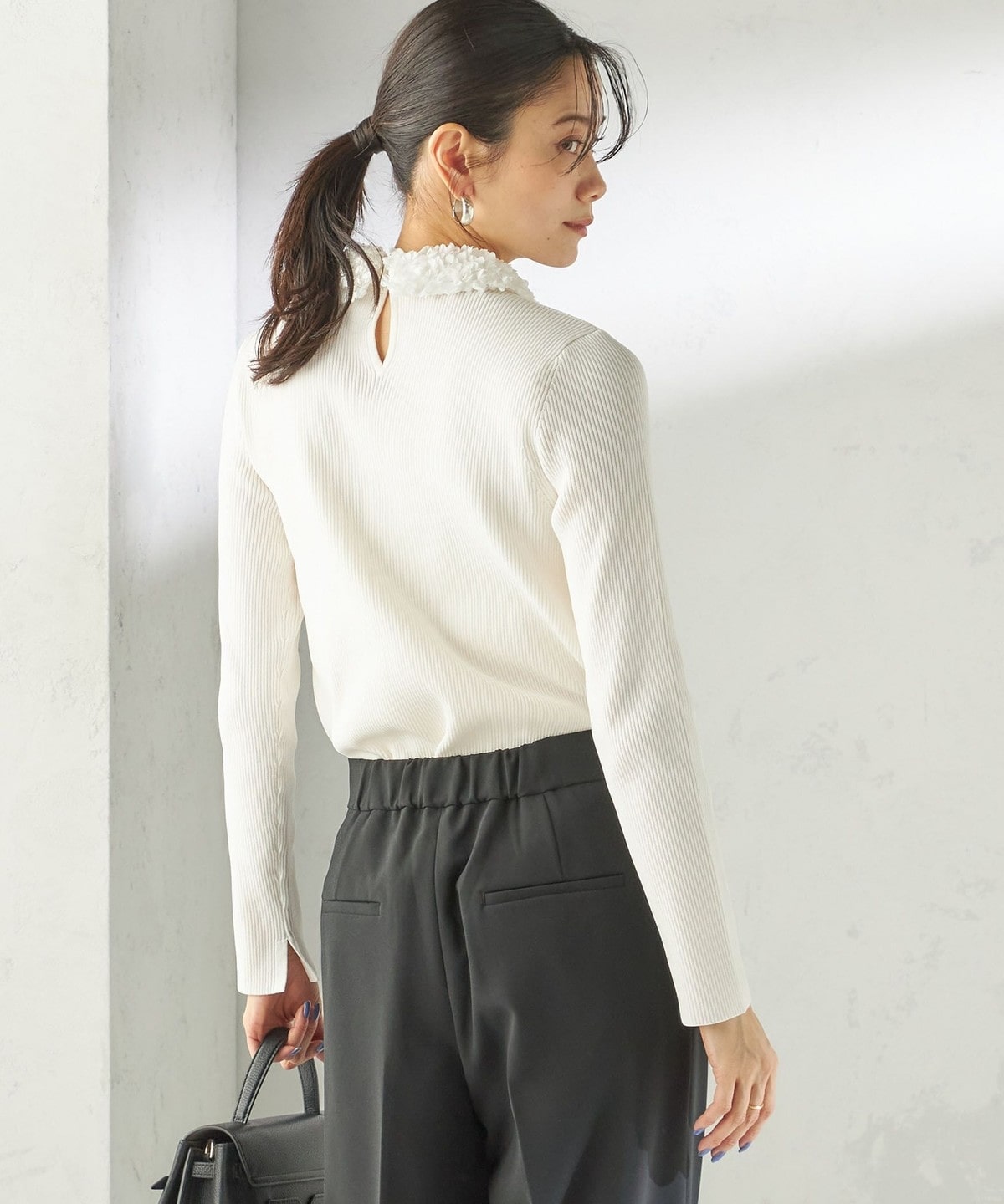 また衿は取り外しが可能で、シンプルなリブニットとして着られるデザインです。