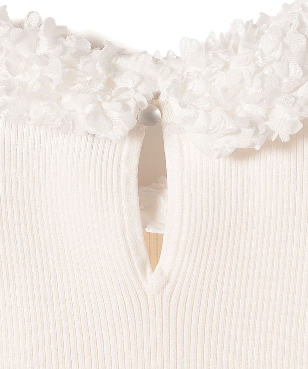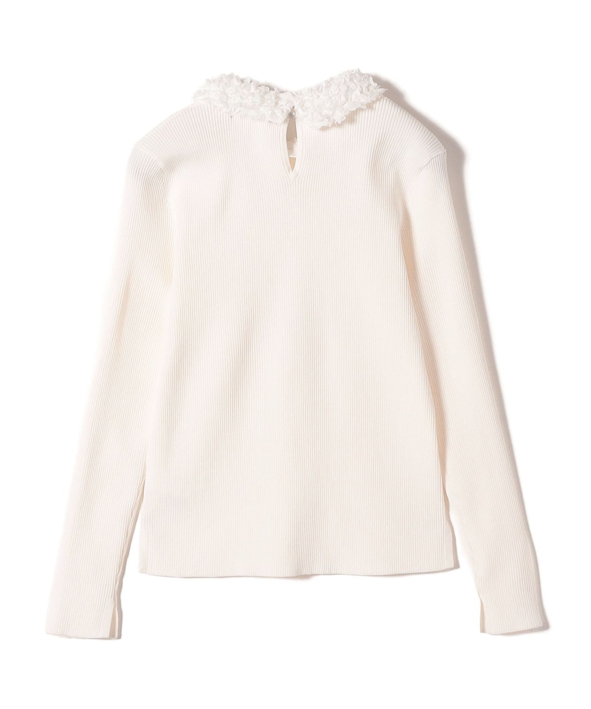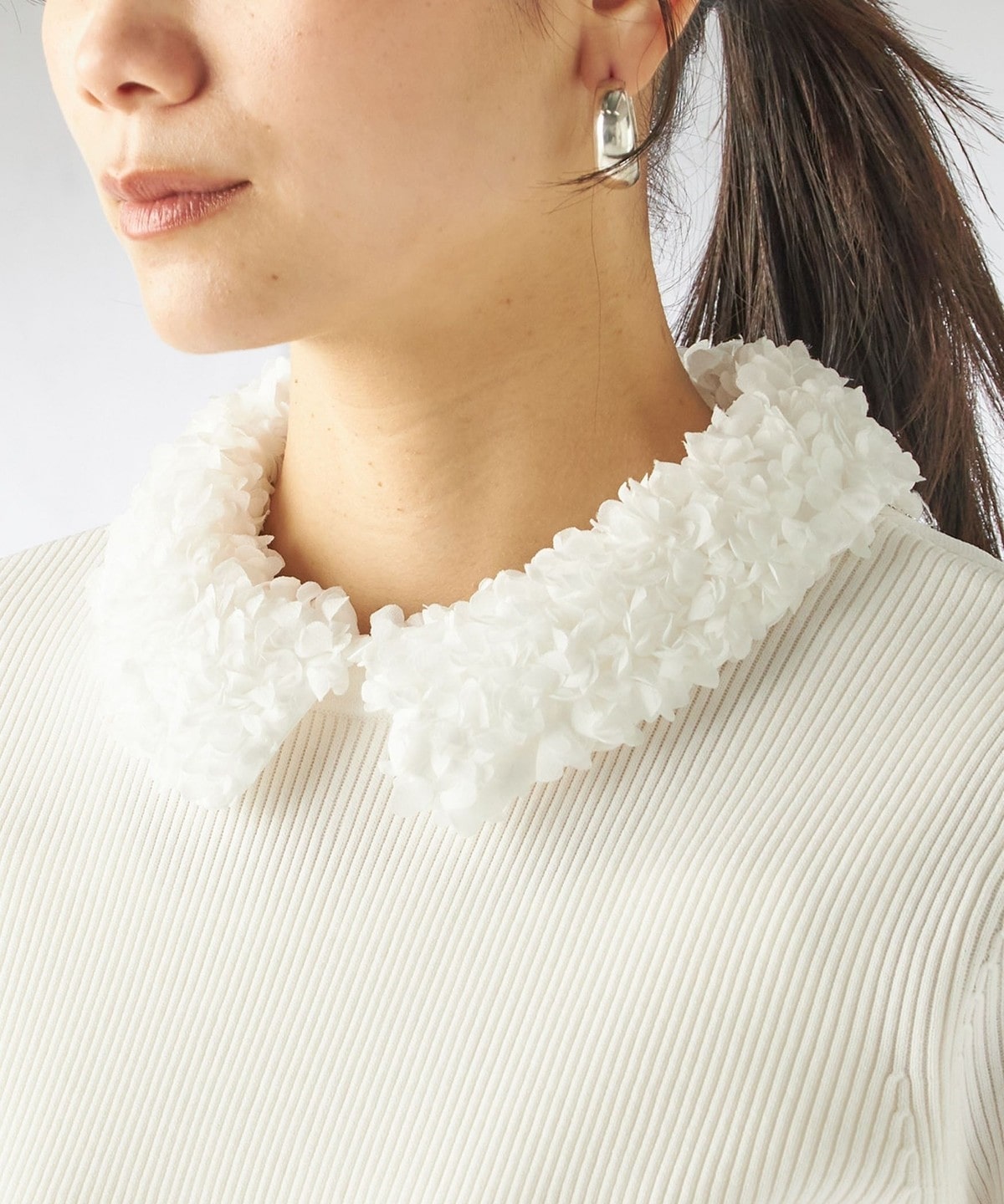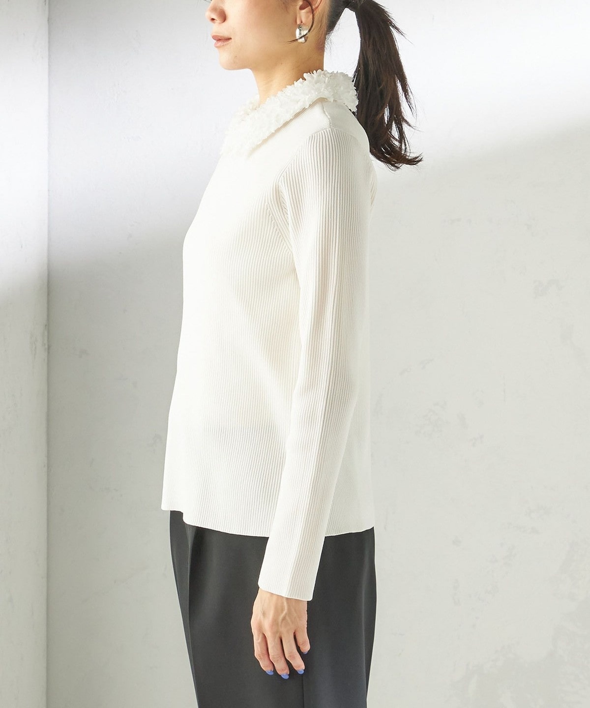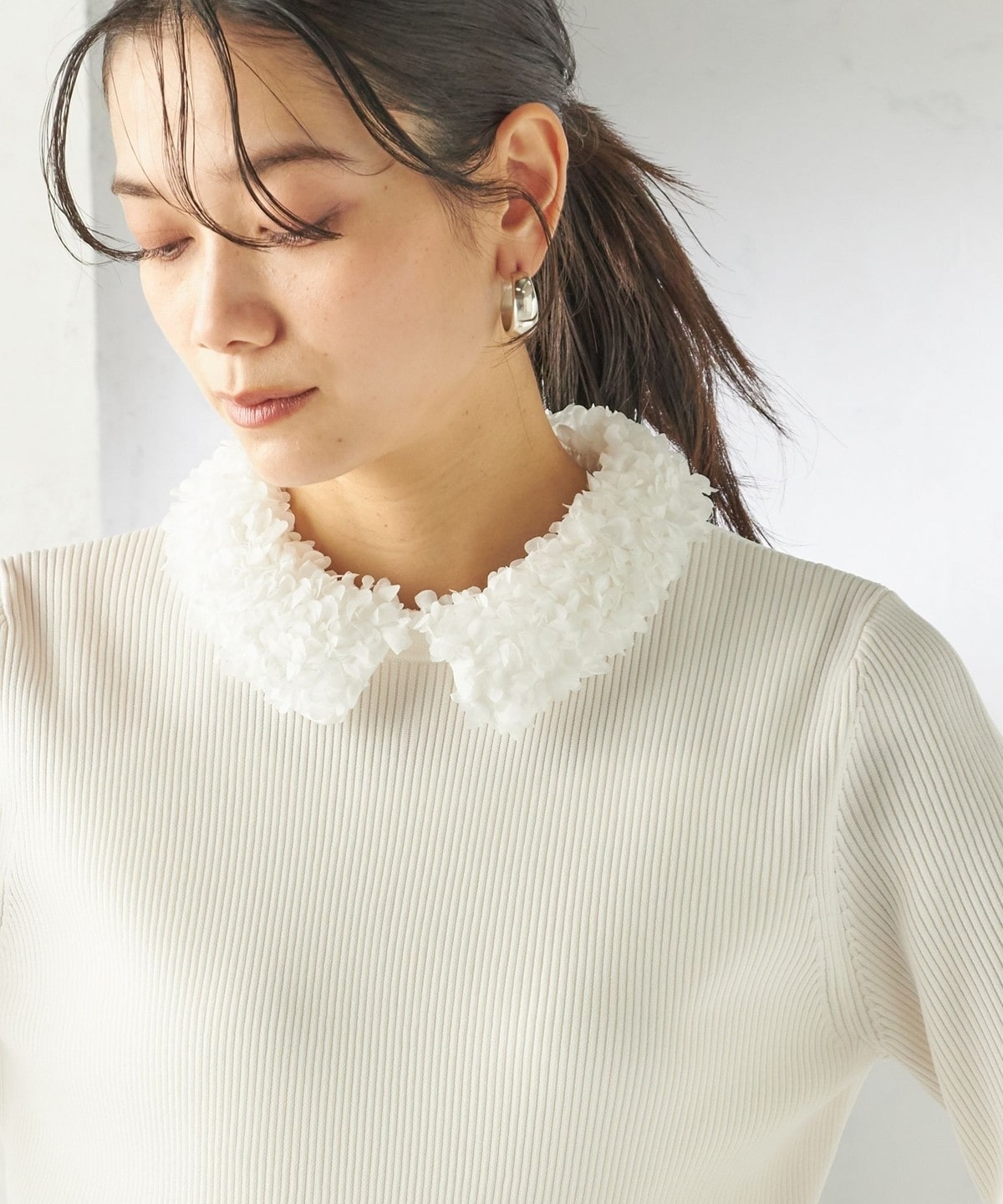 1. 〈手洗い可能〉2WAY ポリエステル フリル カラー リブ ニット オフホワイト