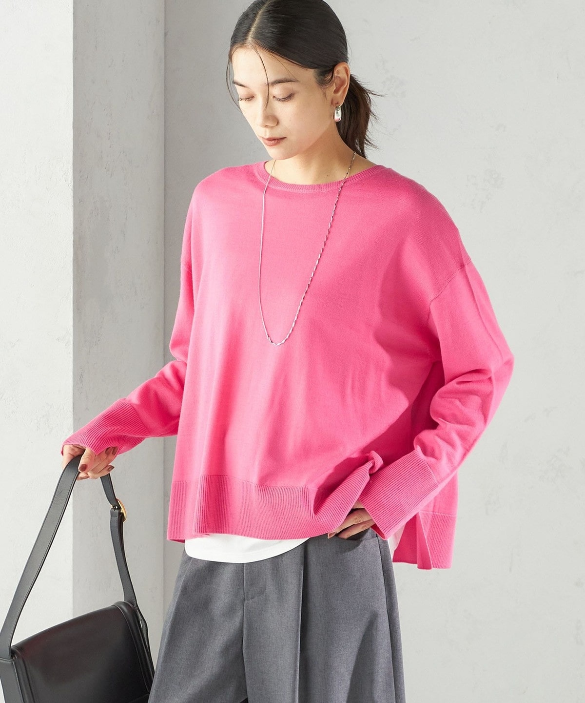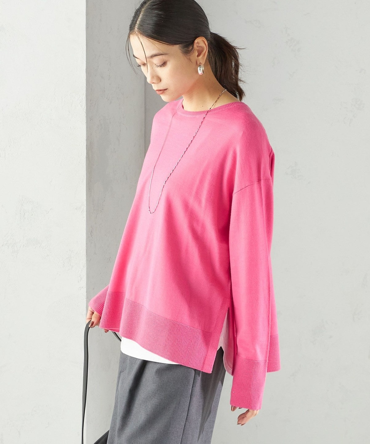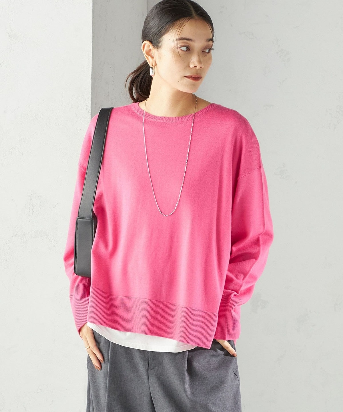 3. 〈手洗い可能〉14G ウォッシャブル クルーネック ニット プルオーバー ピンク