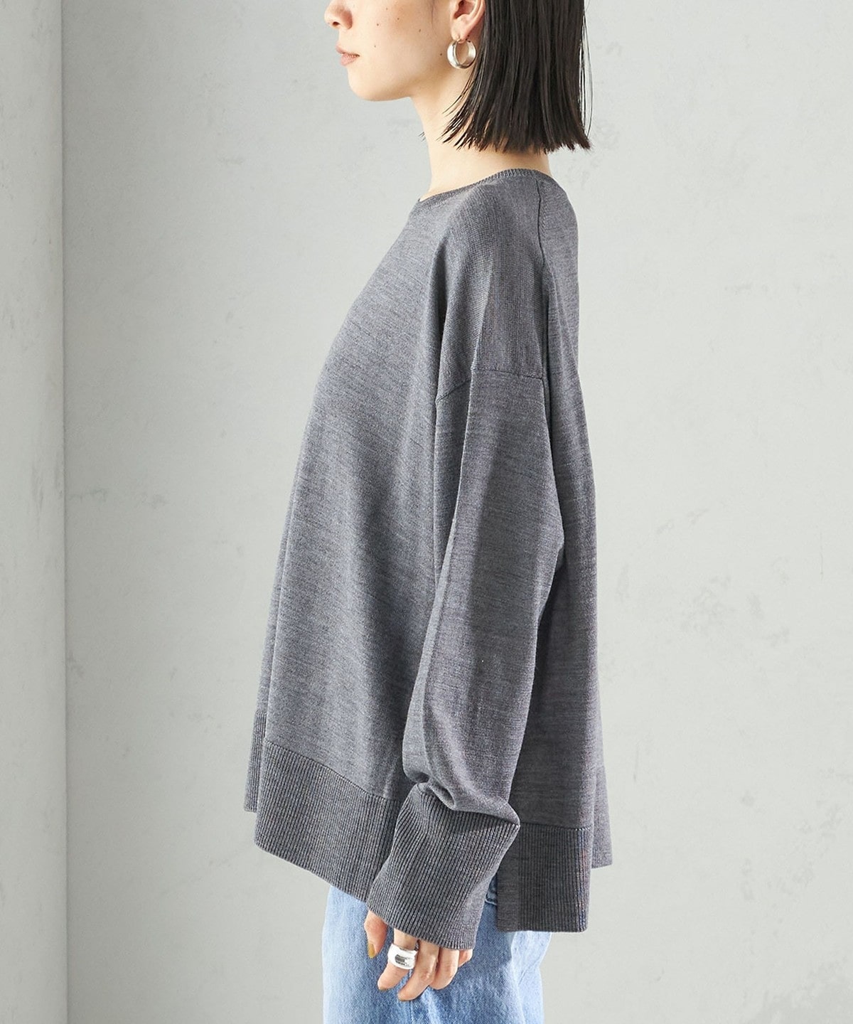 襟ぐりの開きにこだわった14ゲージのクルーネックプルオーバーです。