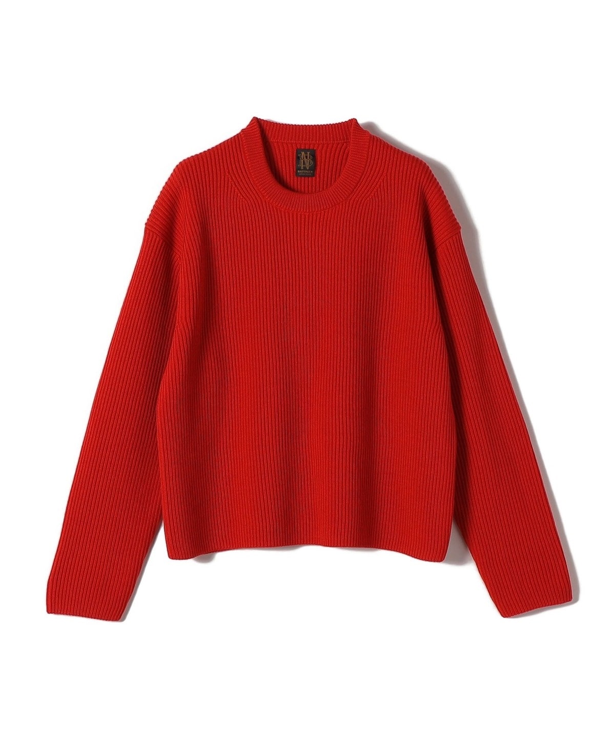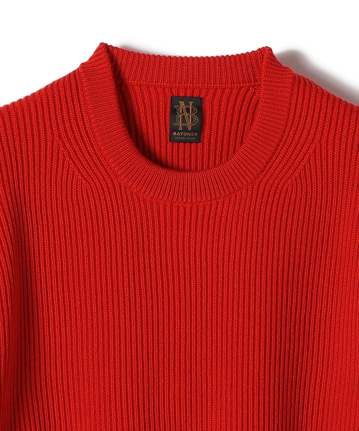 2. BATONER:ソリッド ウール リブ クルーネック レッド