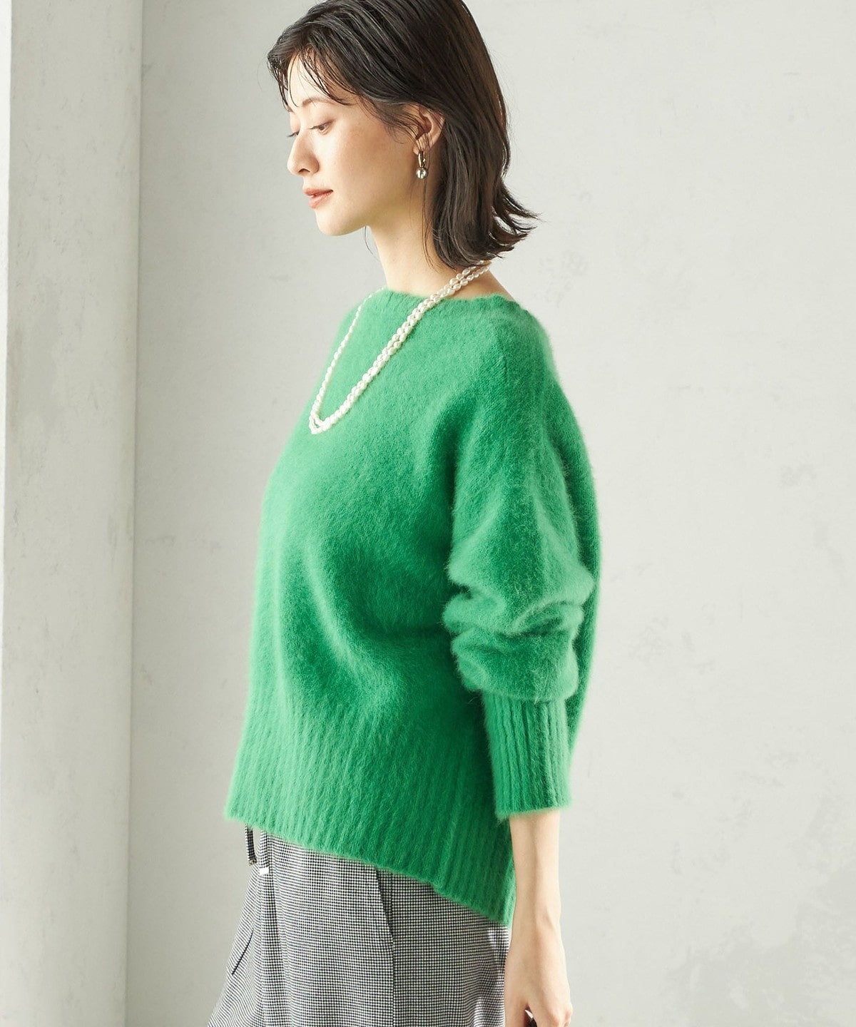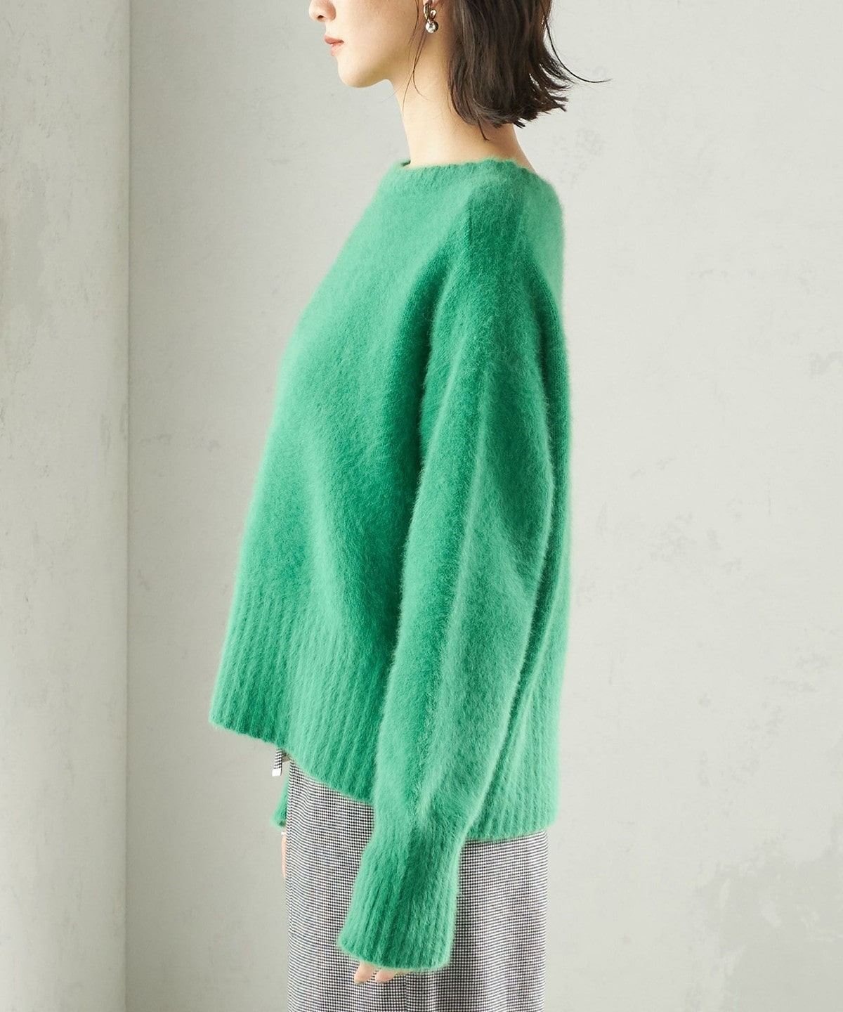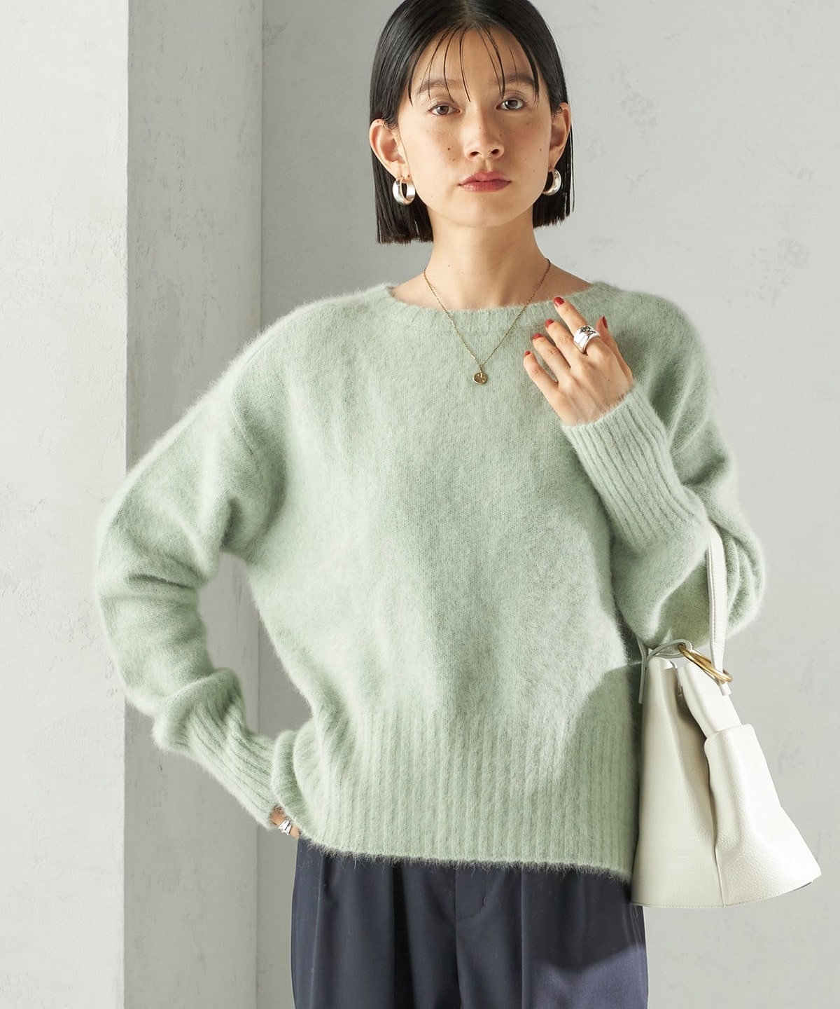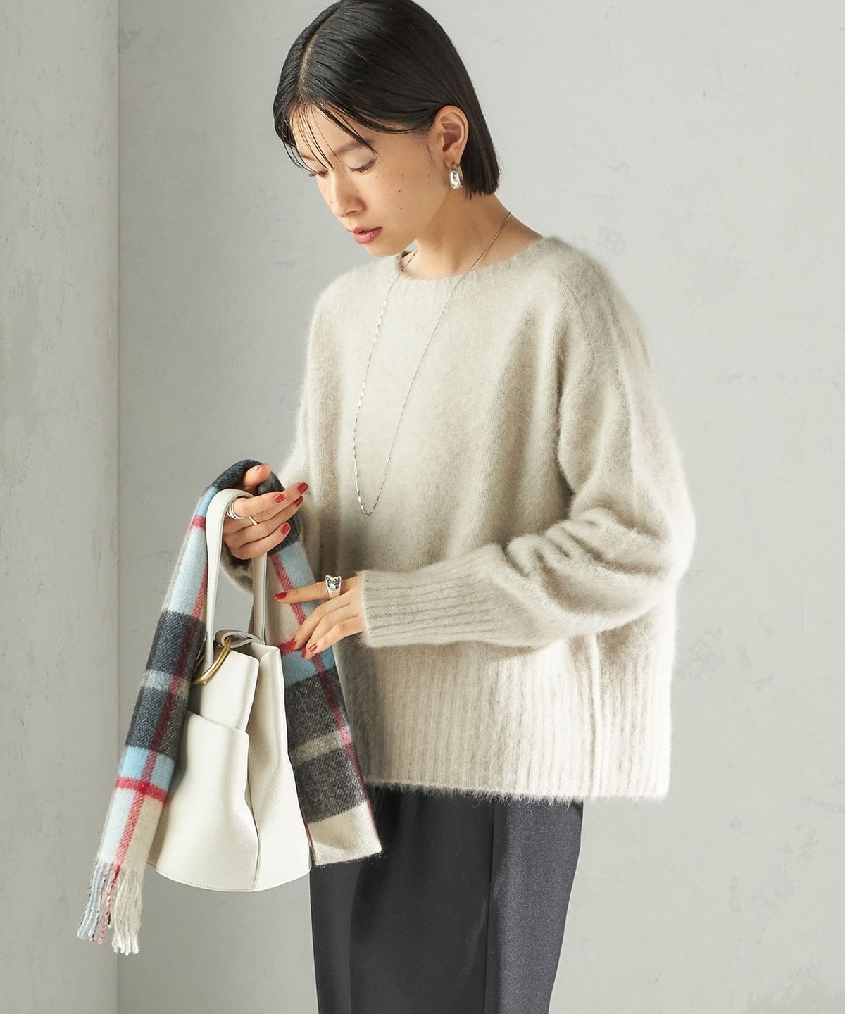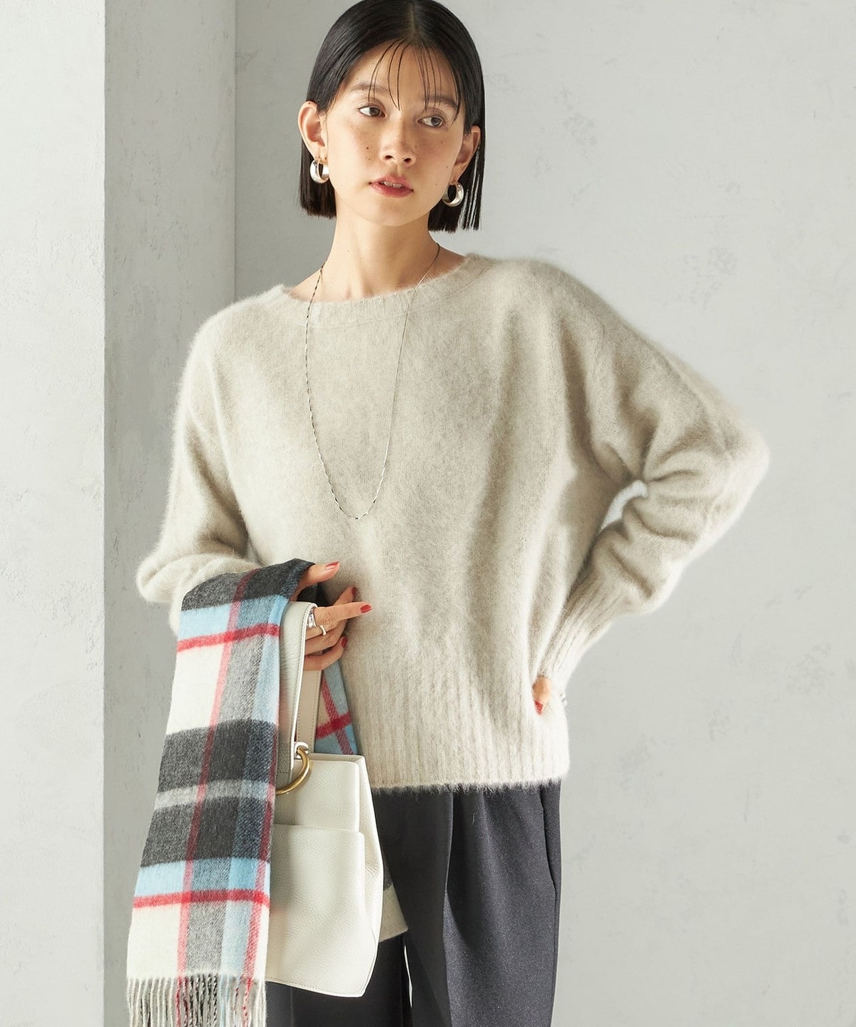 短めのワイドなサイズ感で、抜け感のある襟ぐりのニットプルオーバー。