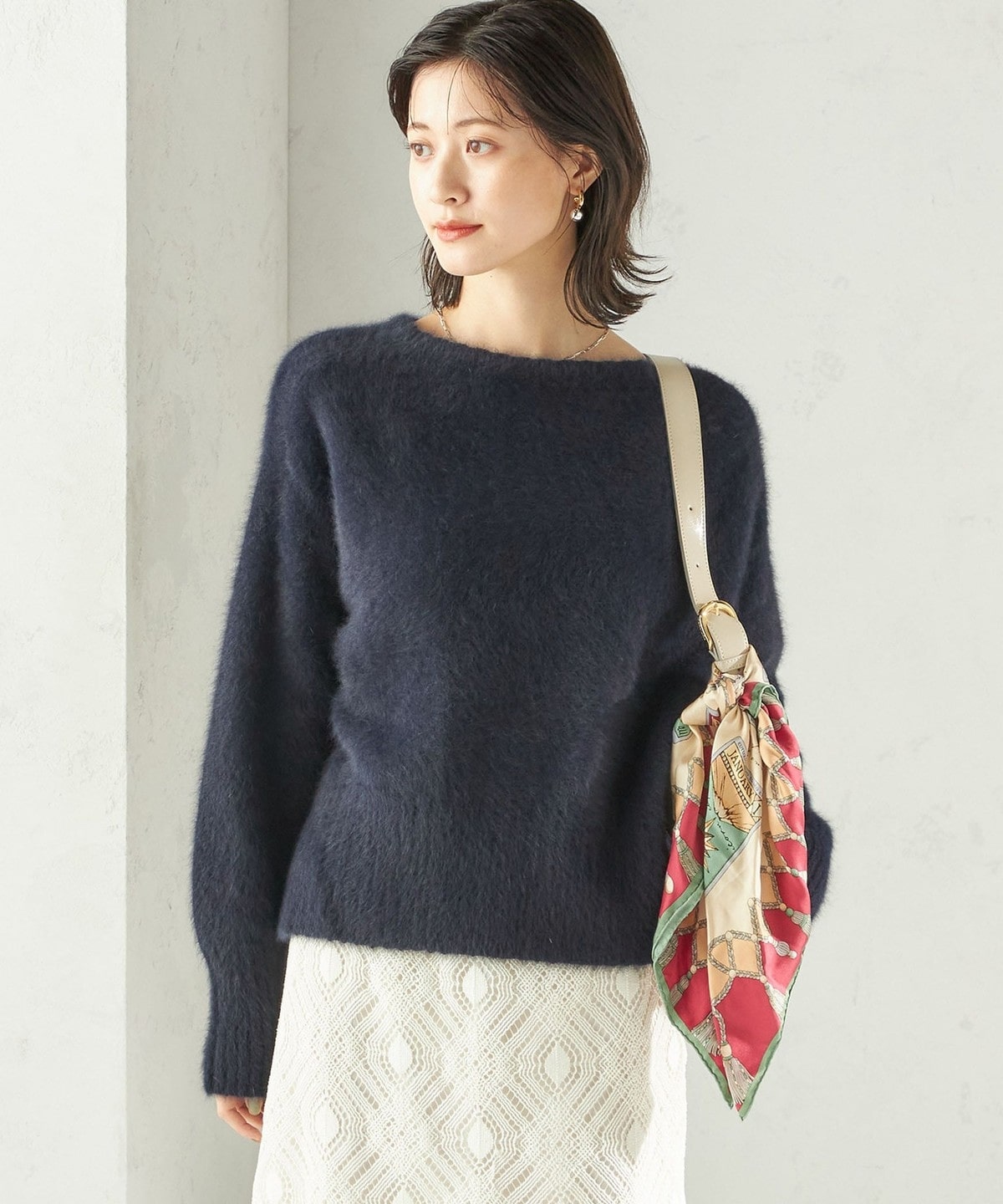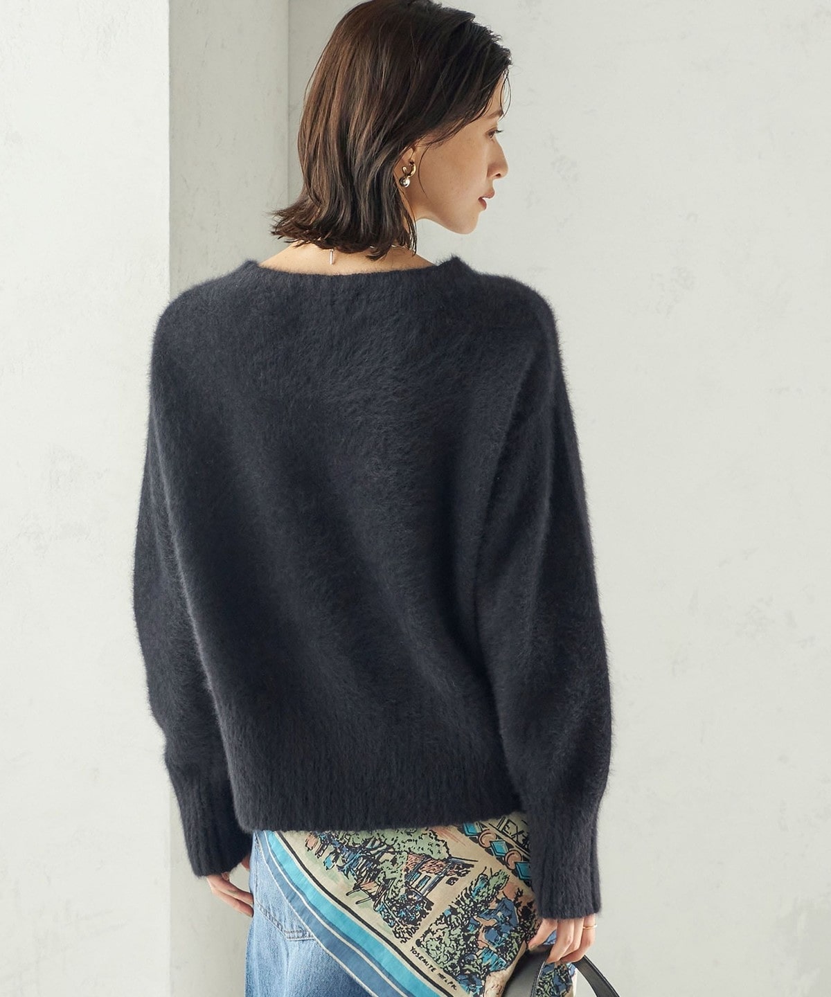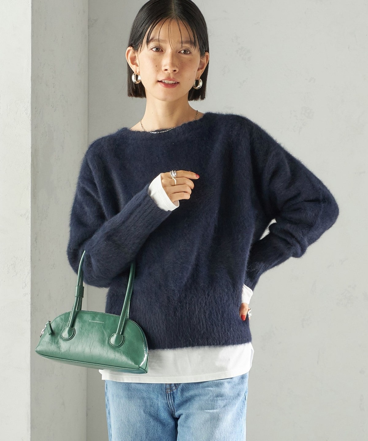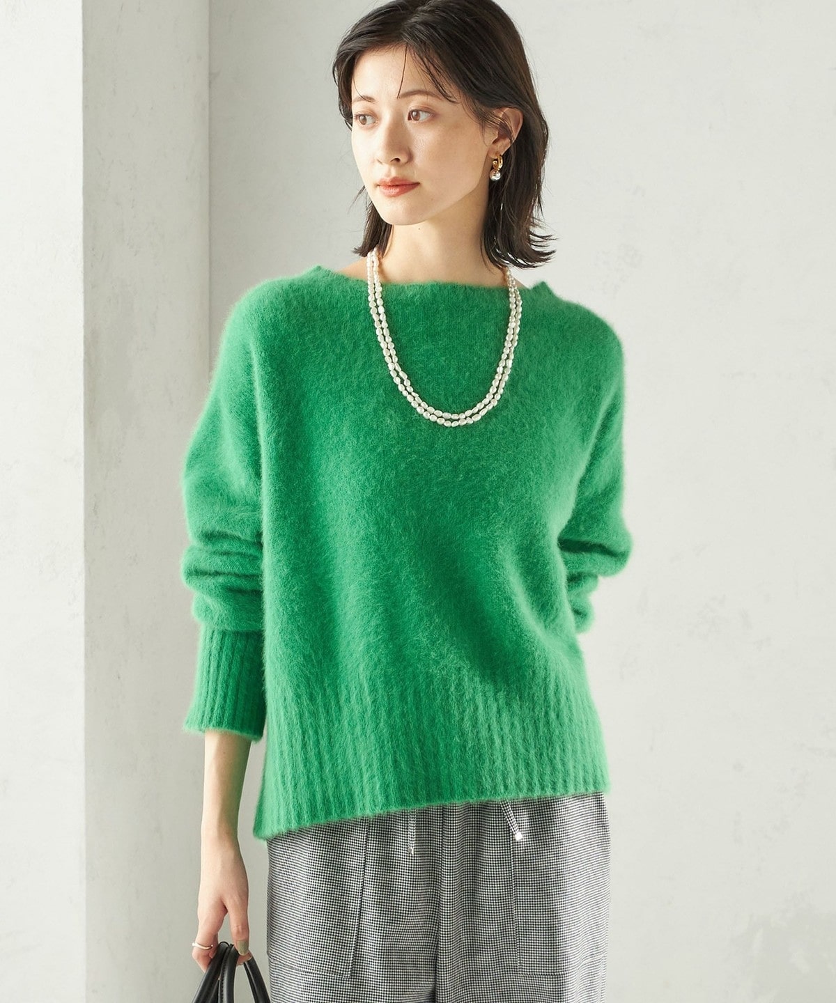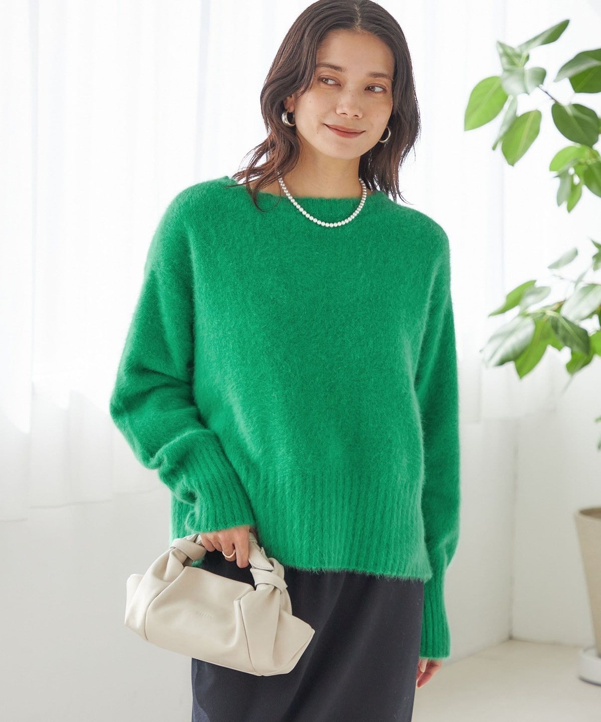 短めのワイドなサイズ感で、抜け感のある襟ぐりのニットプルオーバー。