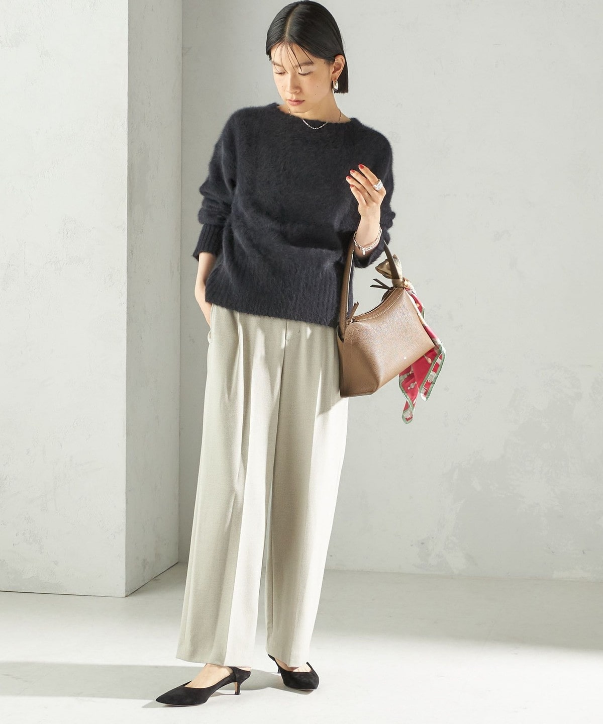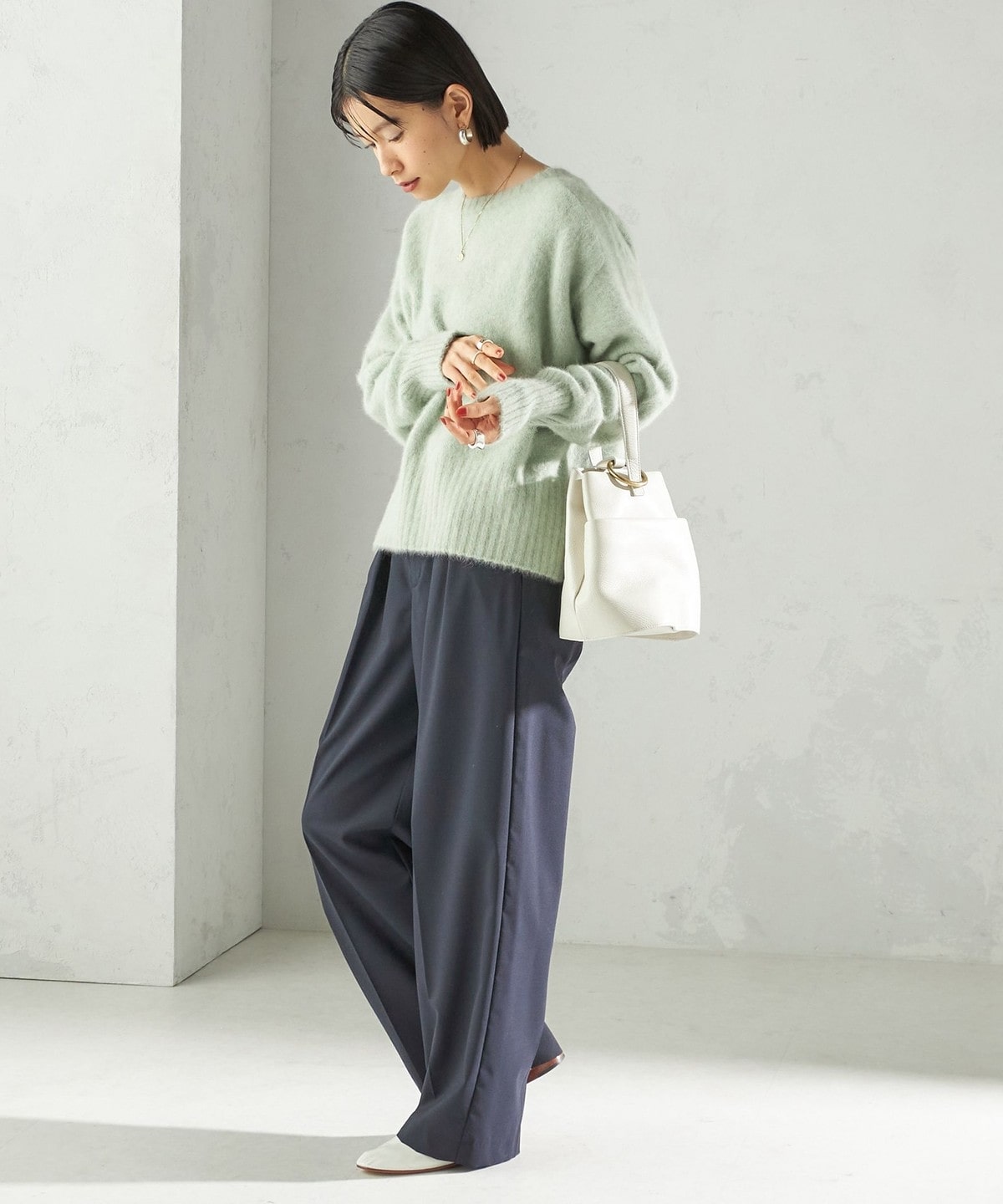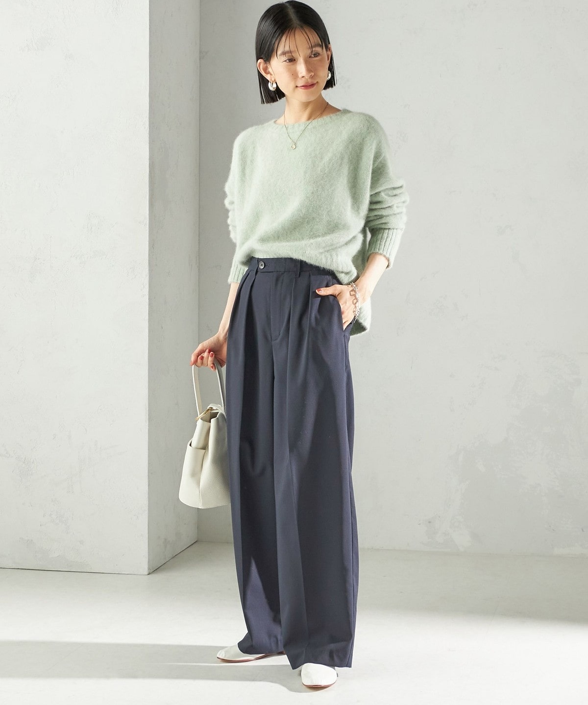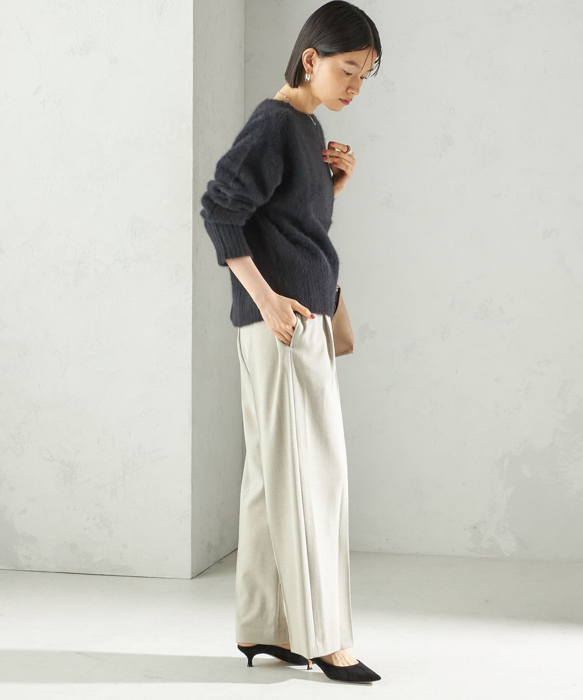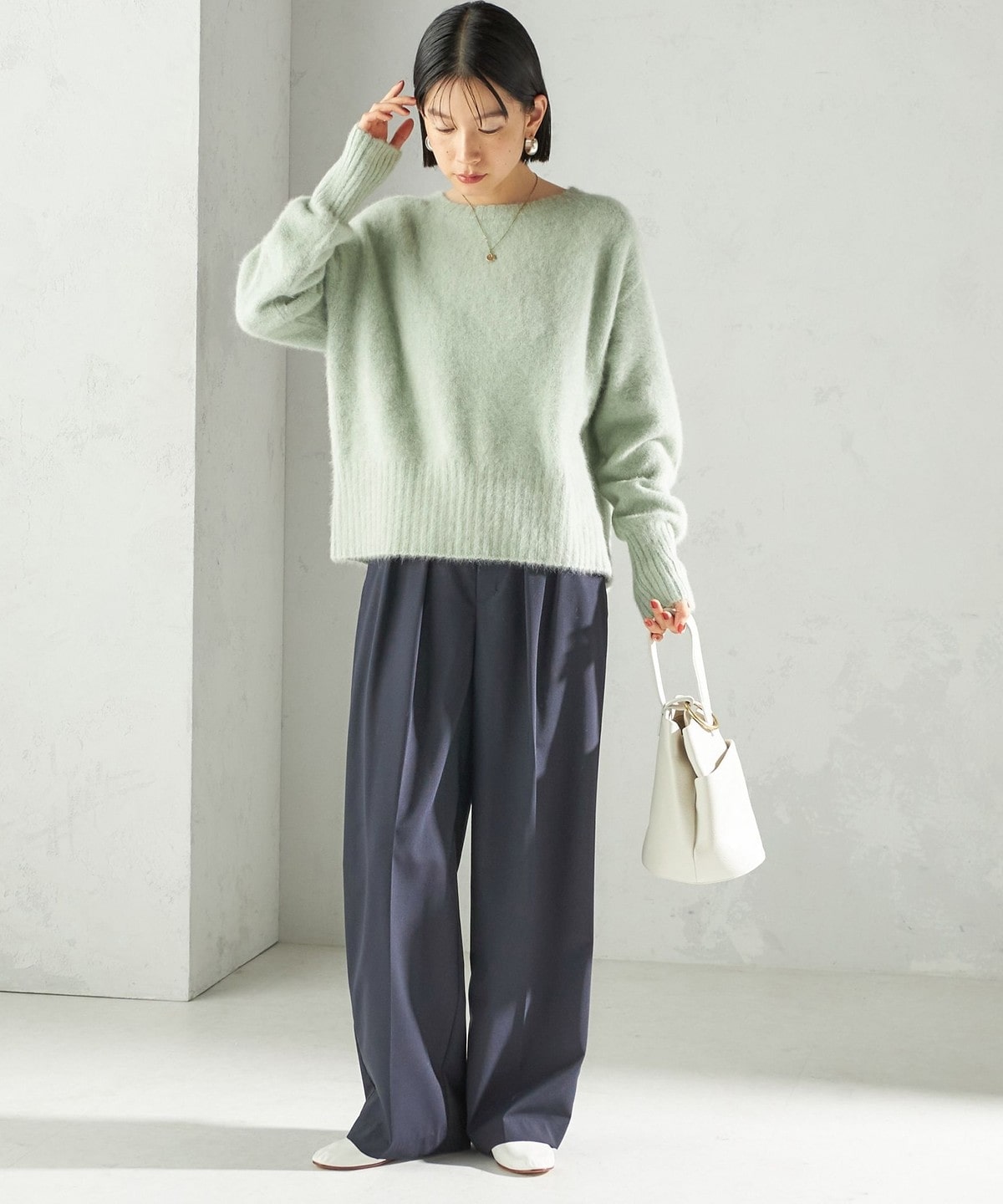 癖のない編地なので、ボトムのテイストを選ばない着回しの効く一着です。