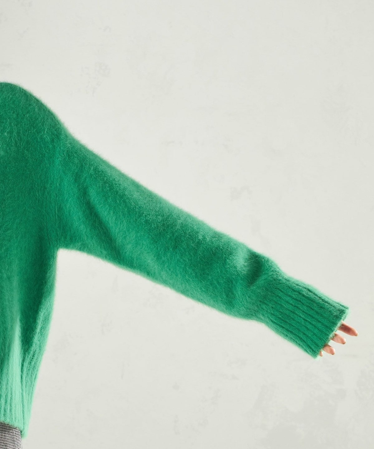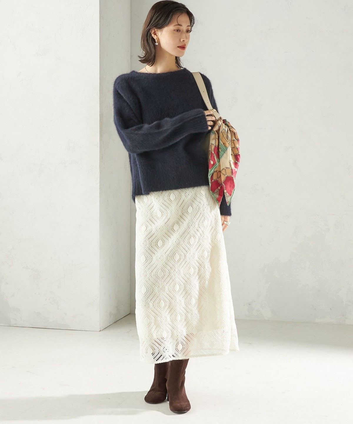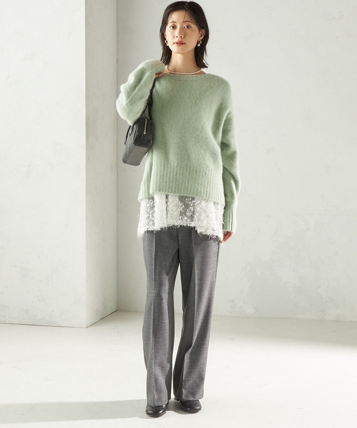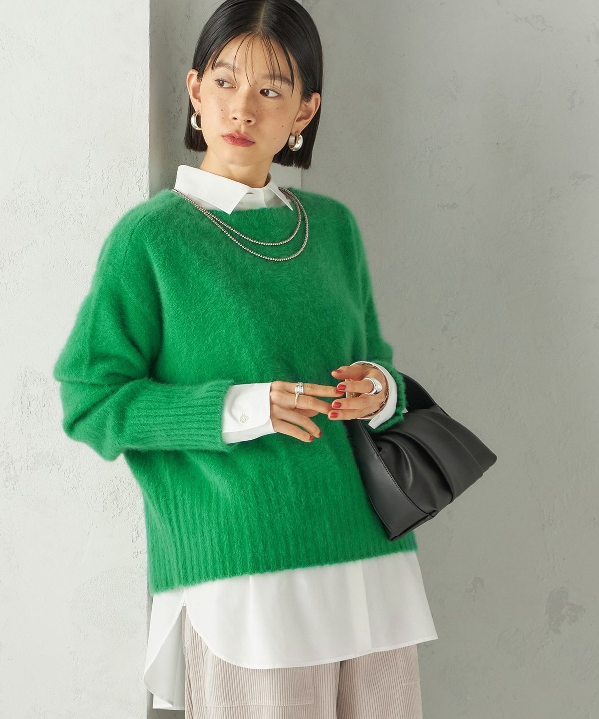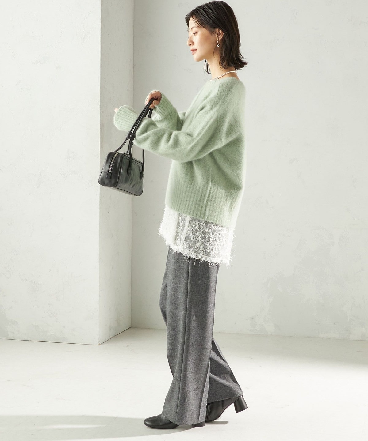 癖のない編地なので、ボトムのテイストを選ばない着回しの効く一着です。
