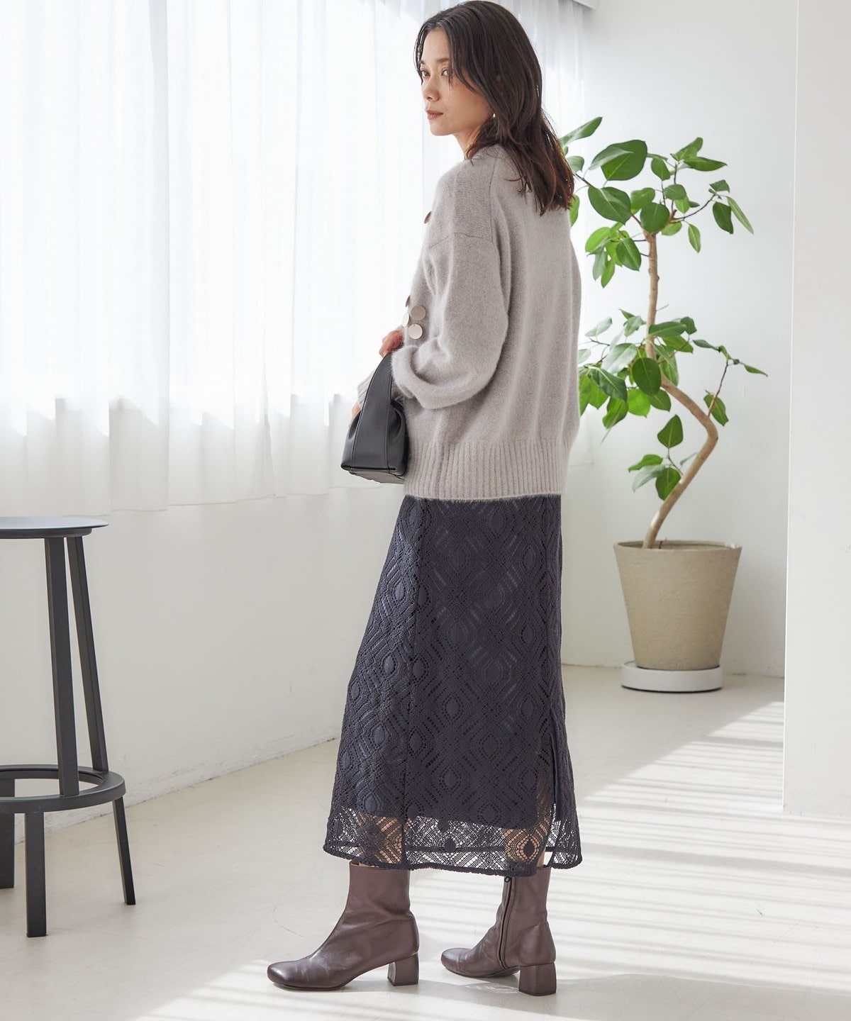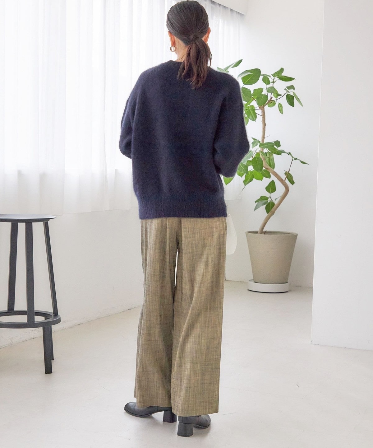 ふわふわですが癖のない編地と深みのあるカラーが高級感ある一枚に仕上がっています。