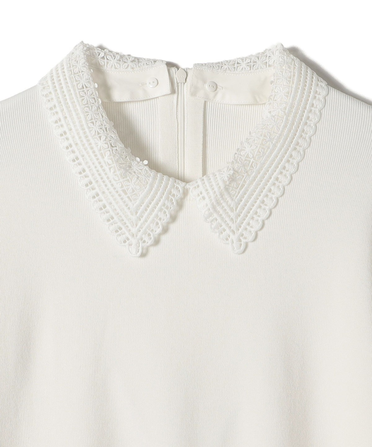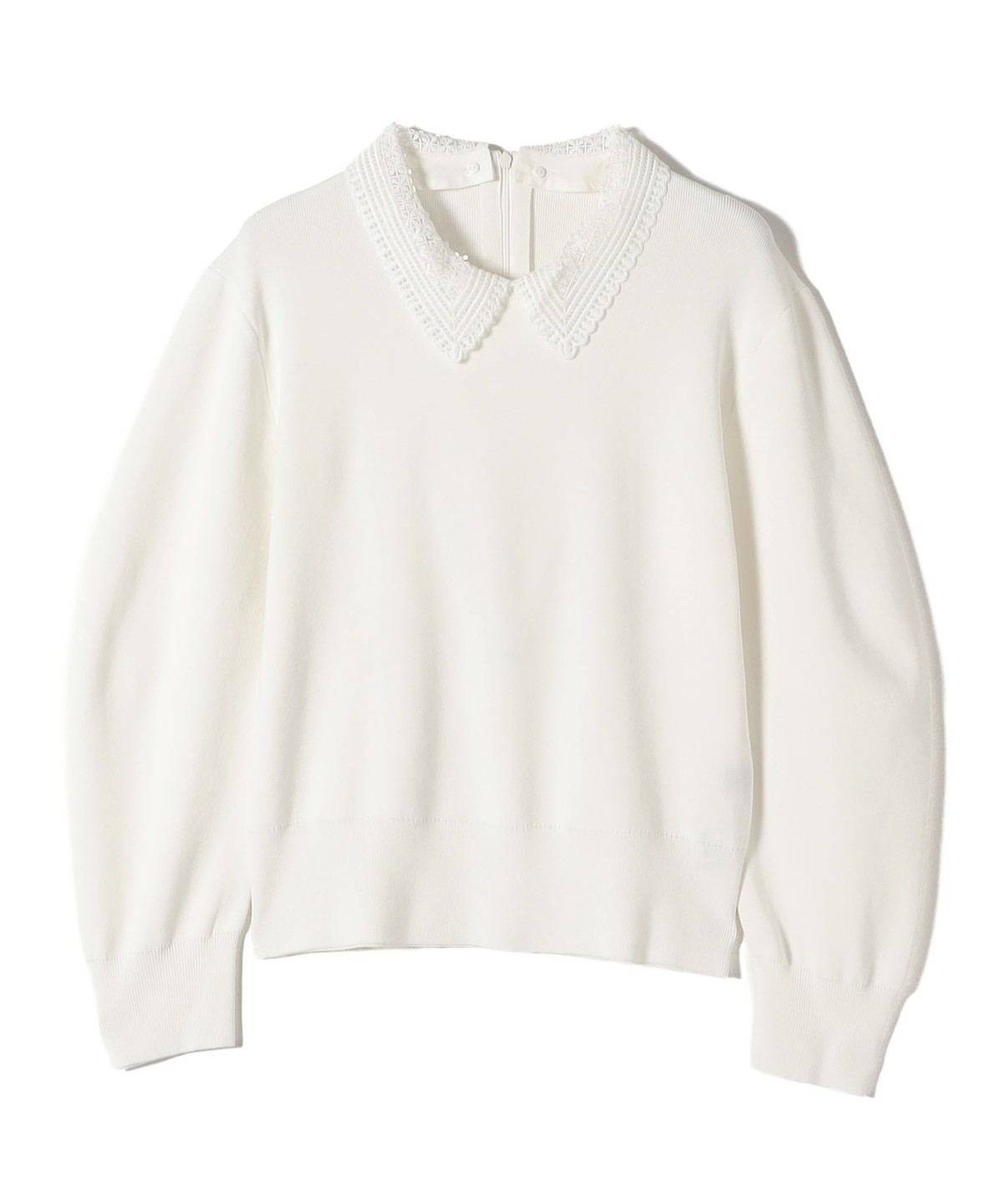 1. SHIPS Primary Navy Label:〈手洗い可能〉シルク混 レース 襟 プルオーバー オフホワイト