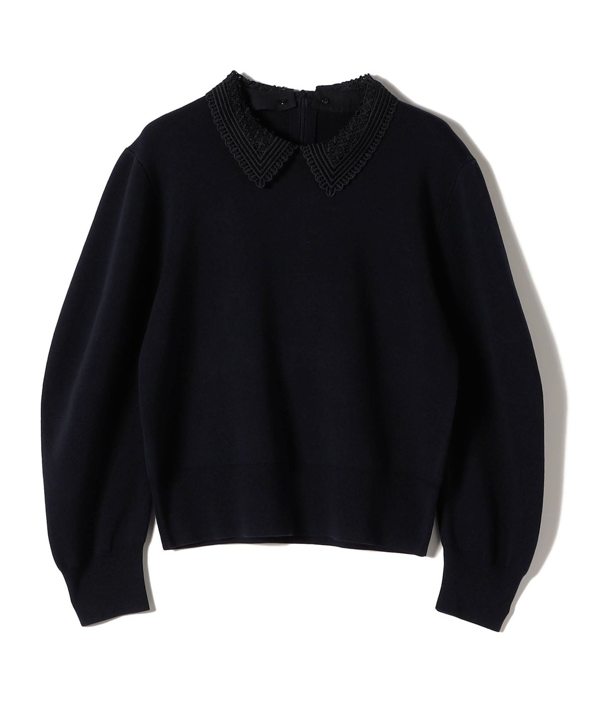 8. SHIPS Primary Navy Label:〈手洗い可能〉シルク混 レース 襟 プルオーバー