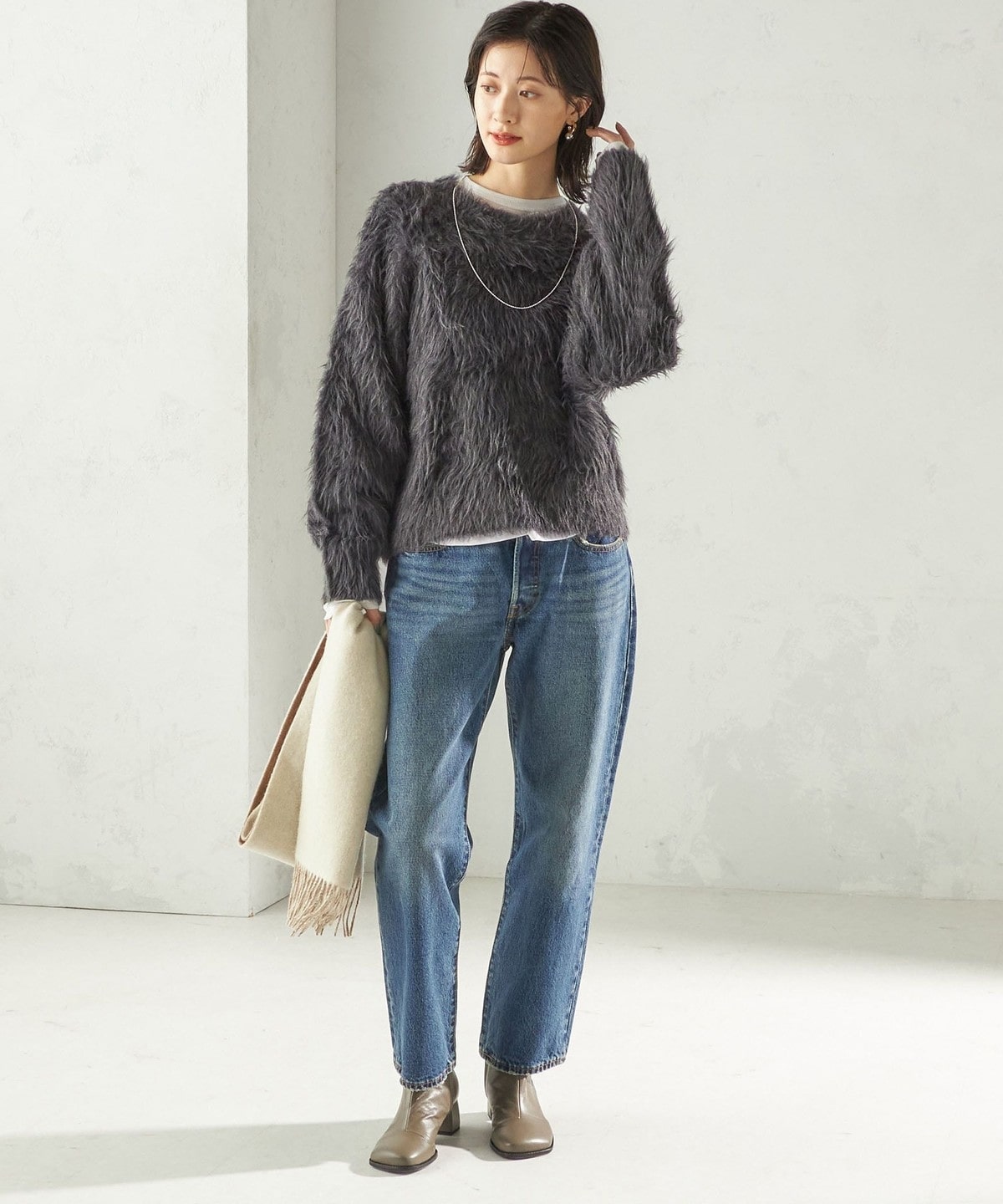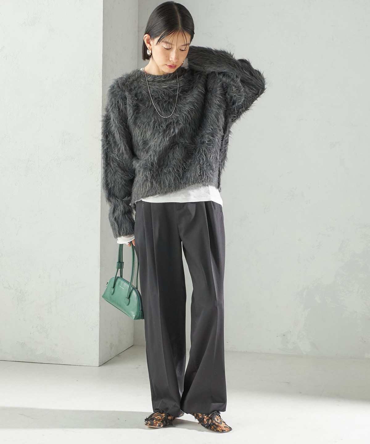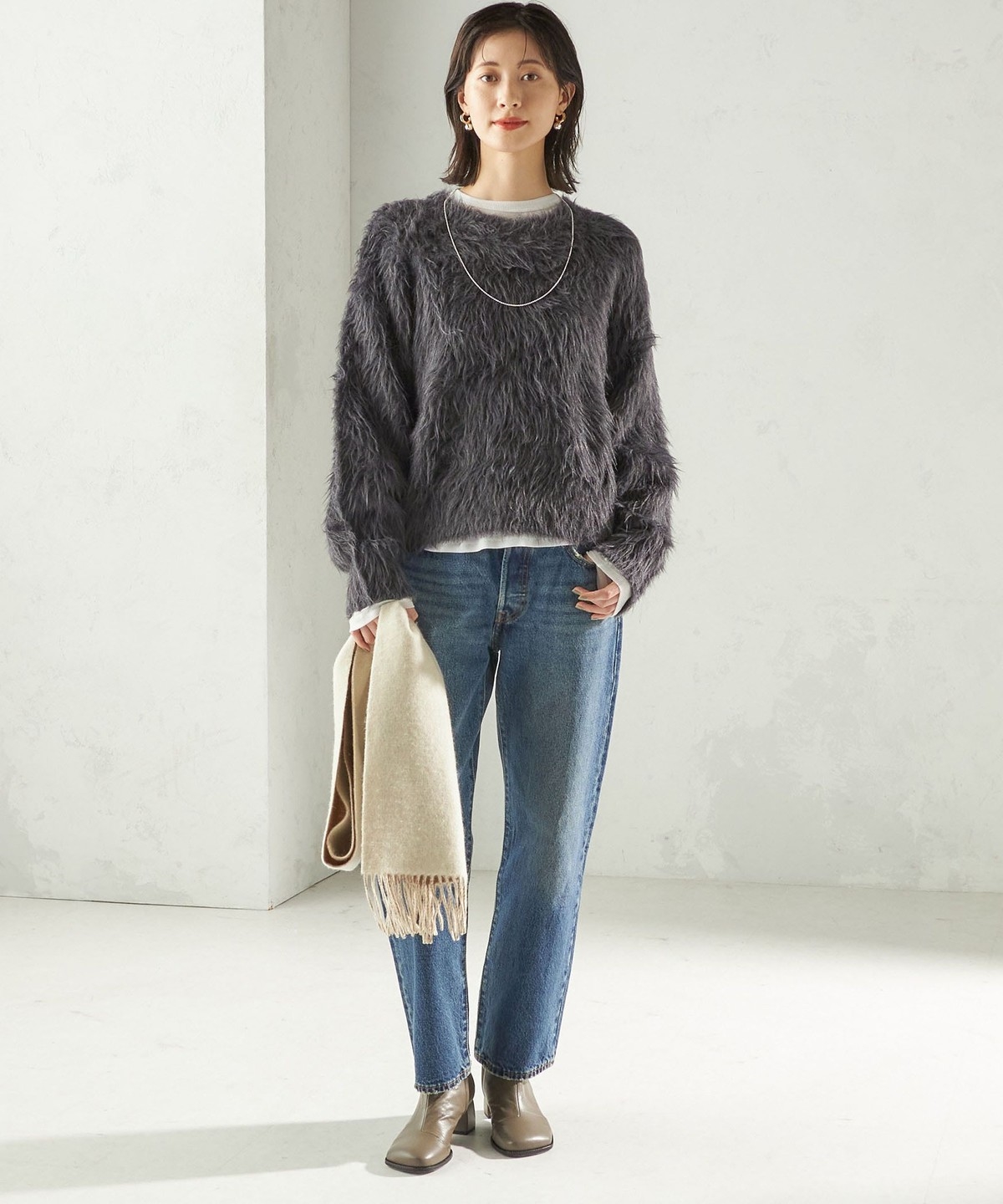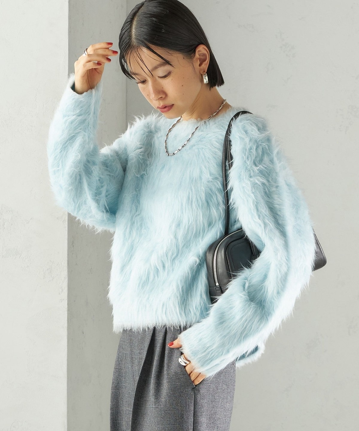 フェザー加工で仕上げた旬の柔らかシャギーニット