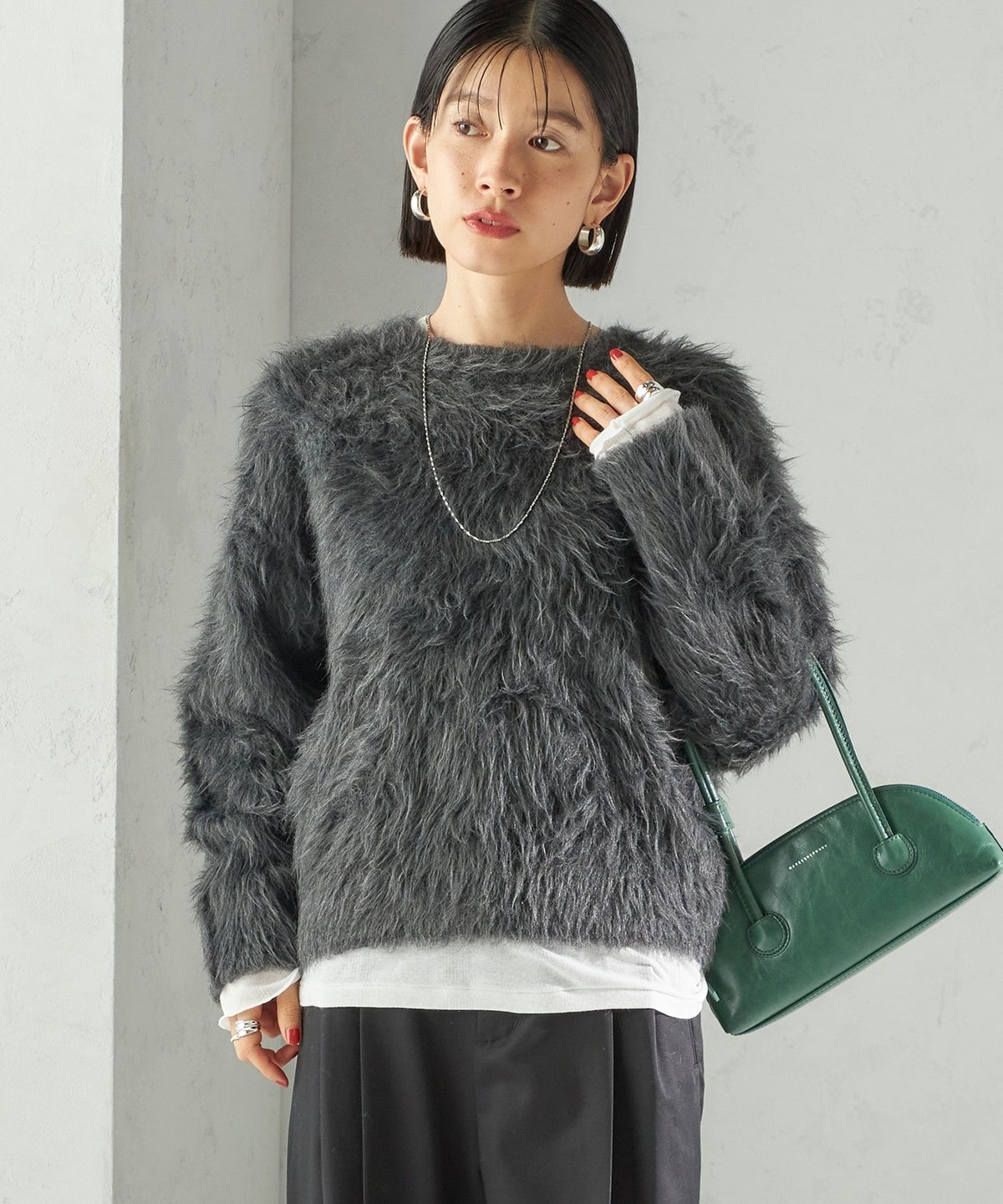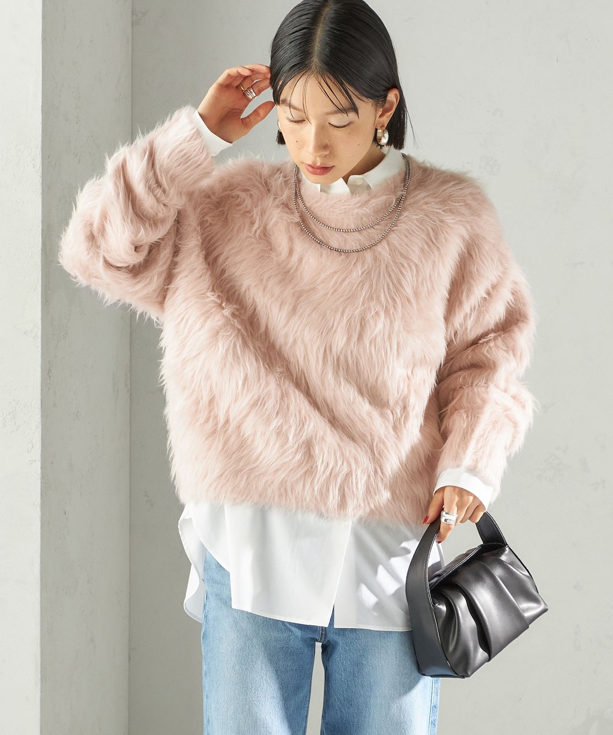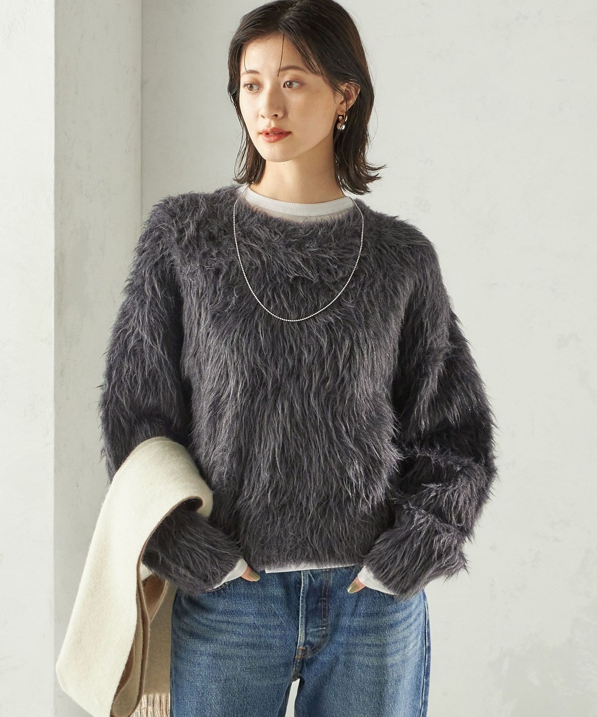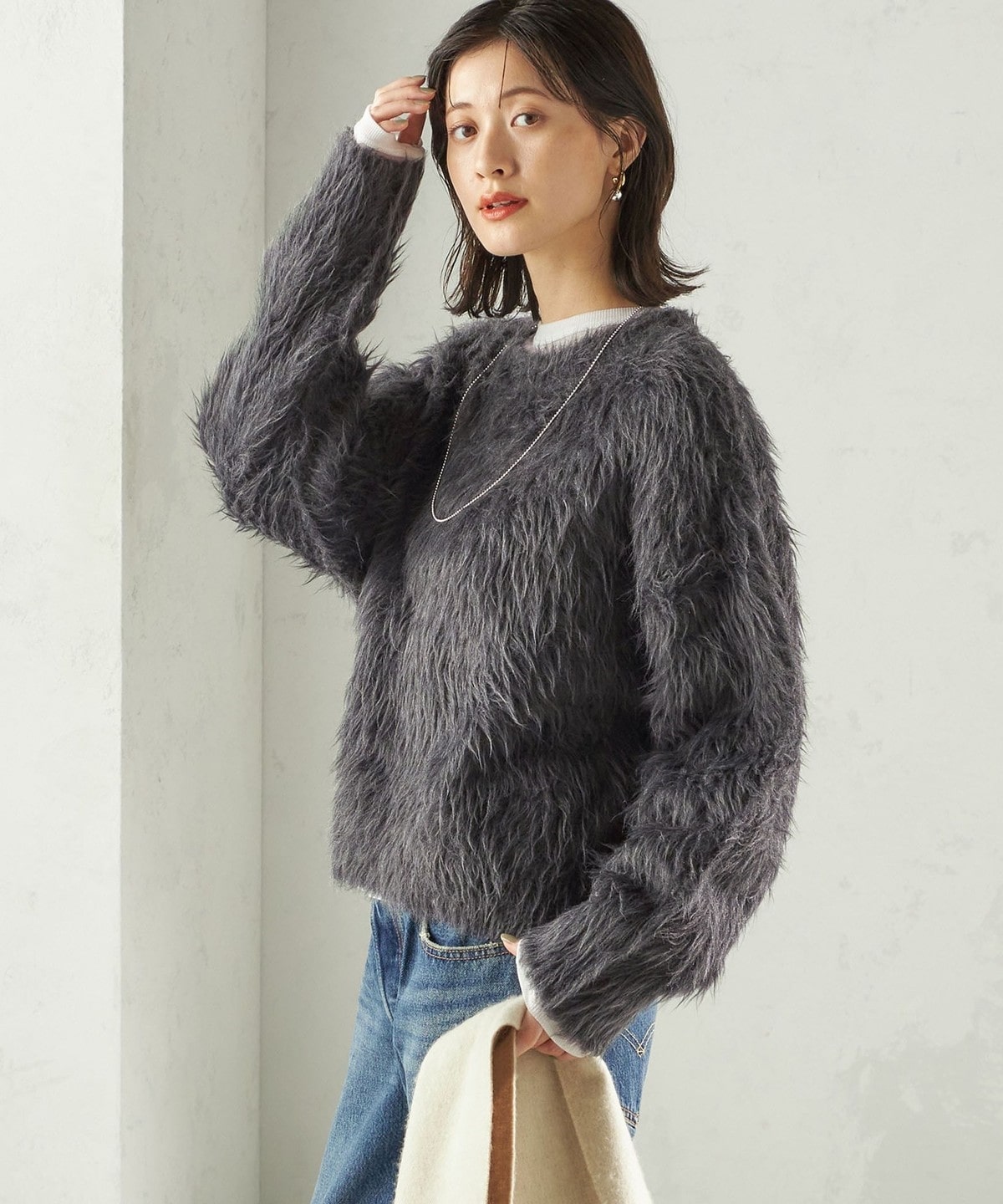 〈手洗い可能〉シャギー ファー クルーネック プルオーバー