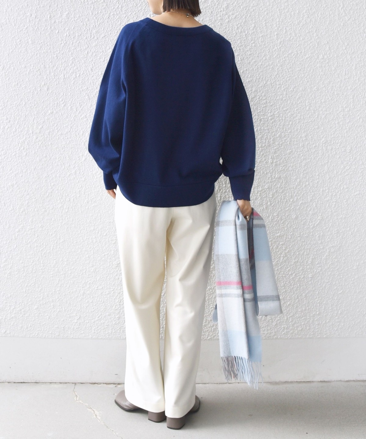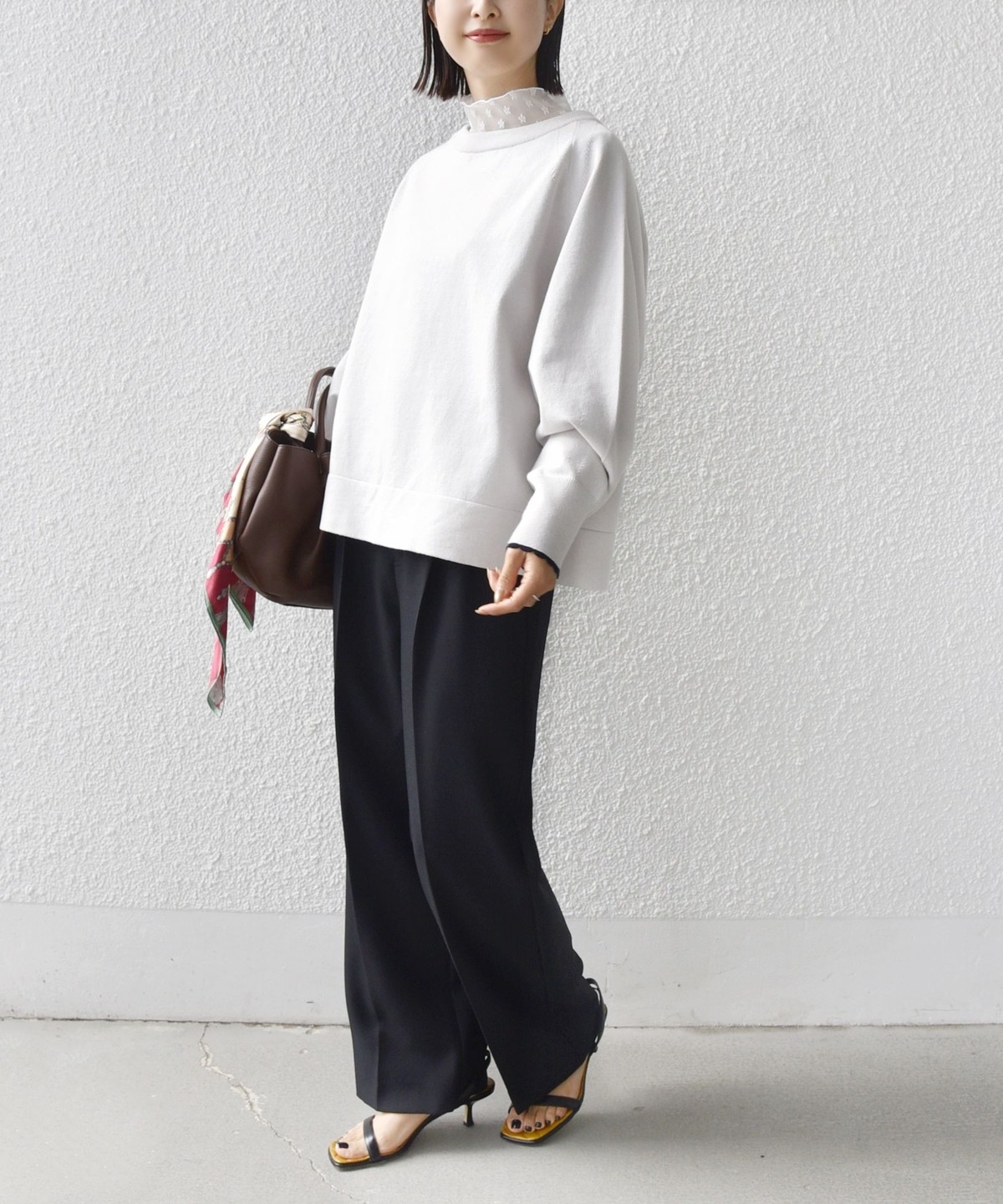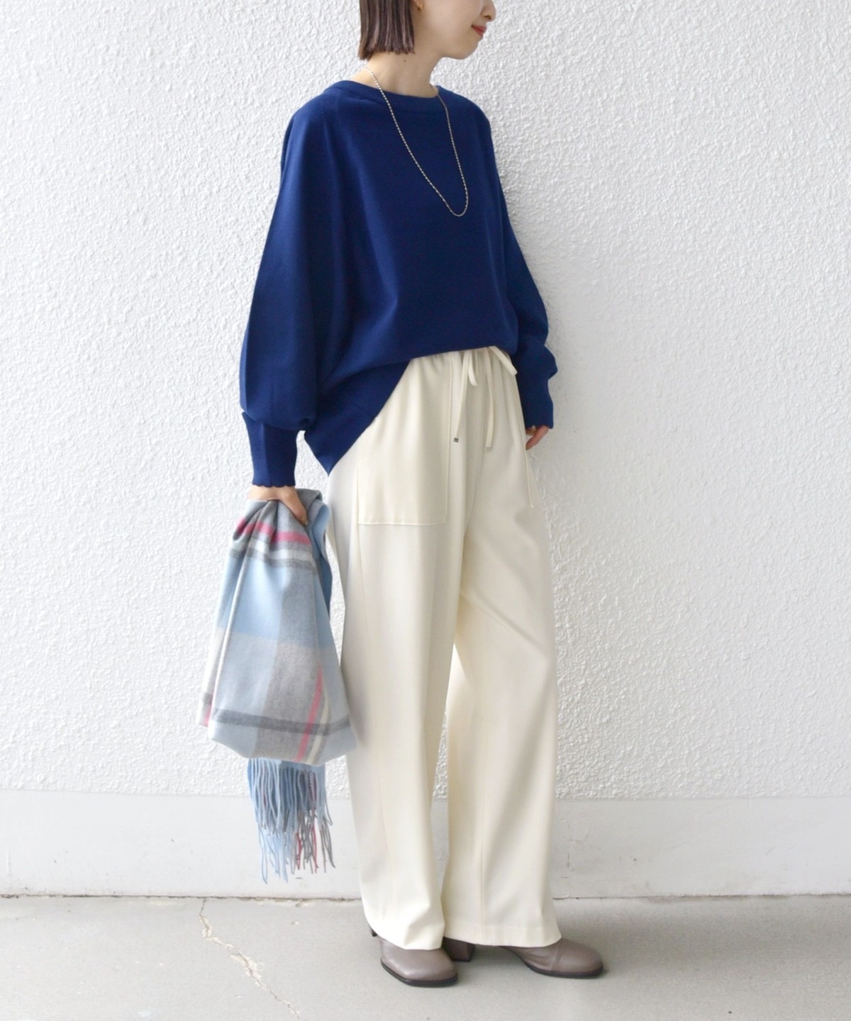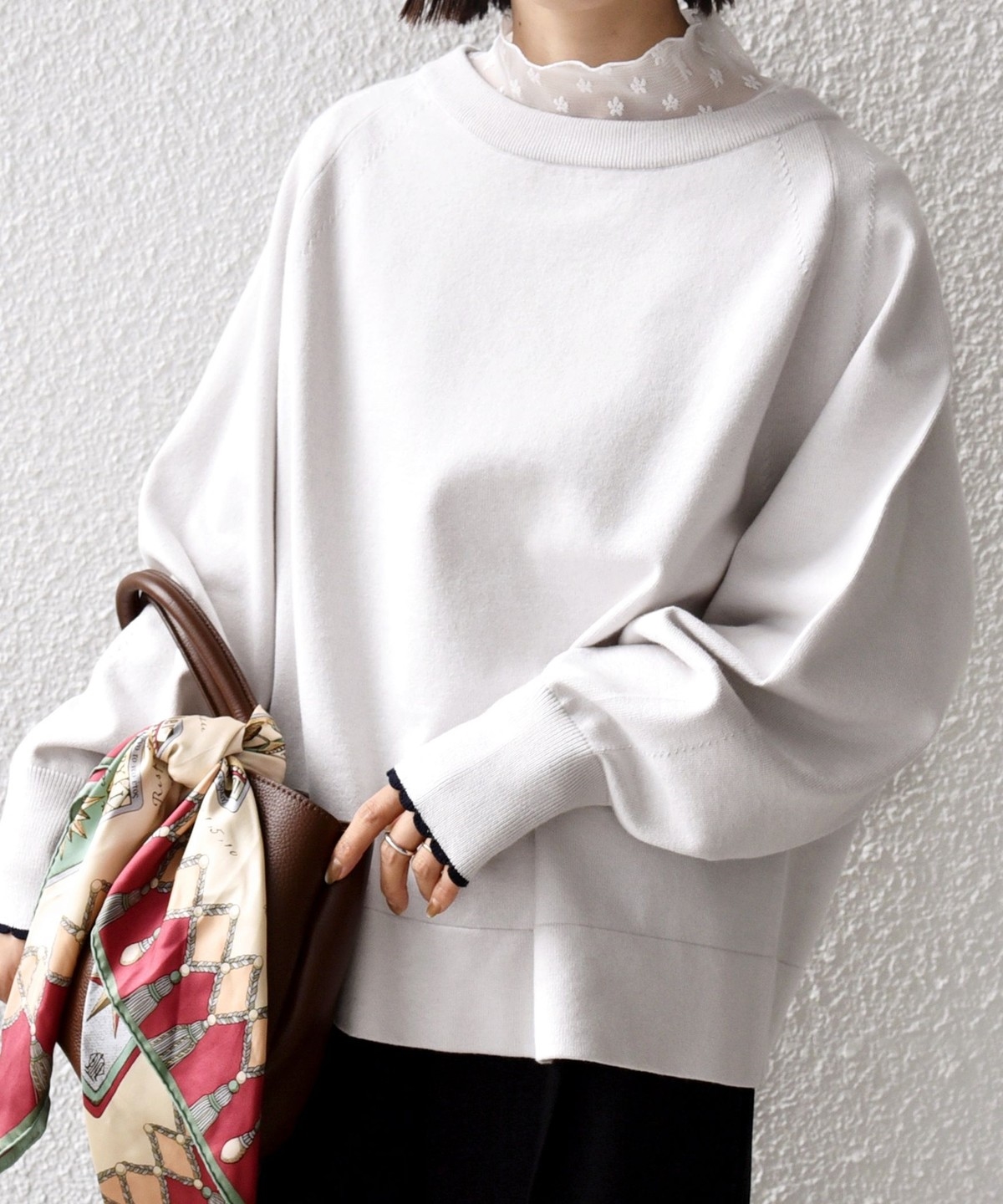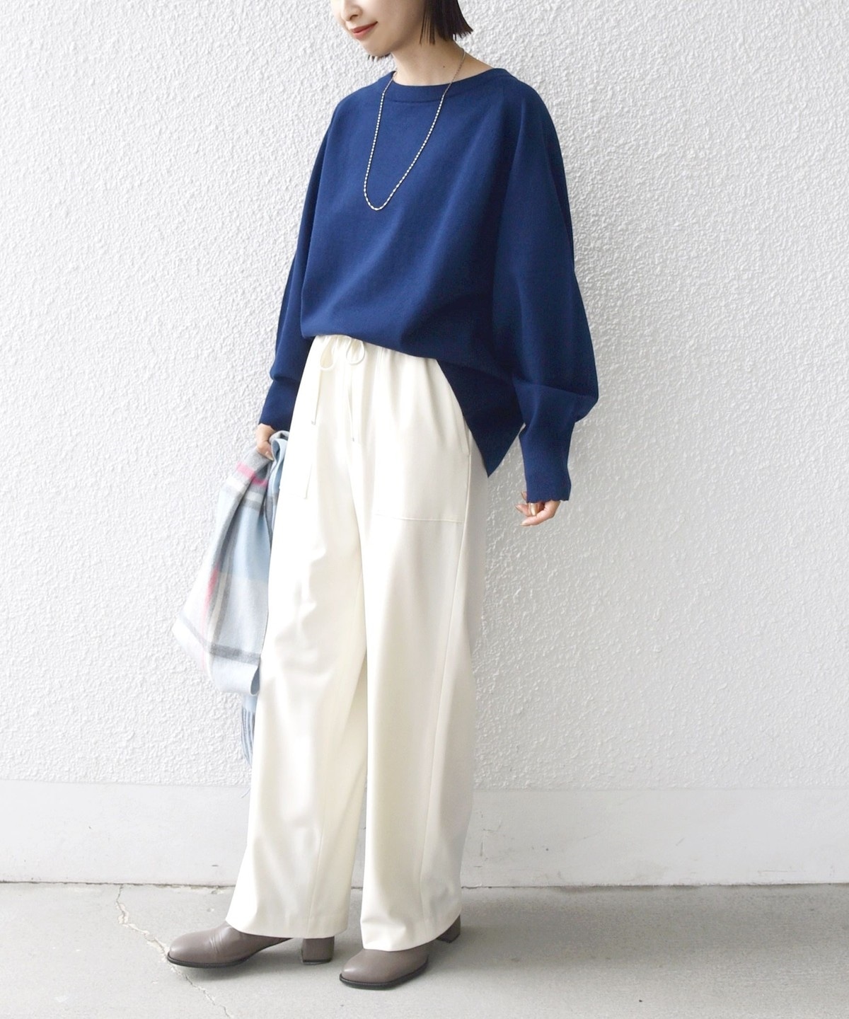 コンパクト目のサイズなので、ボトムはボリュームのあるスカートやパンツ合わせで大人なリラックス感のある着こなしが◎