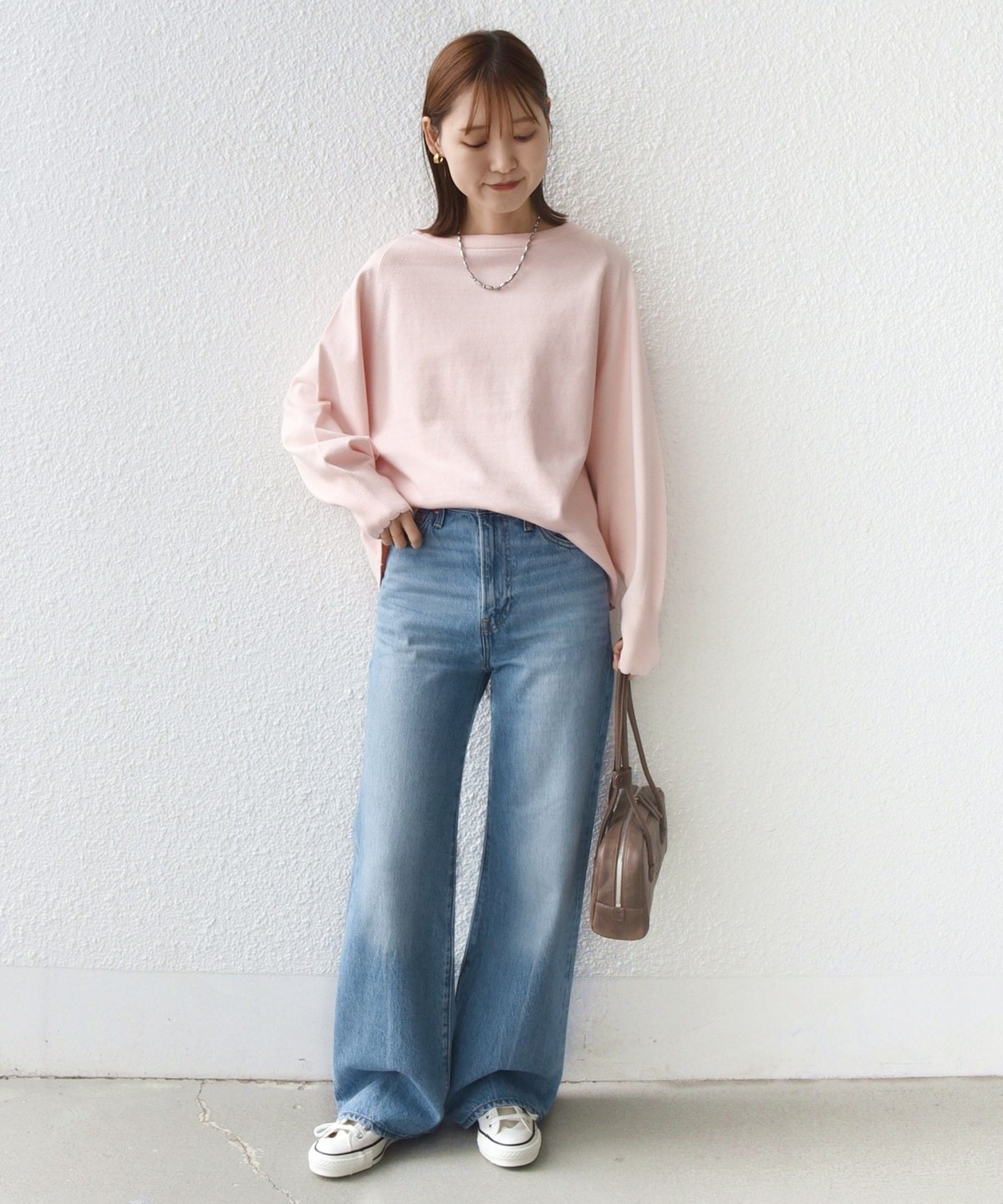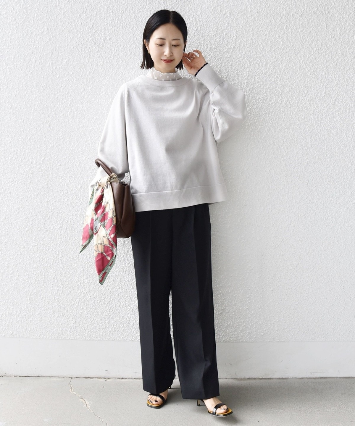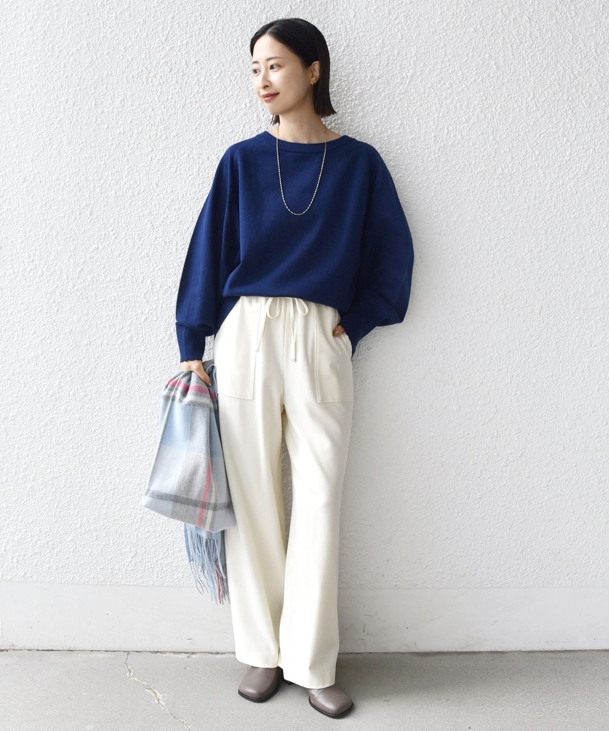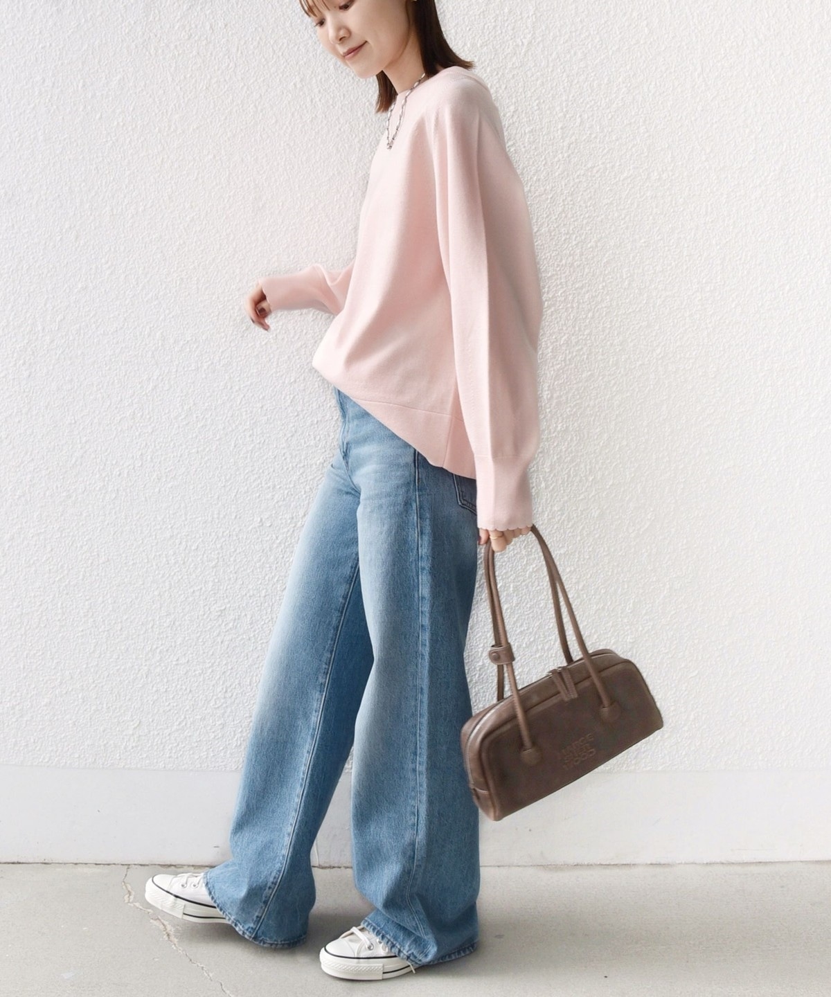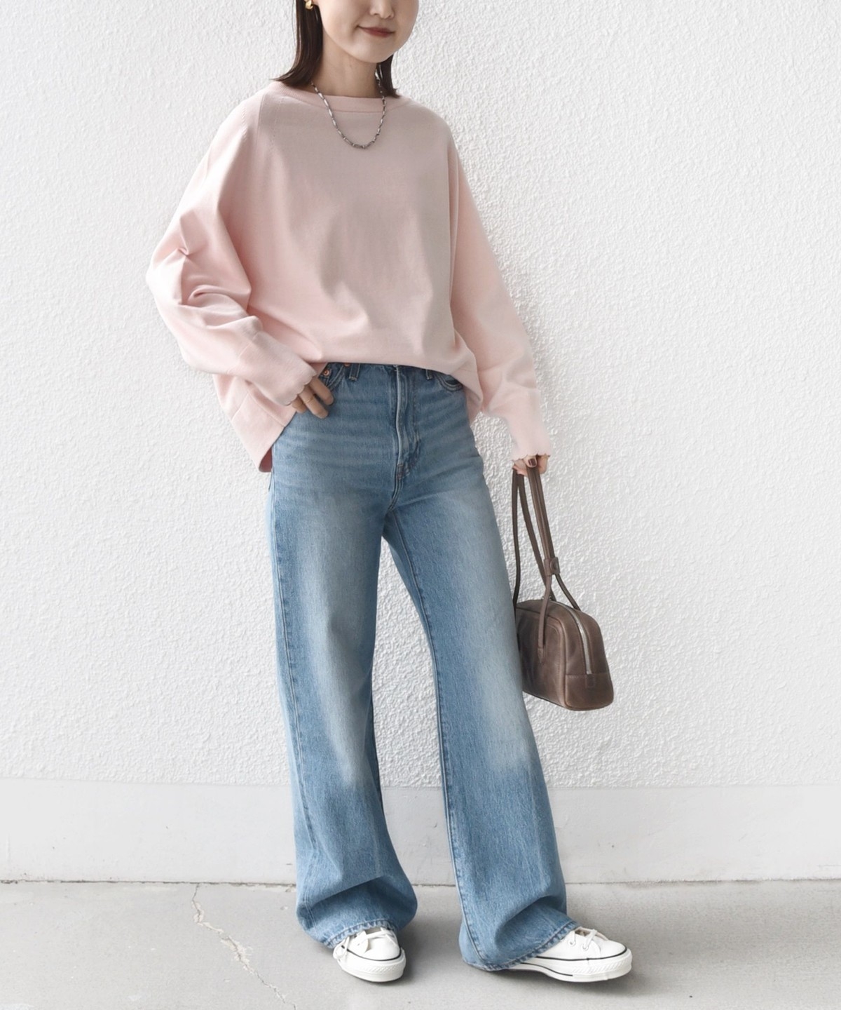 コンパクト目のサイズなので、ボトムはボリュームのあるスカートやパンツ合わせで大人なリラックス感のある着こなしが◎