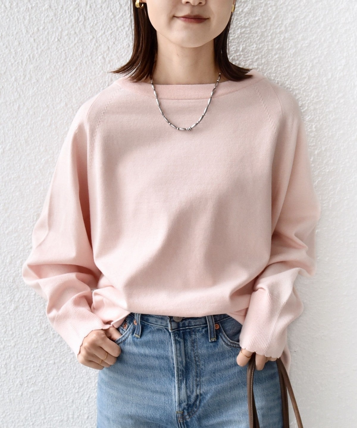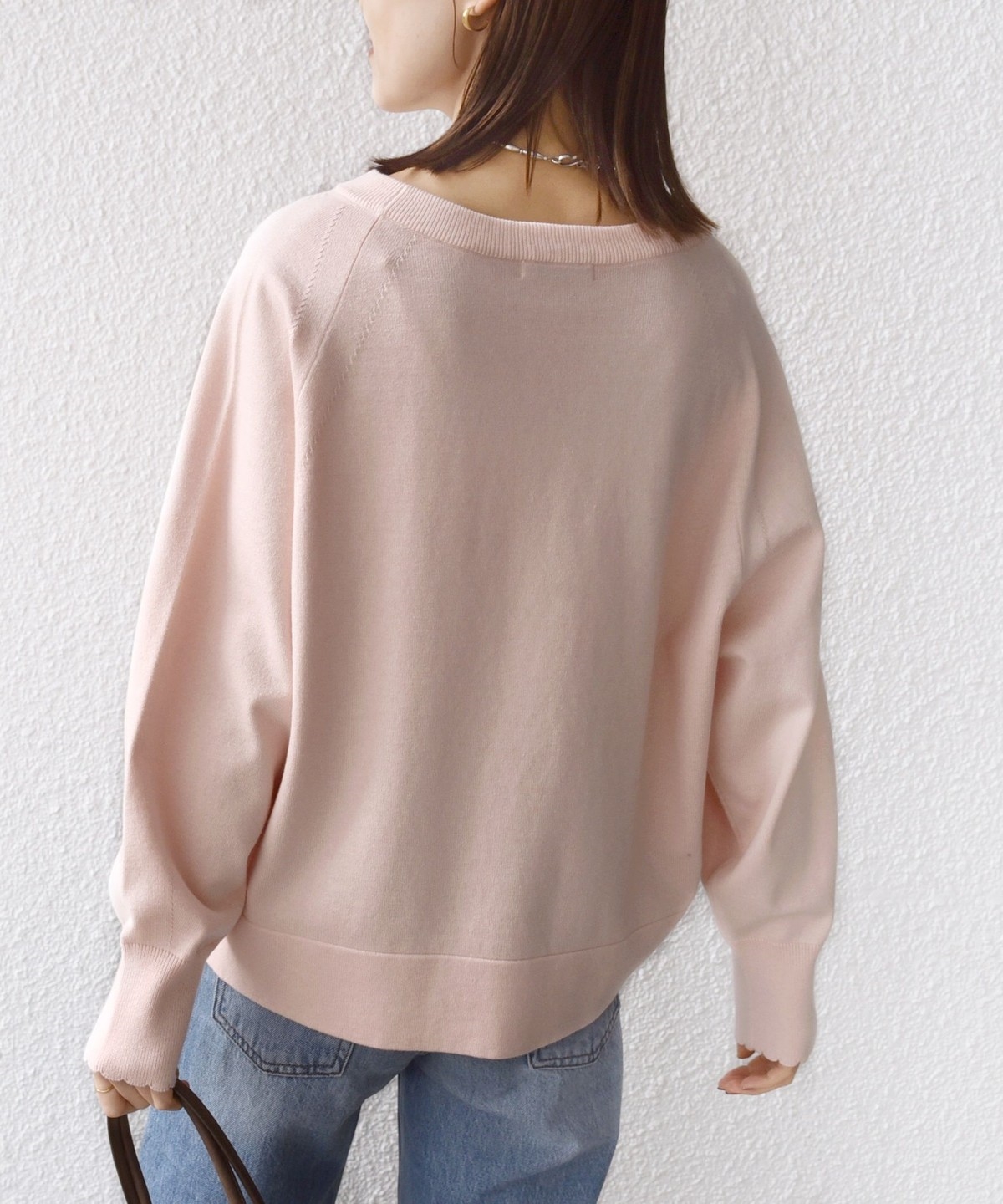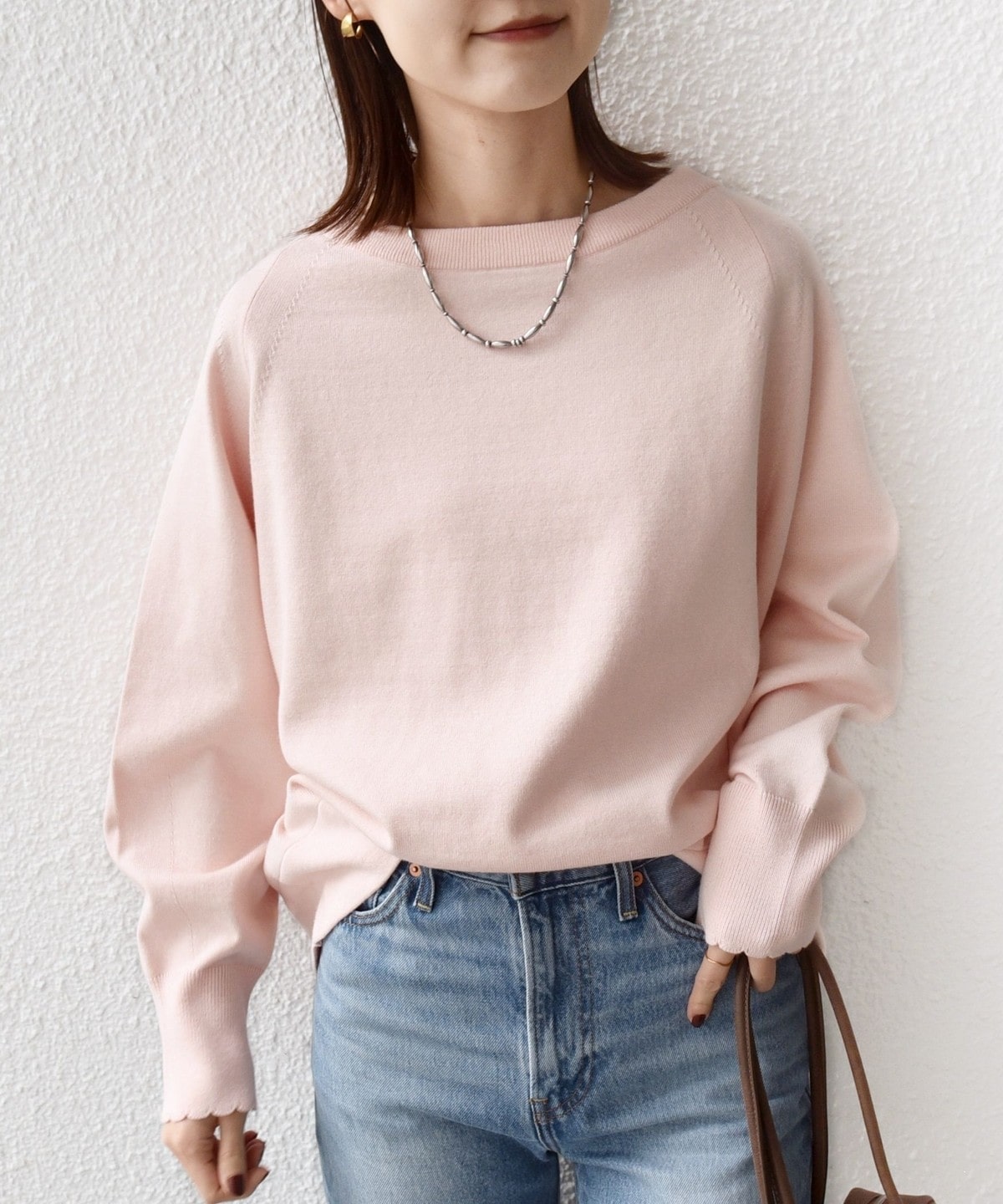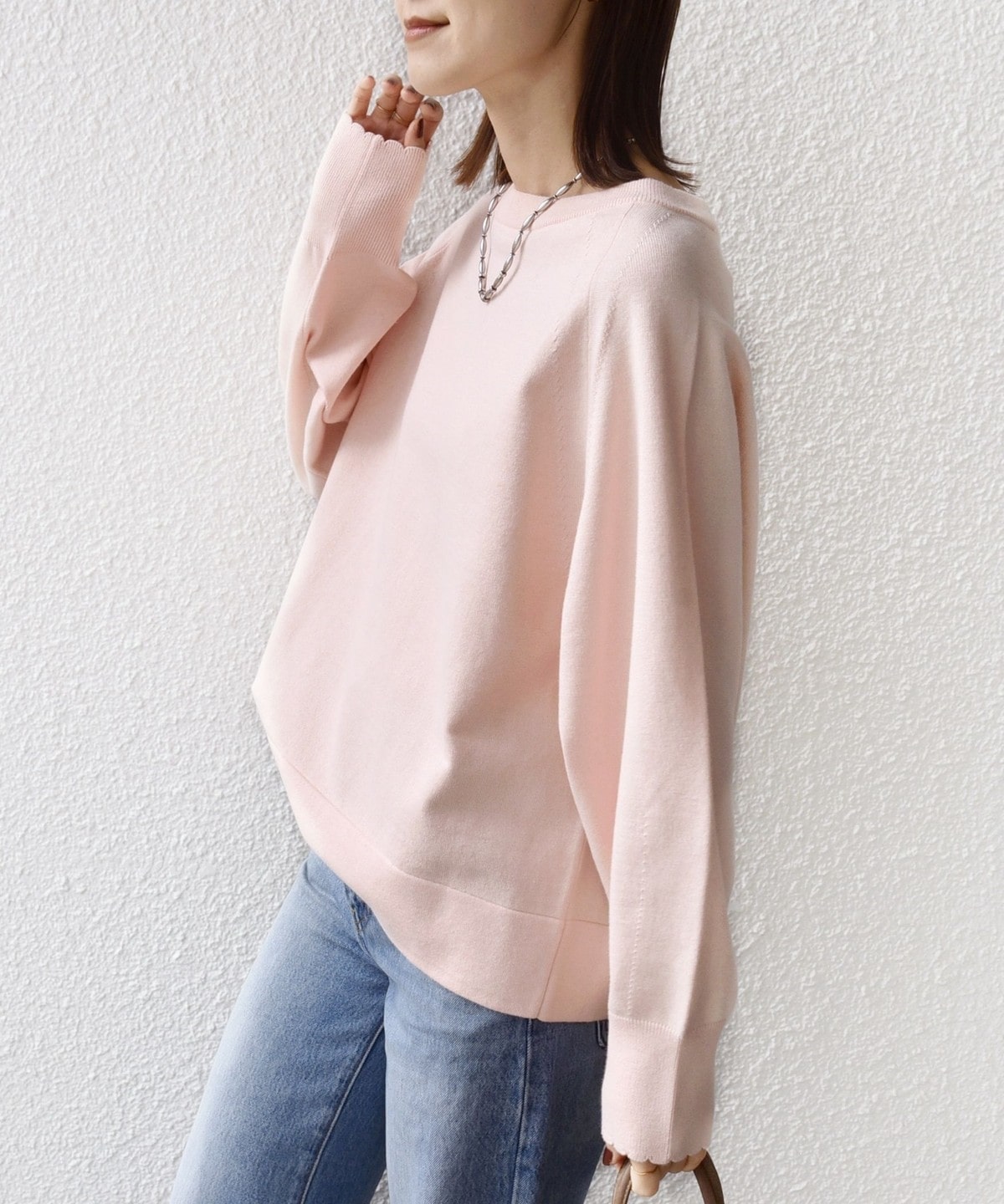 2. 〈手洗い可能〉コットン カシミヤ混 スカラップヘム ボートネック プルオーバー ベビーピンク
