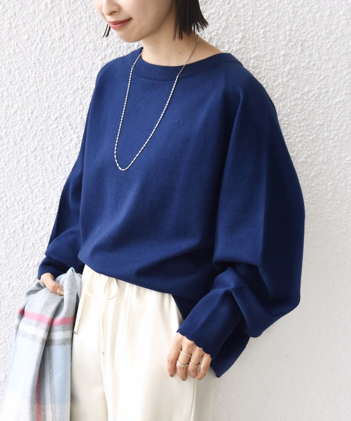 7. 〈手洗い可能〉コットン カシミヤ混 スカラップヘム ボートネック プルオーバー